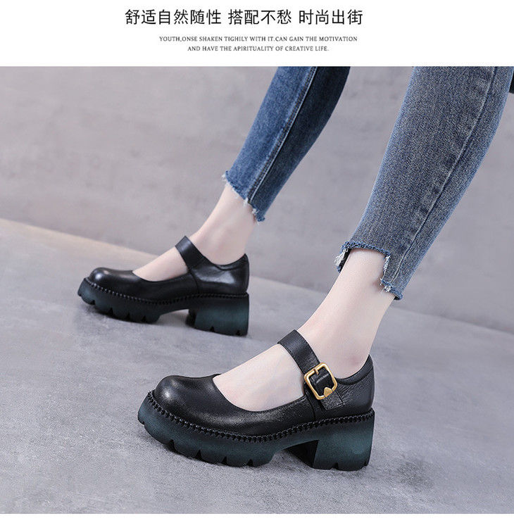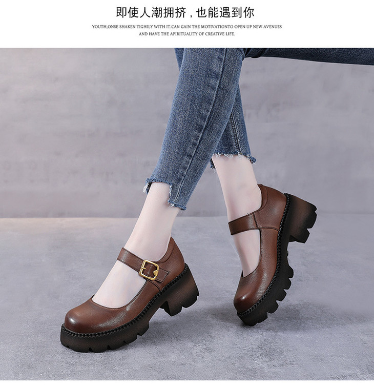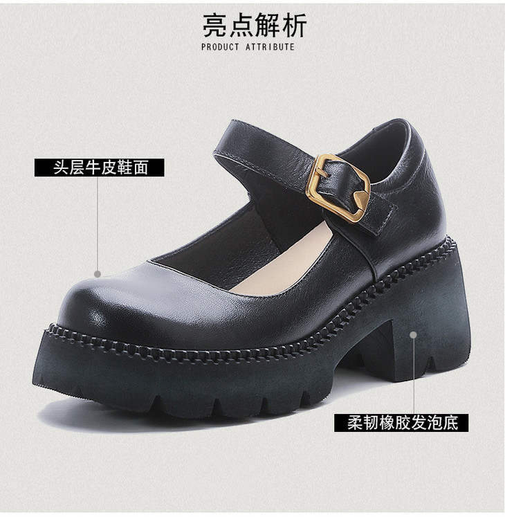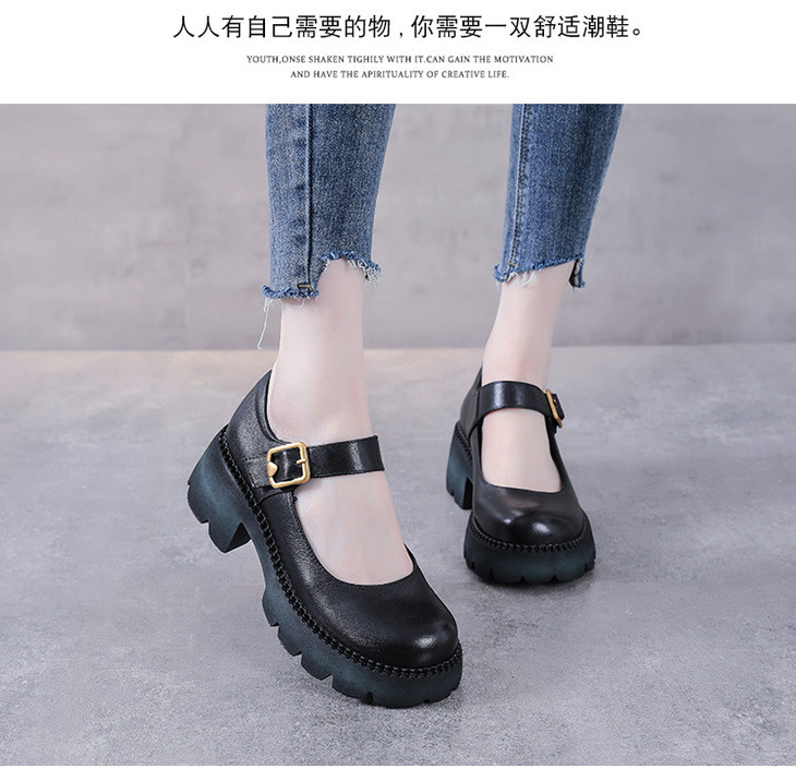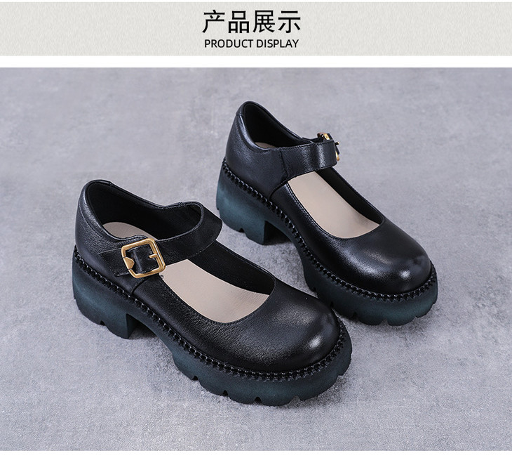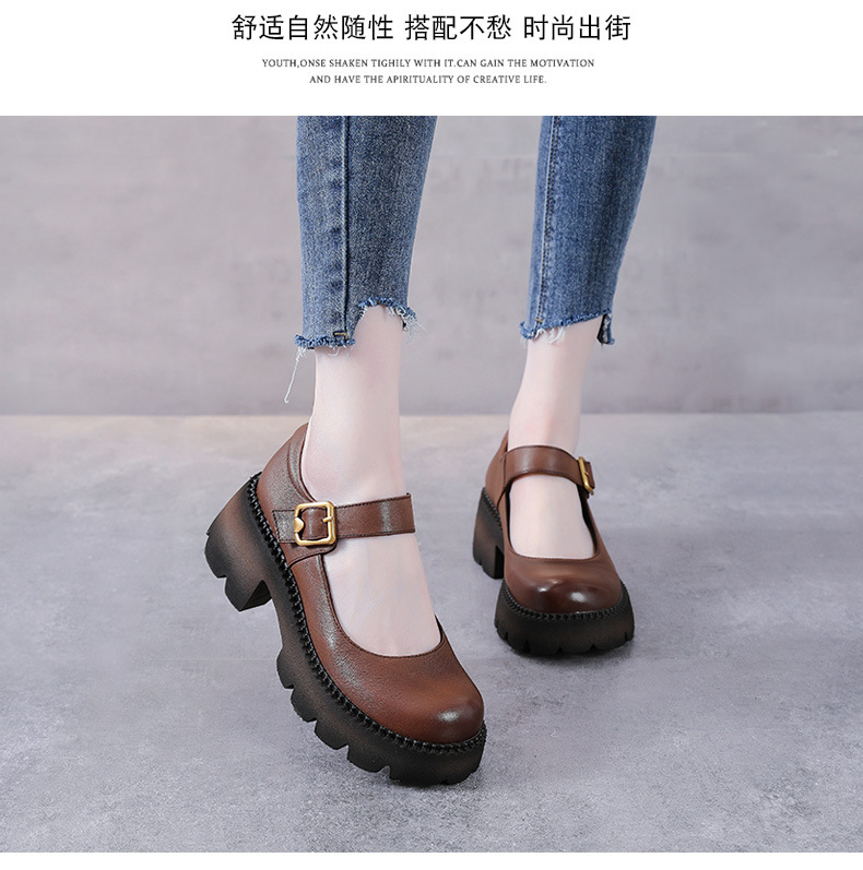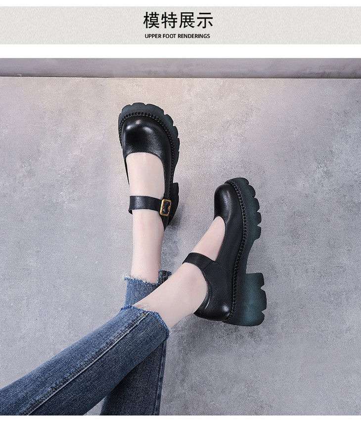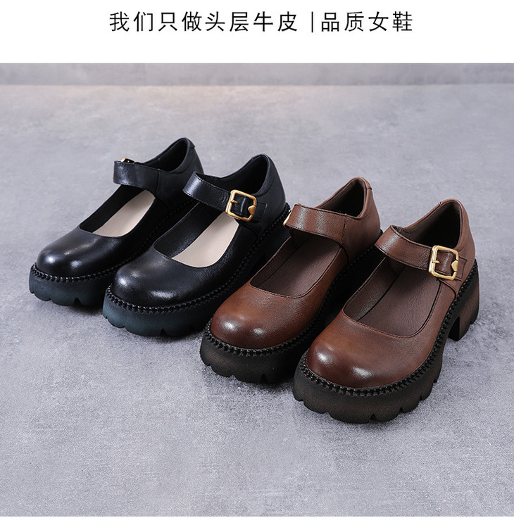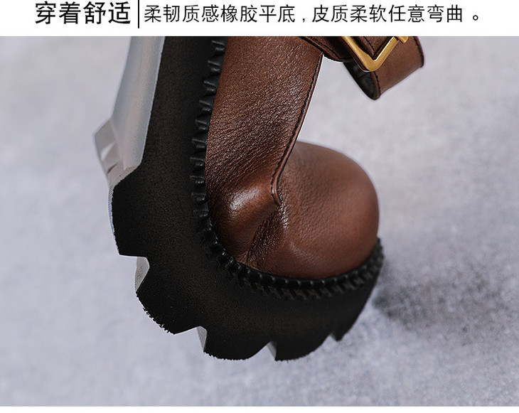 YR A627松糕厚底单鞋真皮搭扣大头鞋头层牛皮