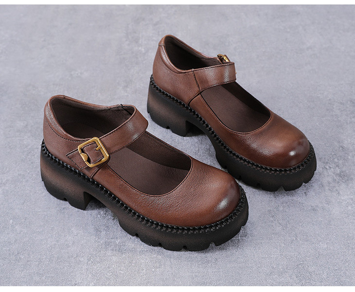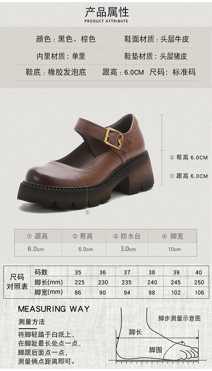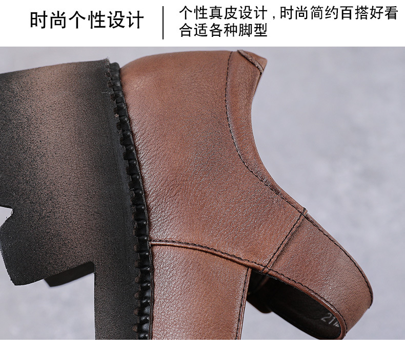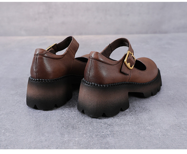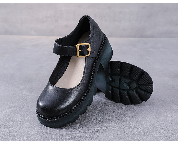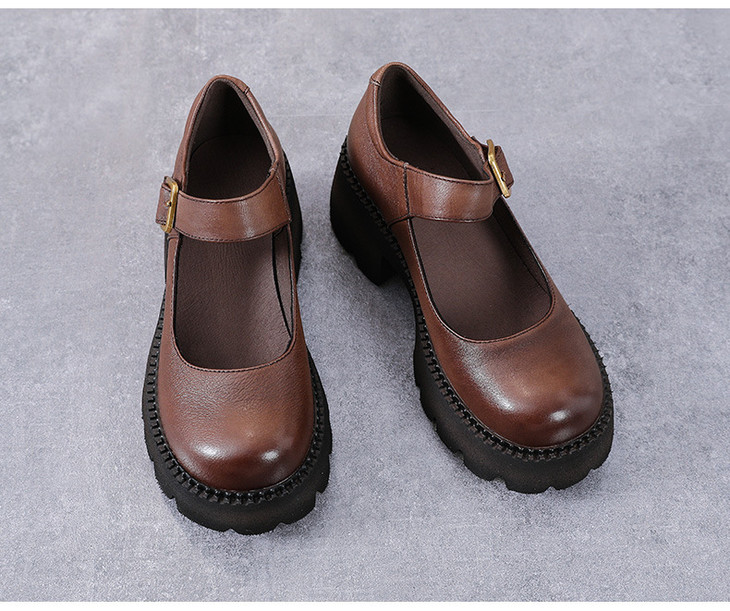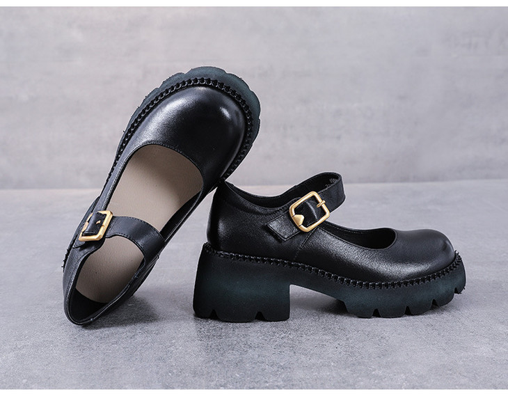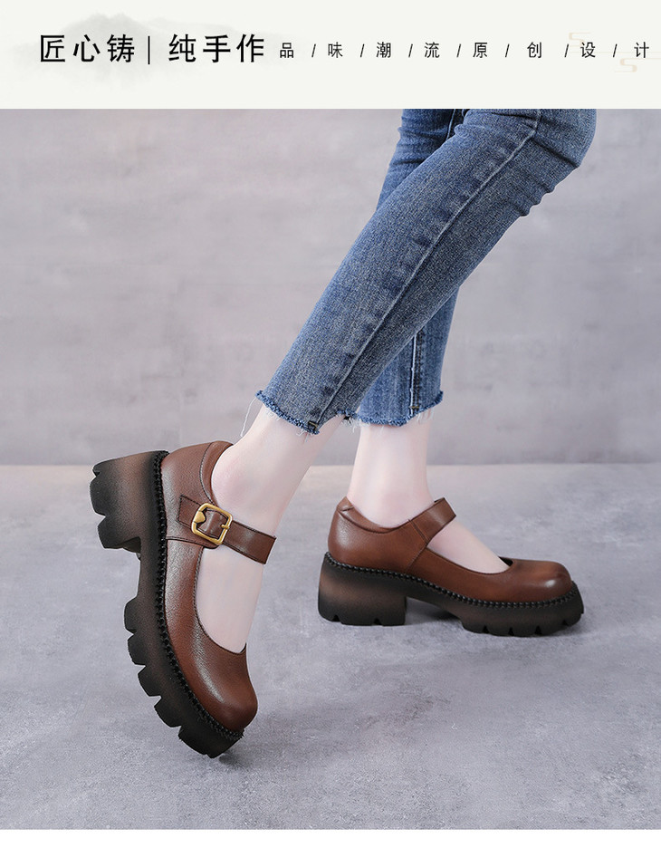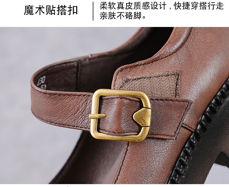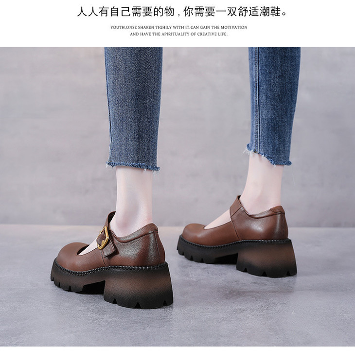 YR A627松糕厚底单鞋真皮搭扣大头鞋头层牛皮