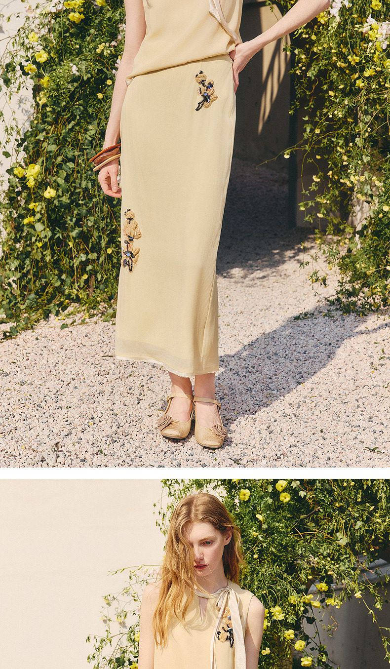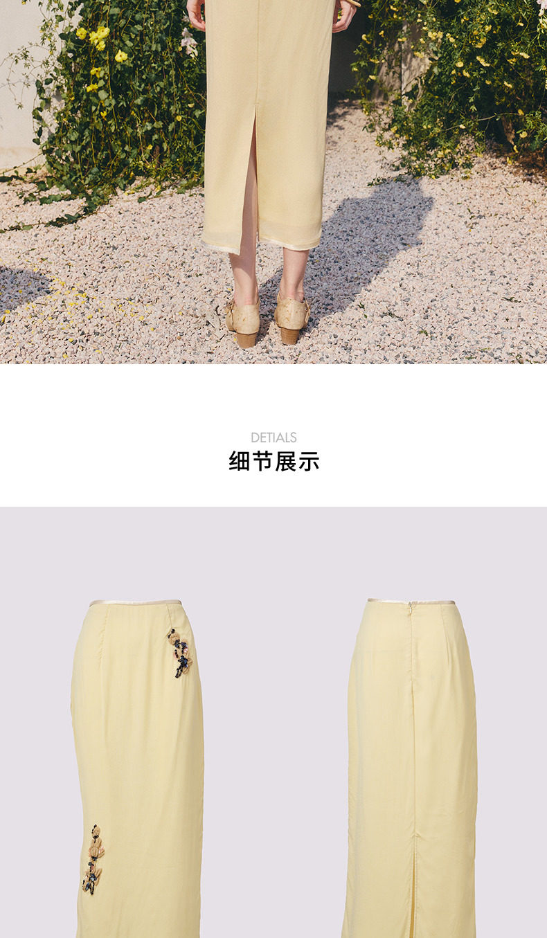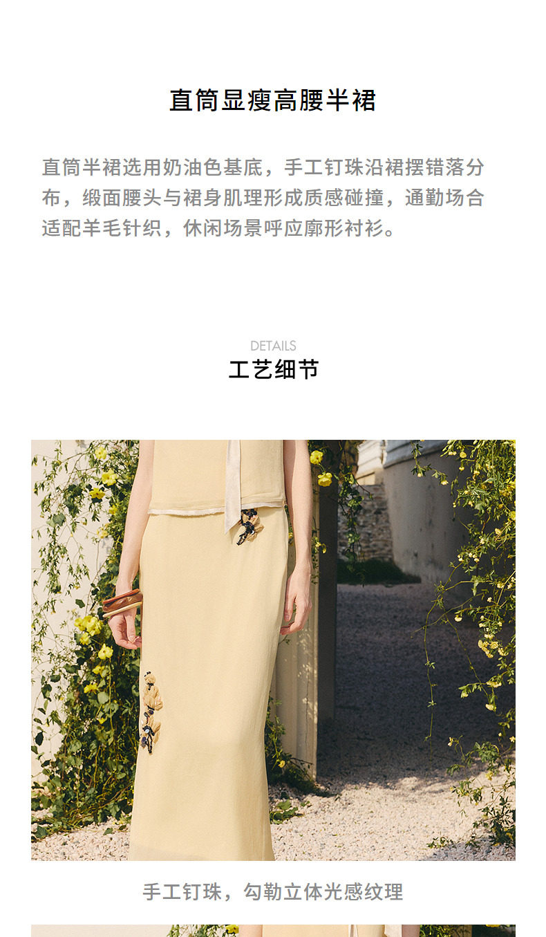 【商场同款】MAXRIENY精致日常感立体花半裙25秋修身直筒中长裙(货号:MC86SK257)