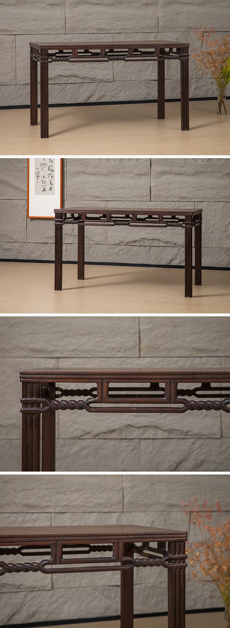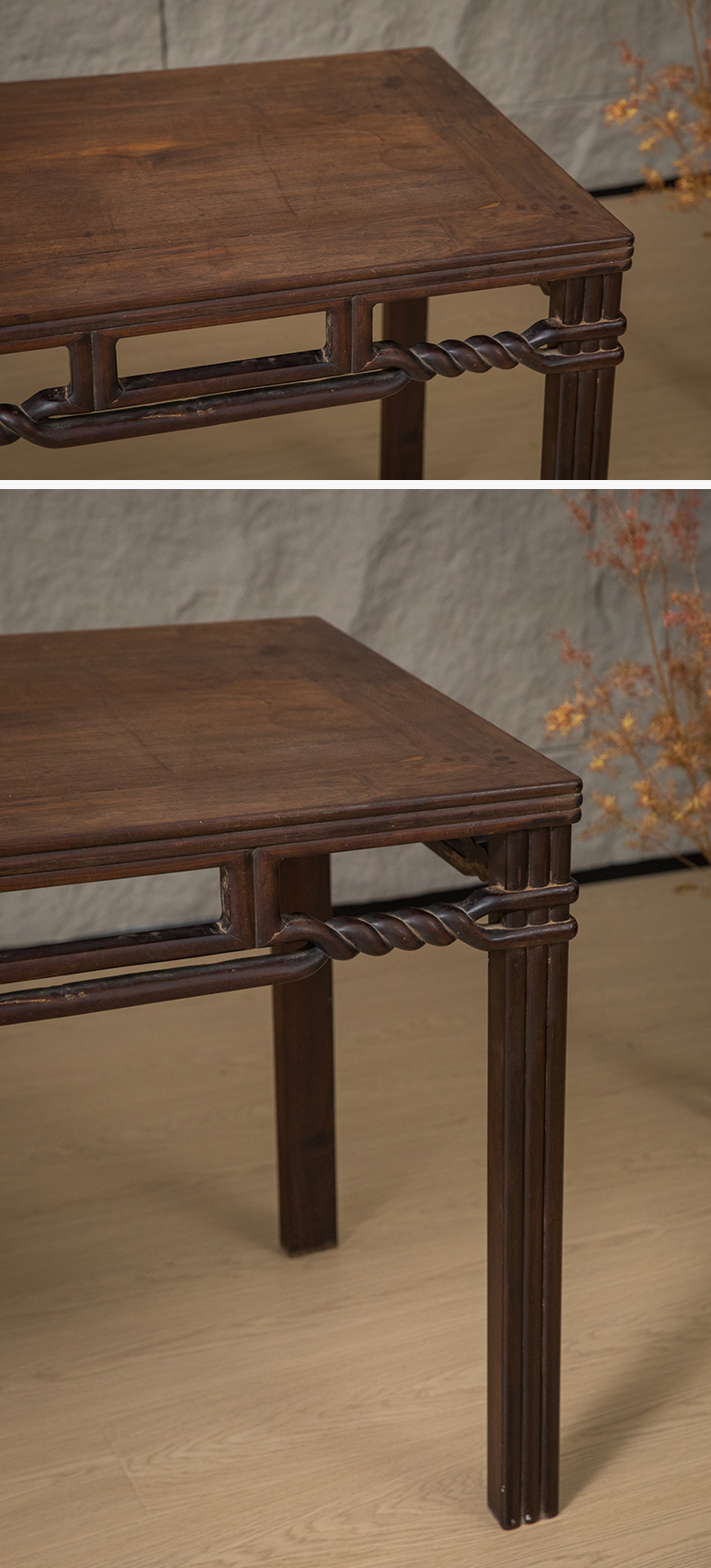 二十世纪 黄花梨卷草纹三弯腿带托泥方香几(一对)