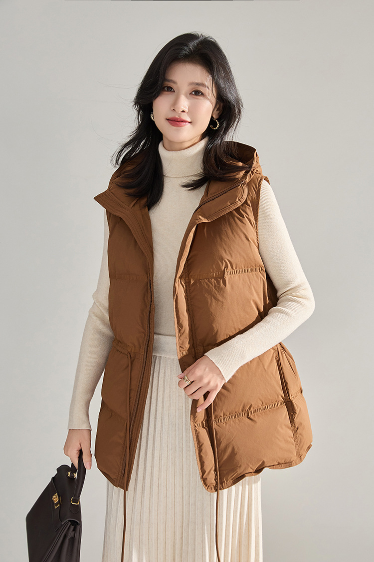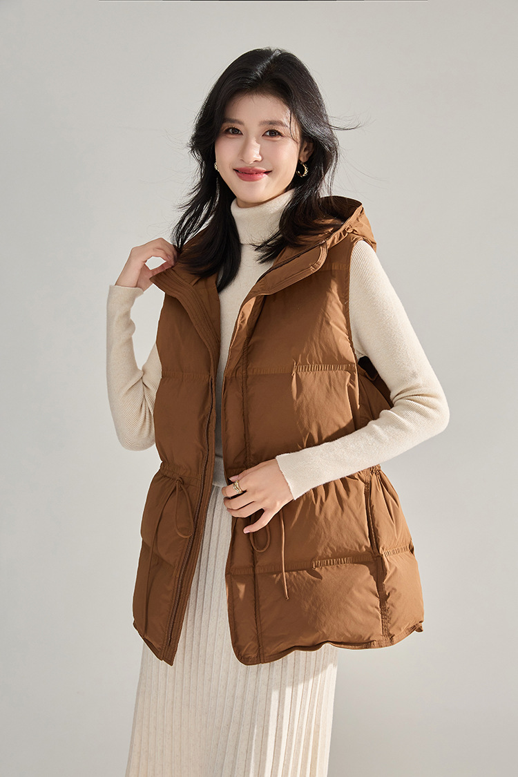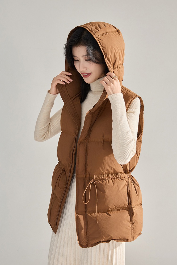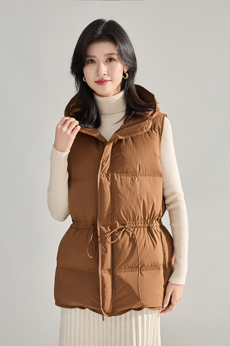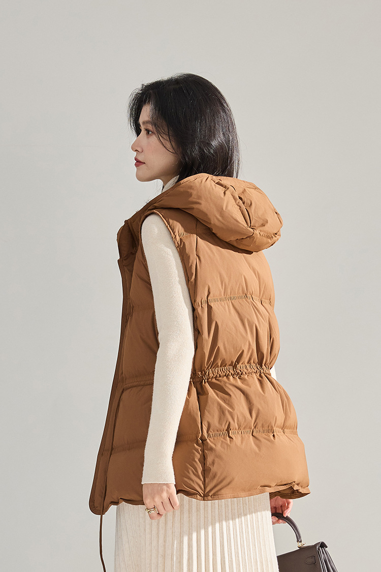 【高货sh】全新升级【铂金会员588/天猫799/差价211】(14538) 洛诗琳2024秋冬新款白鸭绒宽松韩版加厚连帽收腰羽绒马甲
