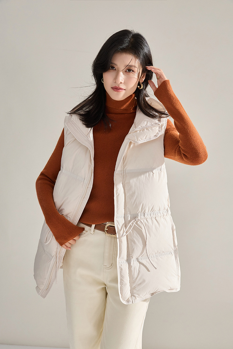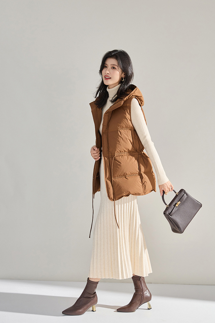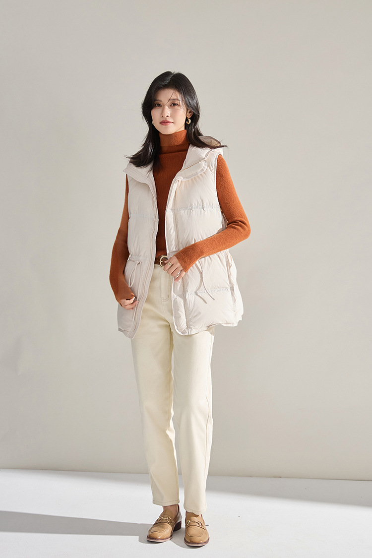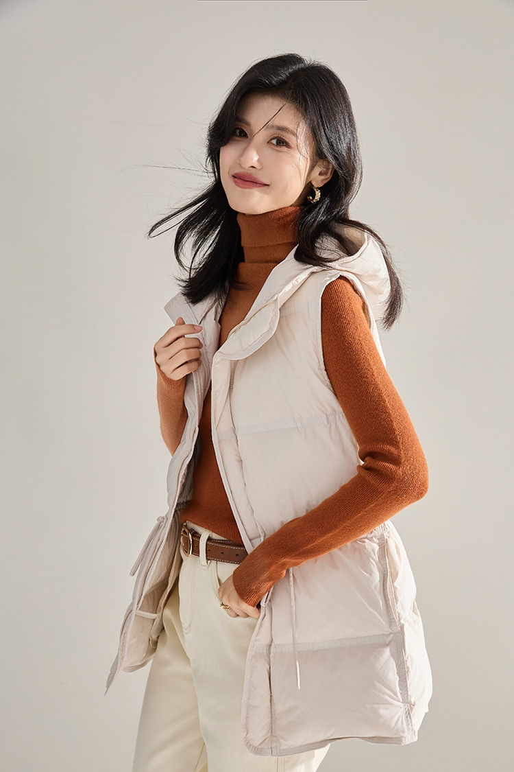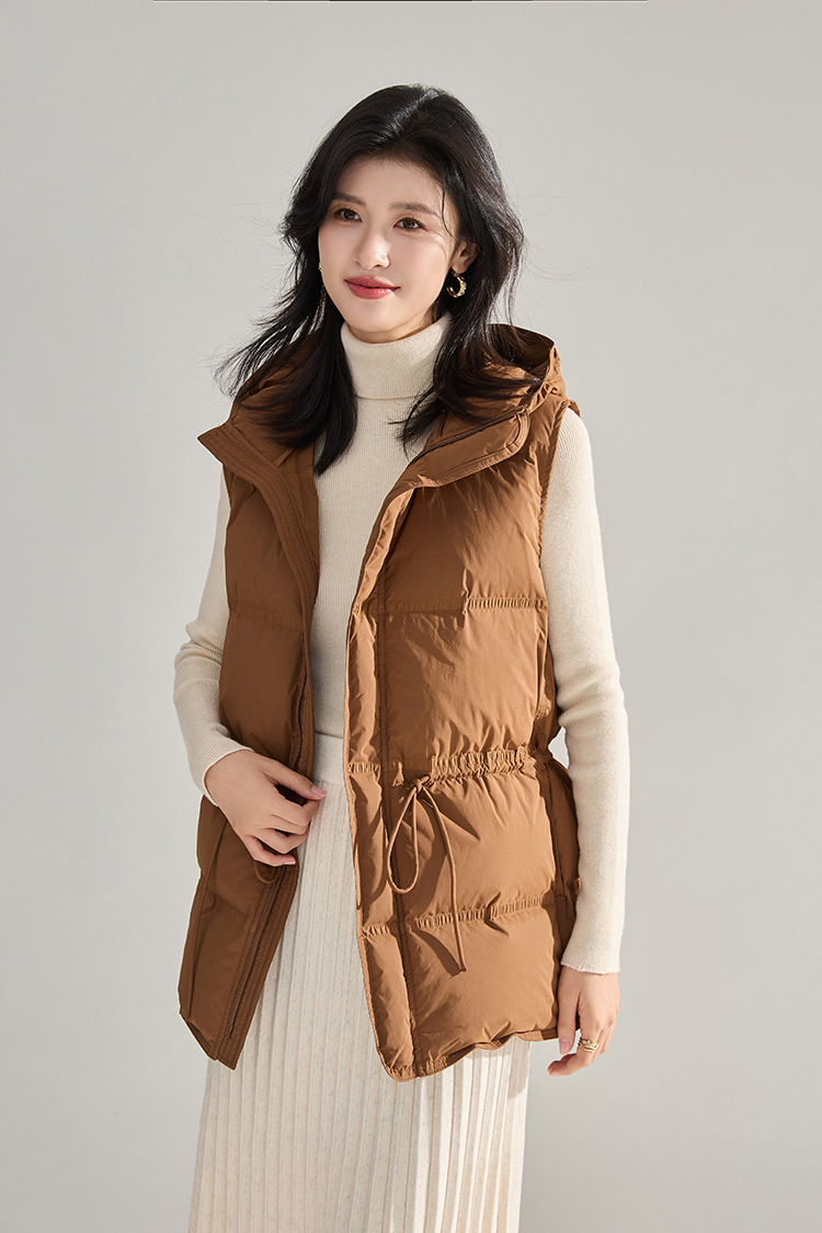 【高货sh】全新升级【铂金会员588/天猫799/差价211】(14538) 洛诗琳2024秋冬新款白鸭绒宽松韩版加厚连帽收腰羽绒马甲