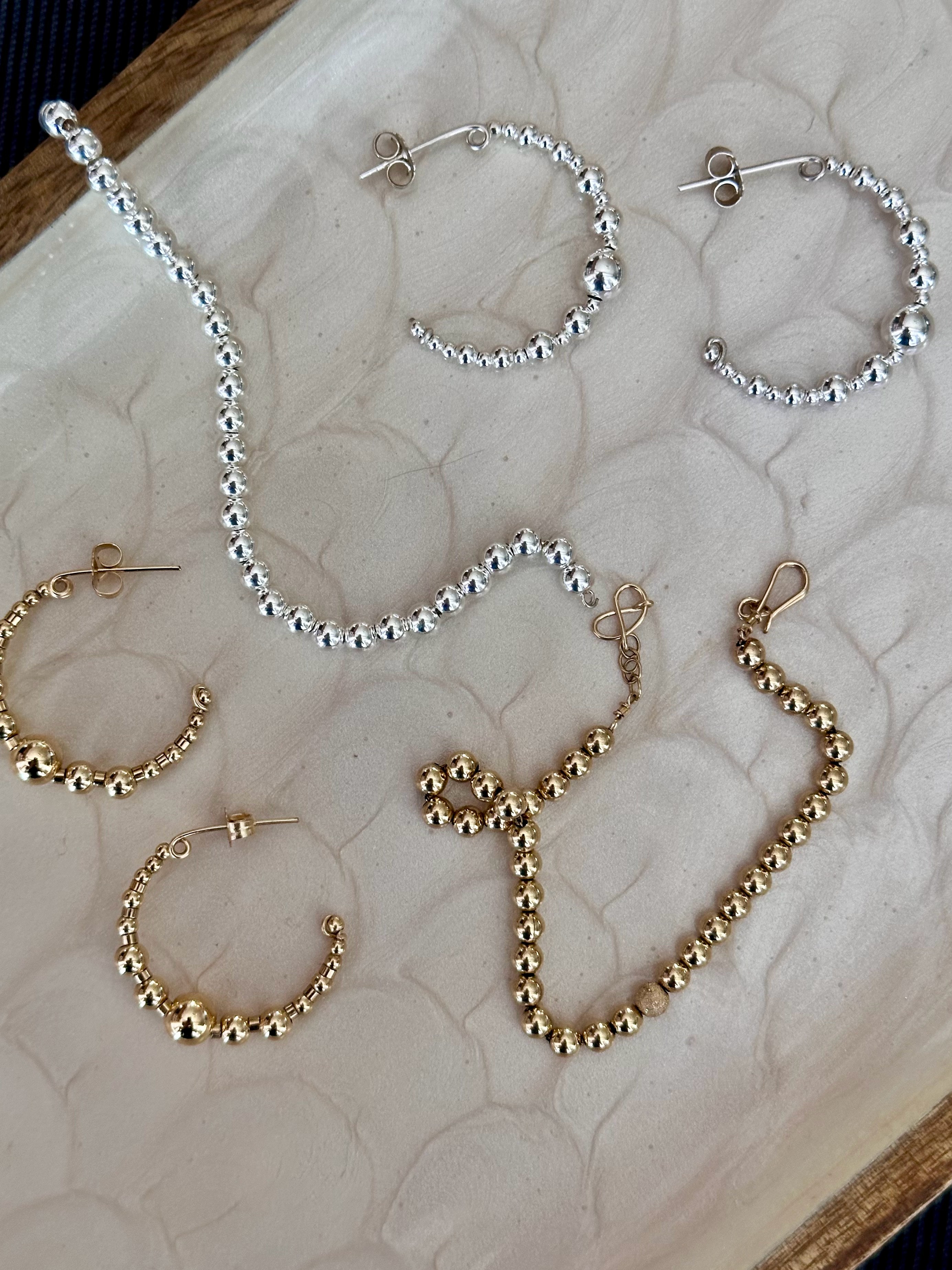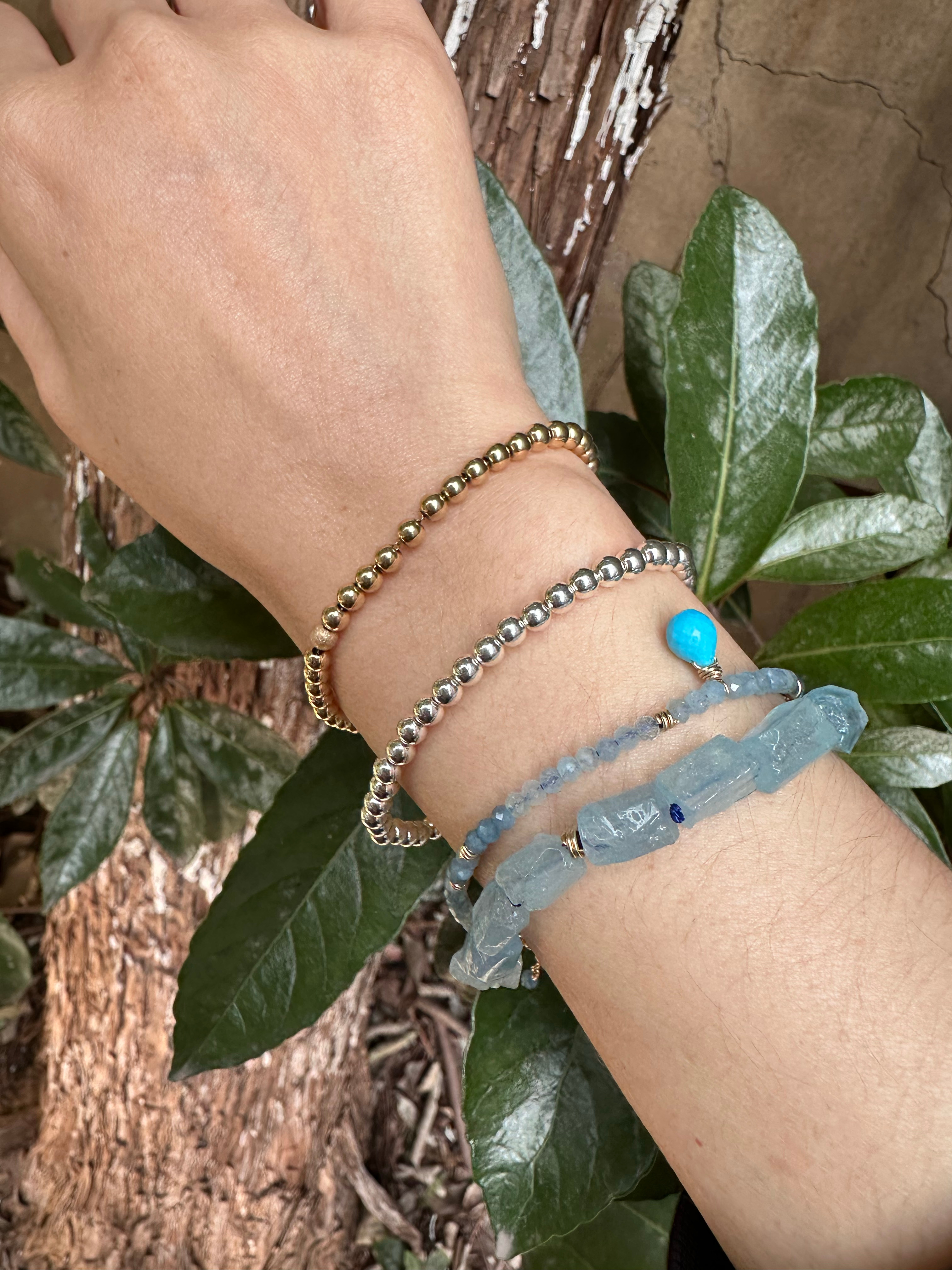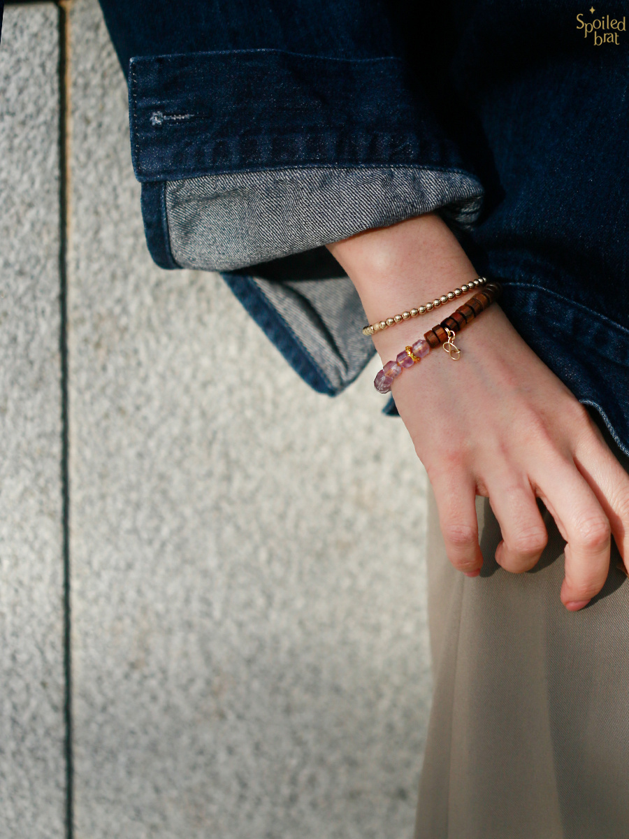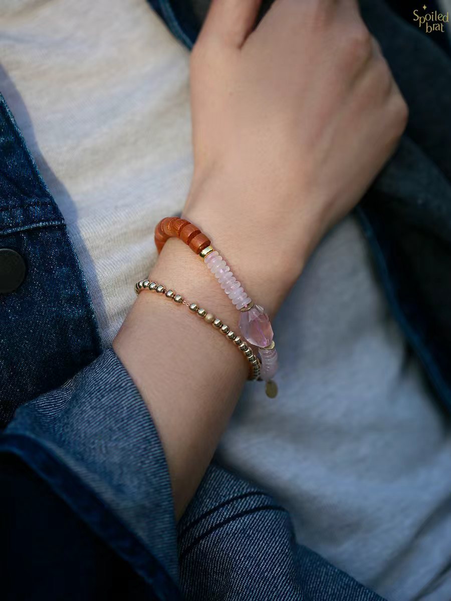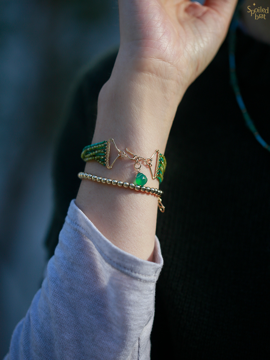 SpoiledBrat Jewelry金银豆豆手链,是今年的ins爆款,14k注金/925纯银的材质非常抗打,细腻优雅的淡金色兼顾了造型和质感。中间一颗磨砂金珠更是体现了设计巧思。