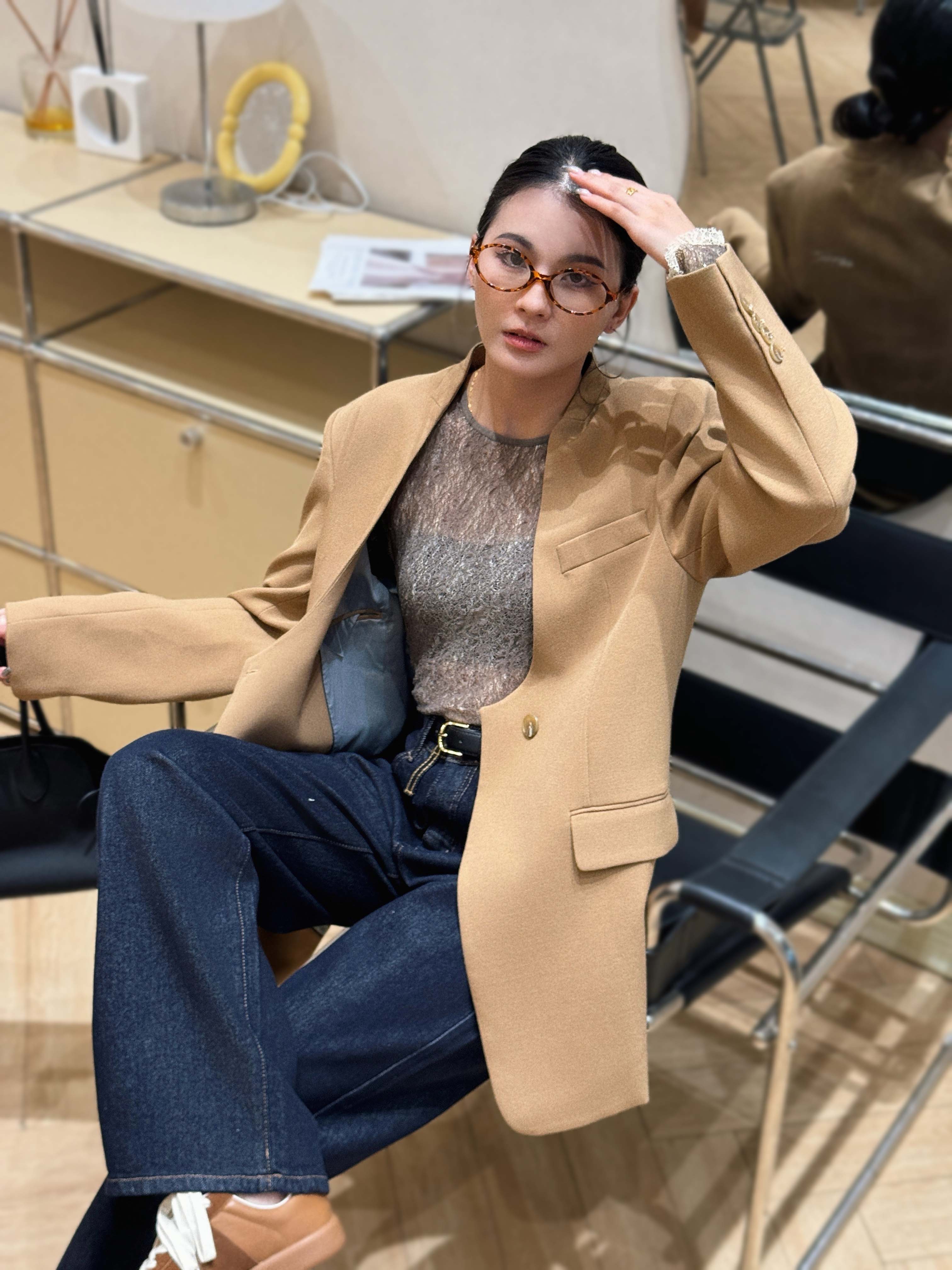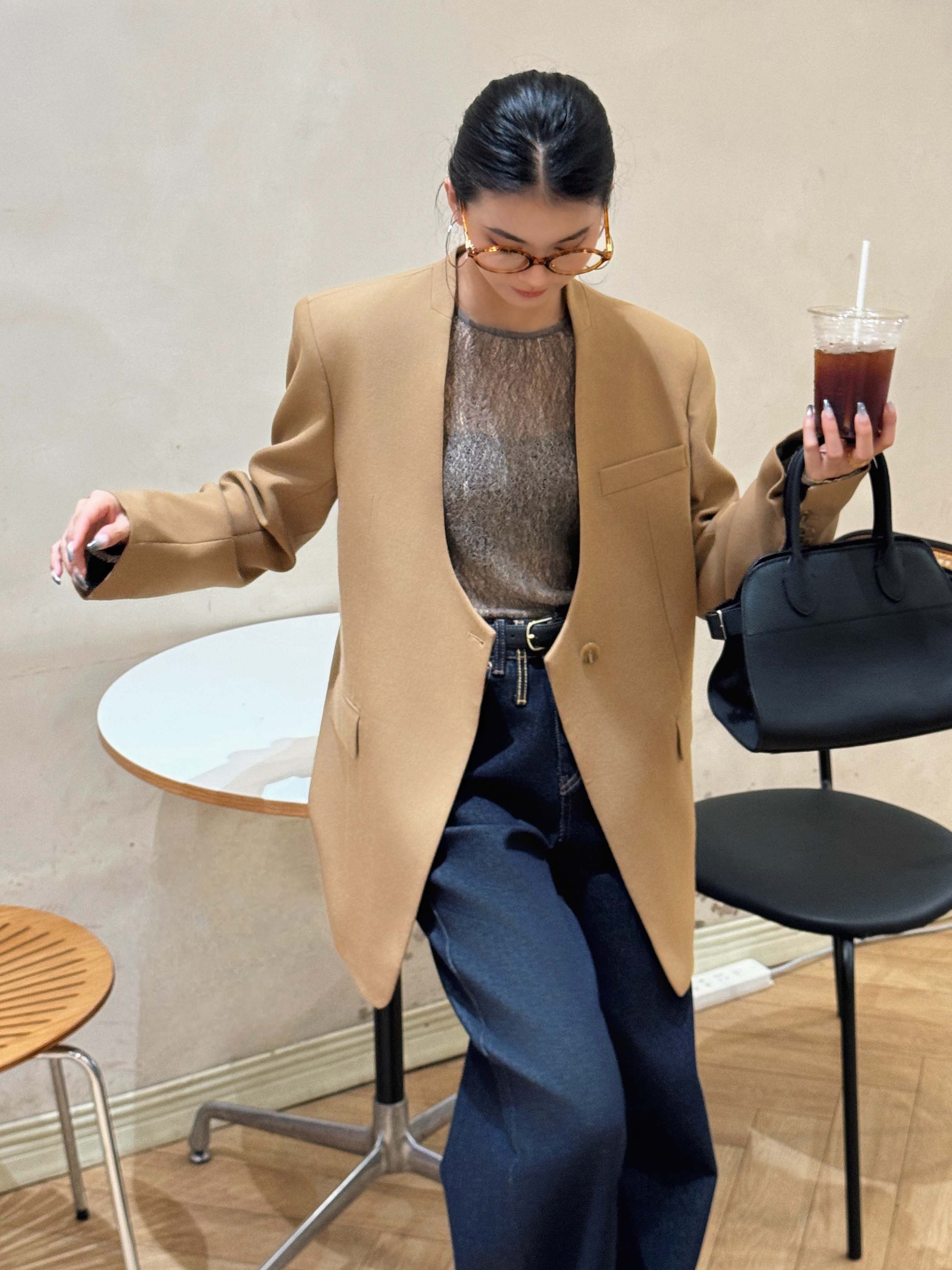 正面是笔直的H型+微廓落肩设计,J简挺括好穿不挑人