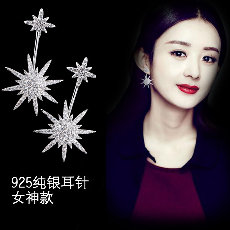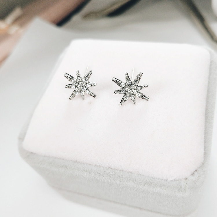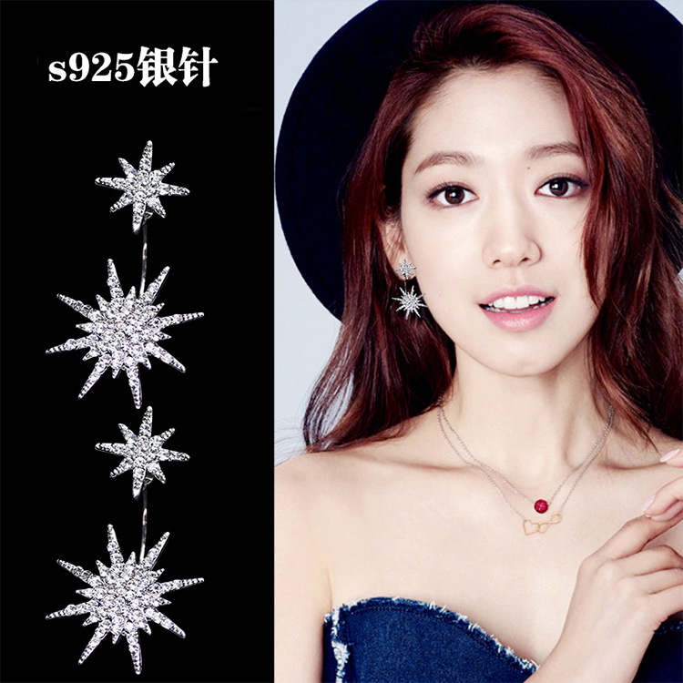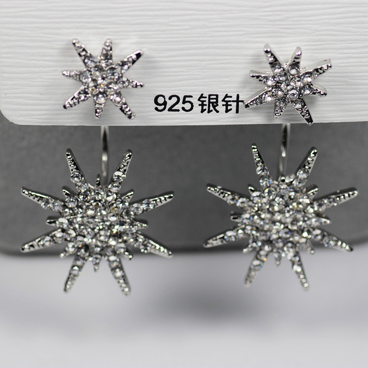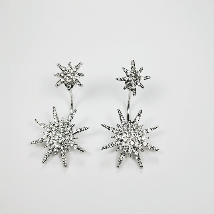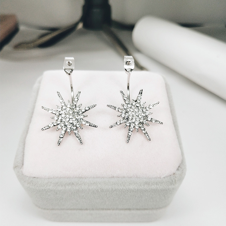 JU-HG0320欧美气质夸张后挂式镶钻八芒星耳环网红时尚街拍太阳花耳钉耳坠女