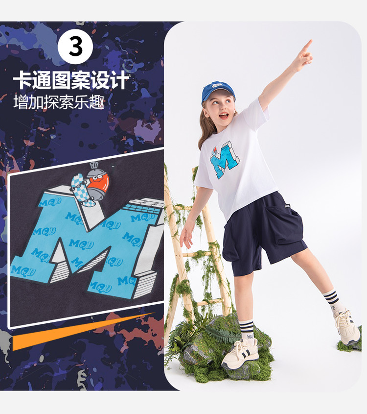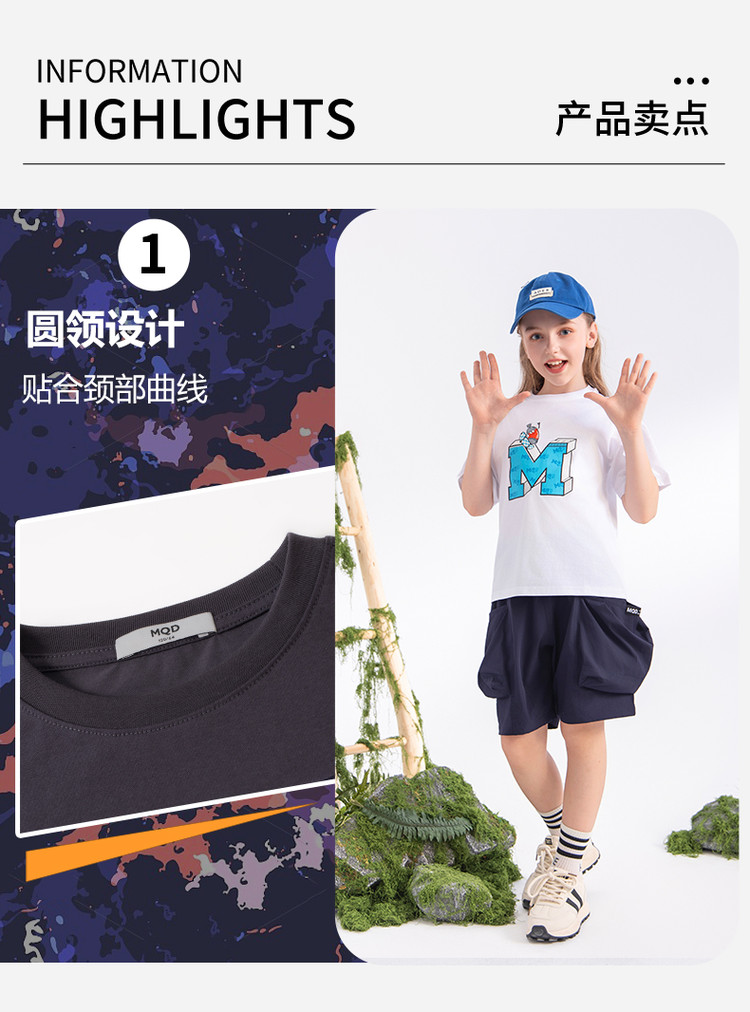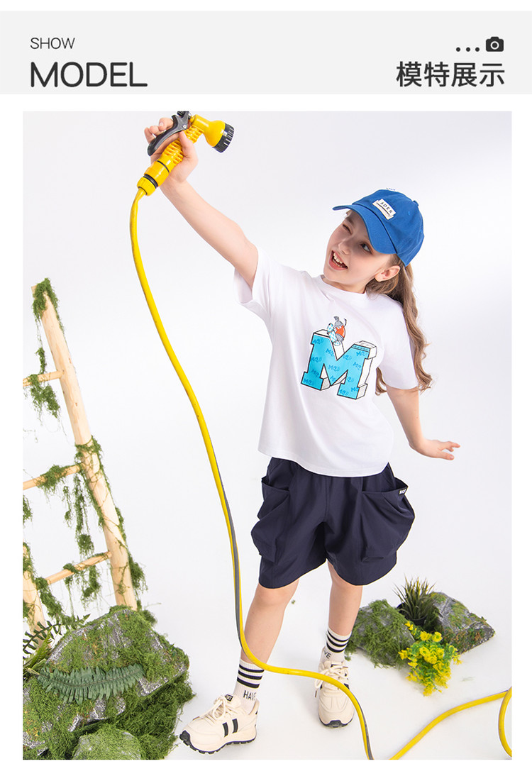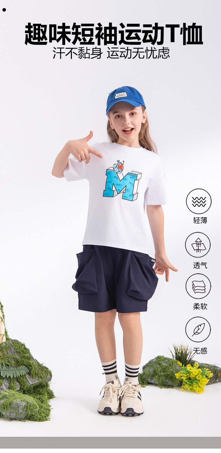 【MQD】童装夏季新品儿童抗菌运动T恤透气柔软休闲圆领上衣短袖T恤