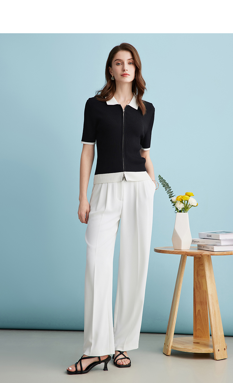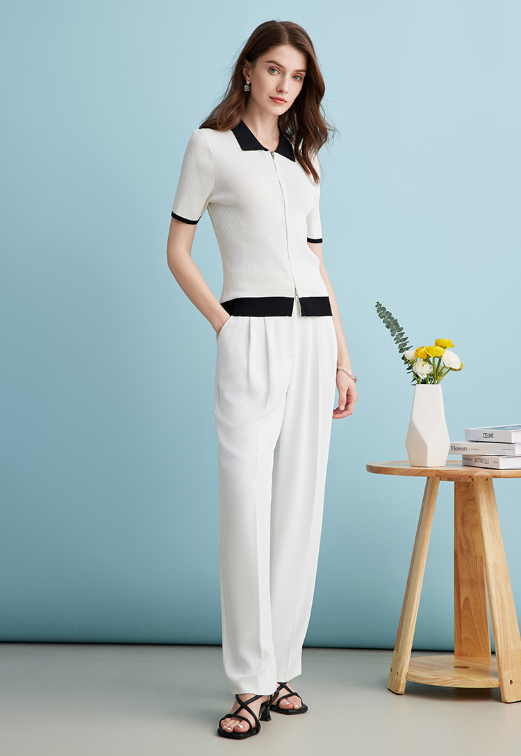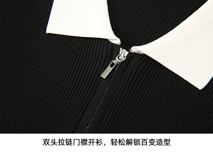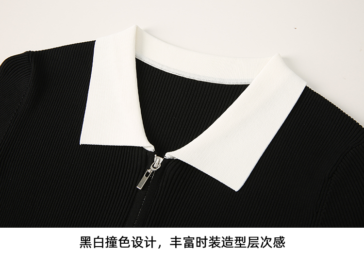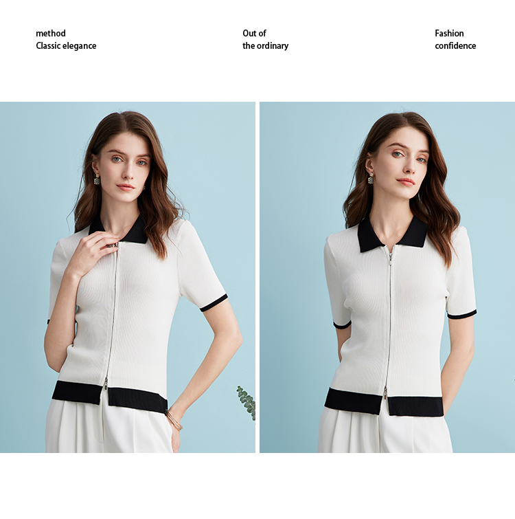 EITIE爱特爱夏季新款时尚气质通勤撞色翻领针织上衣B2401304