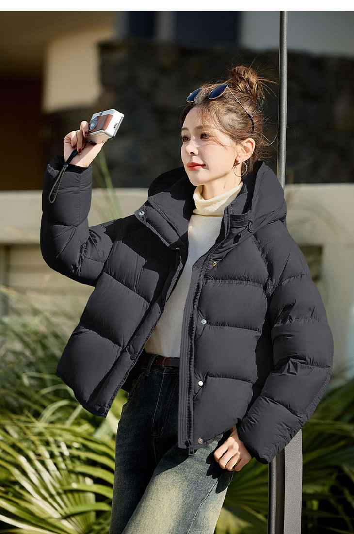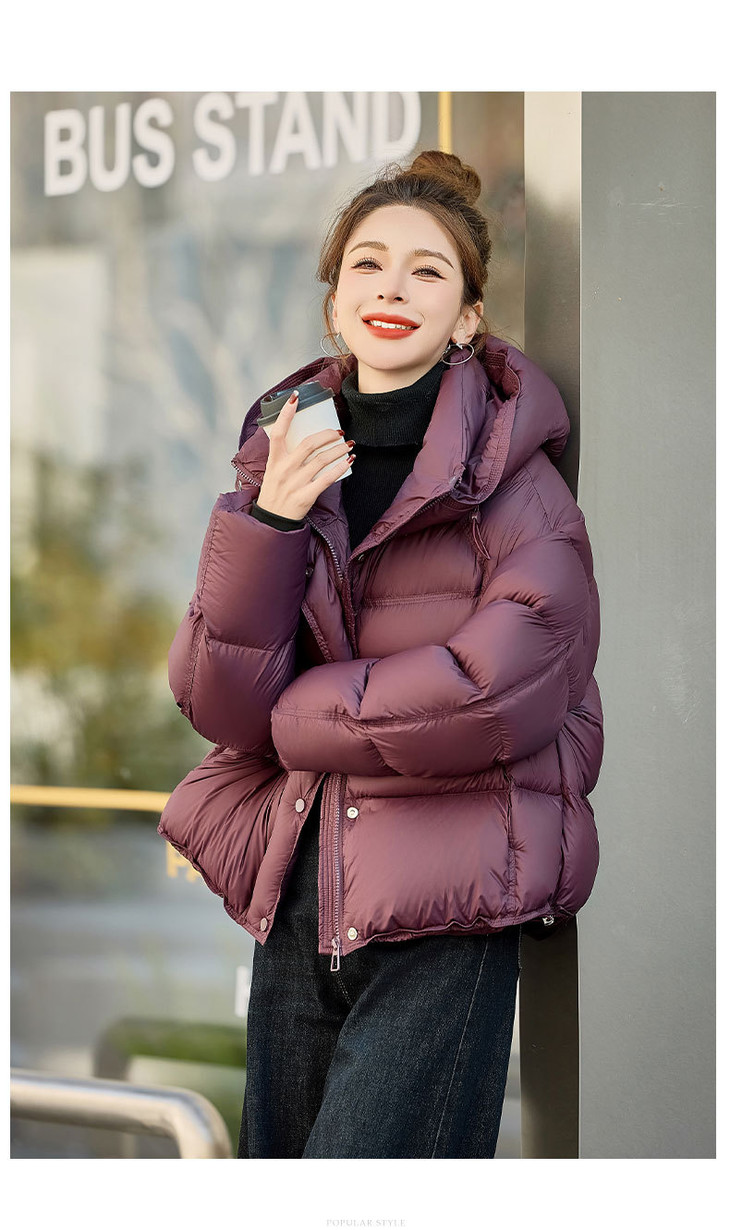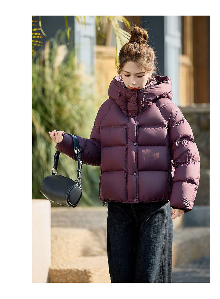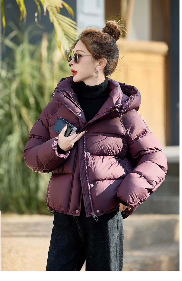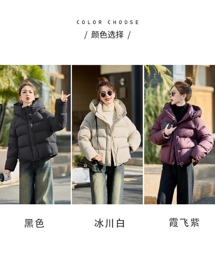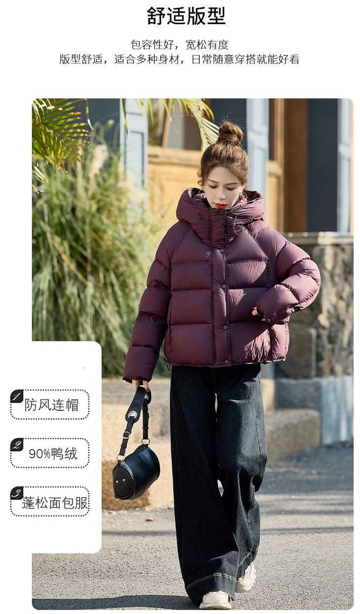 超好看紫色羽绒服短款,时尚连帽加厚保暖面包服外套HR-SYY2685