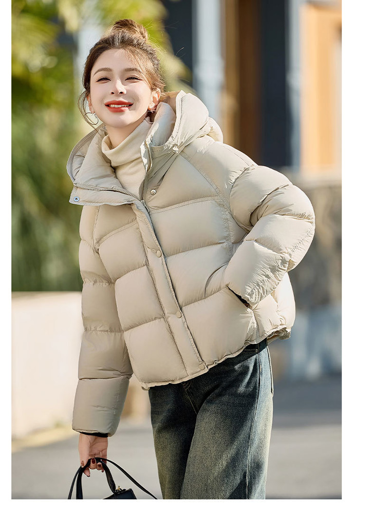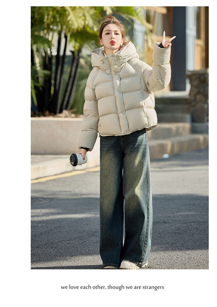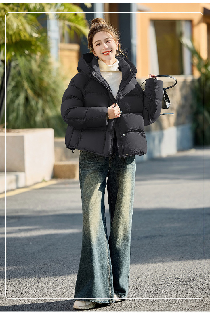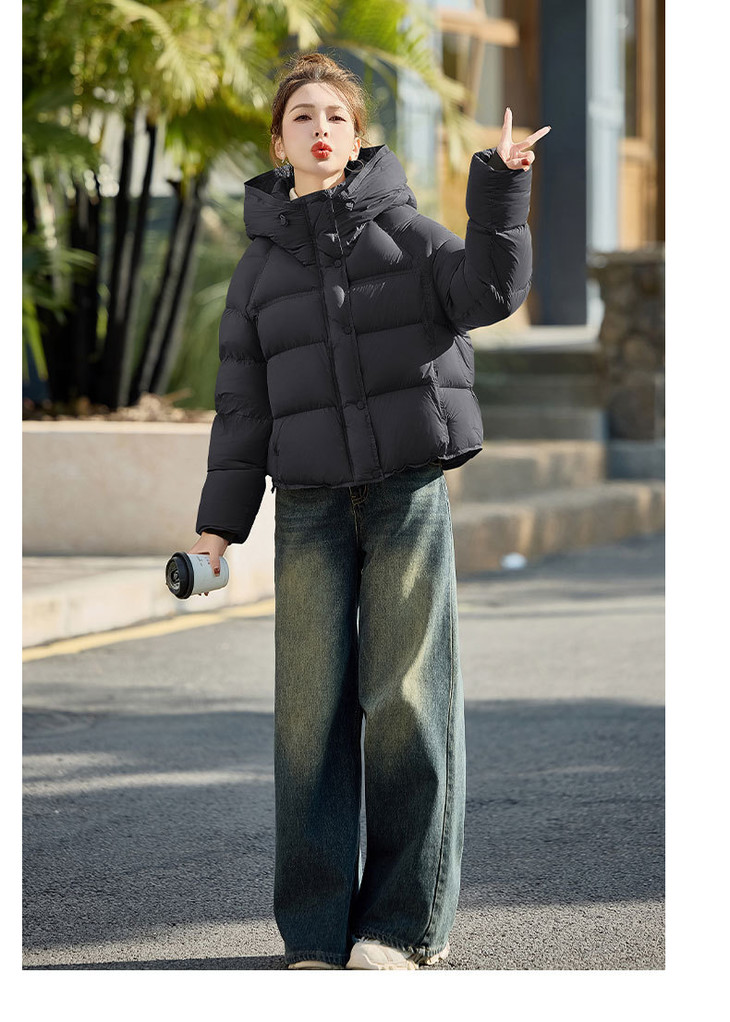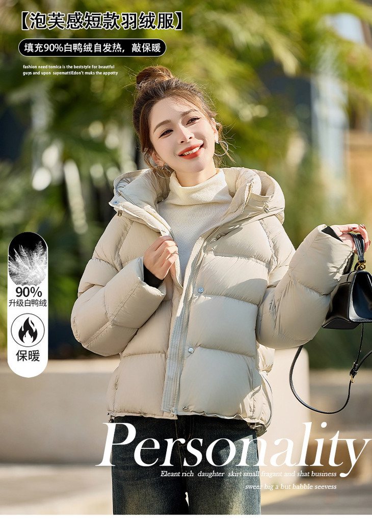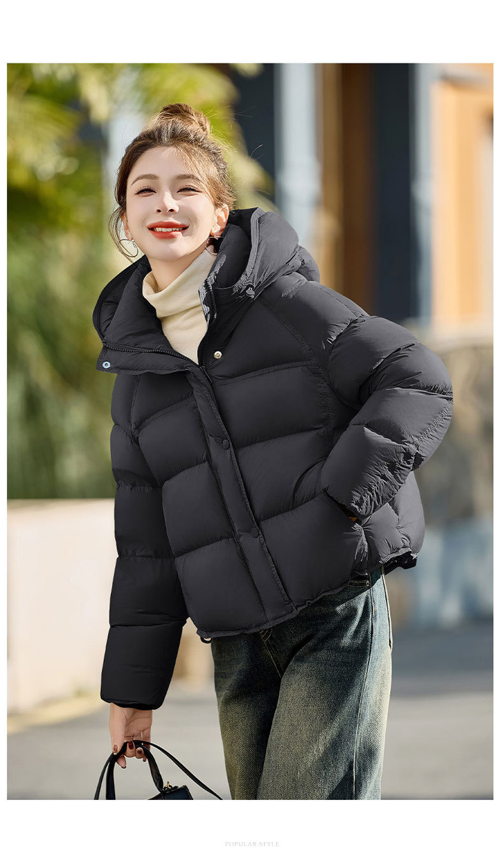 超好看紫色羽绒服短款,时尚连帽加厚保暖面包服外套HR-SYY2685