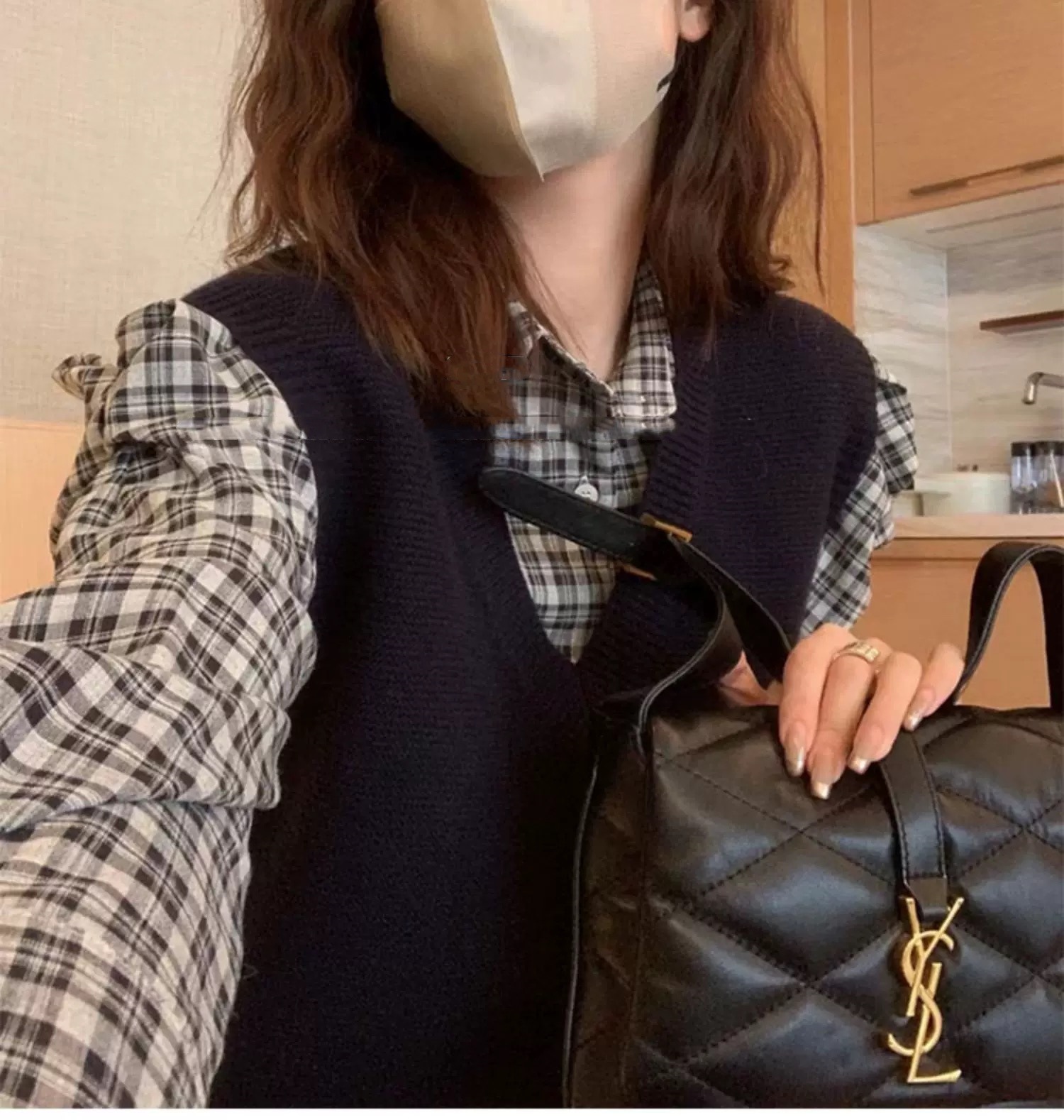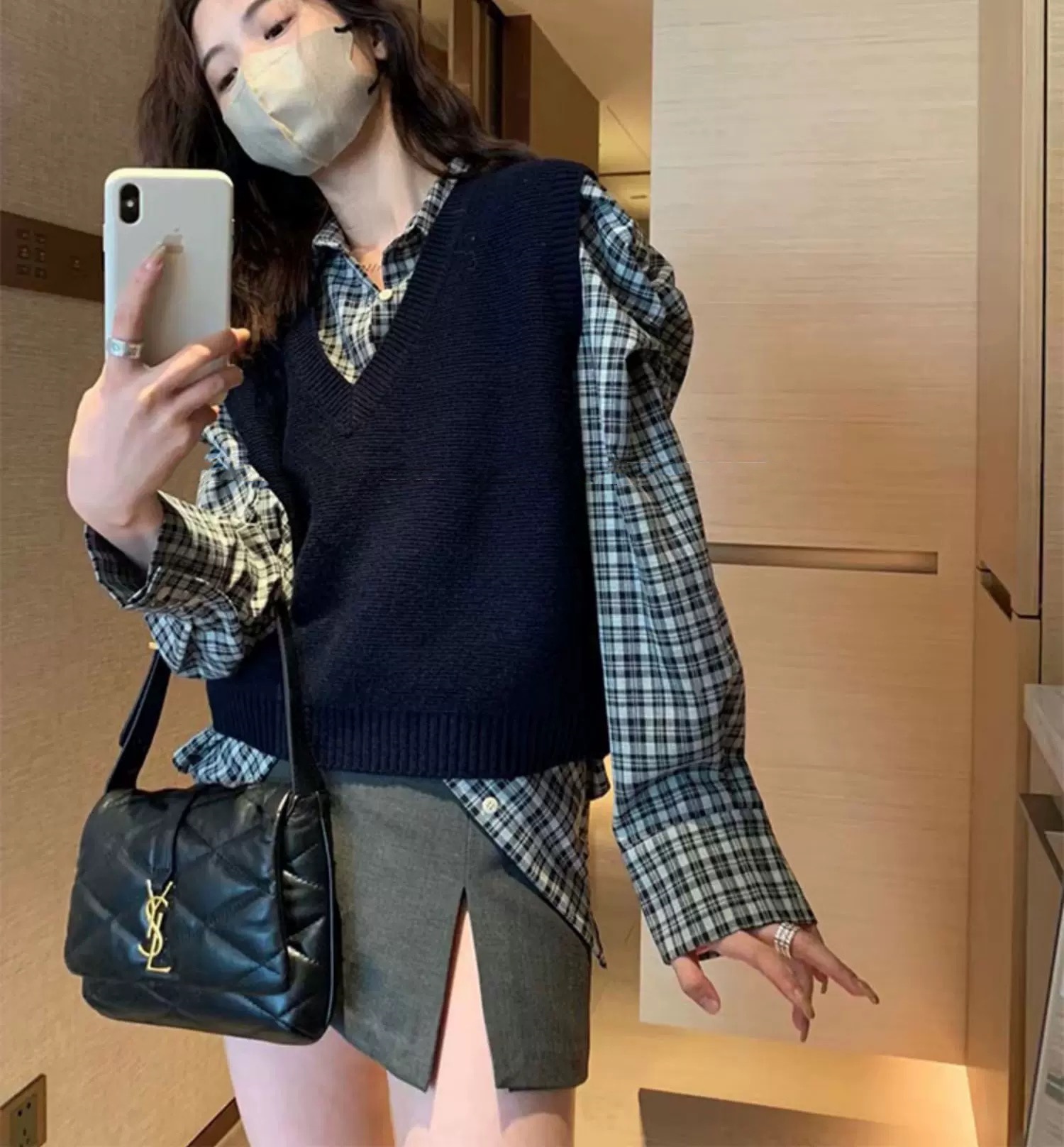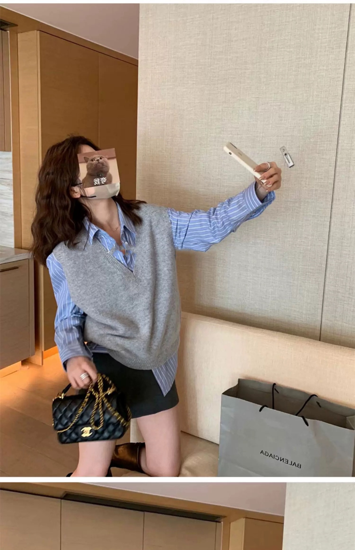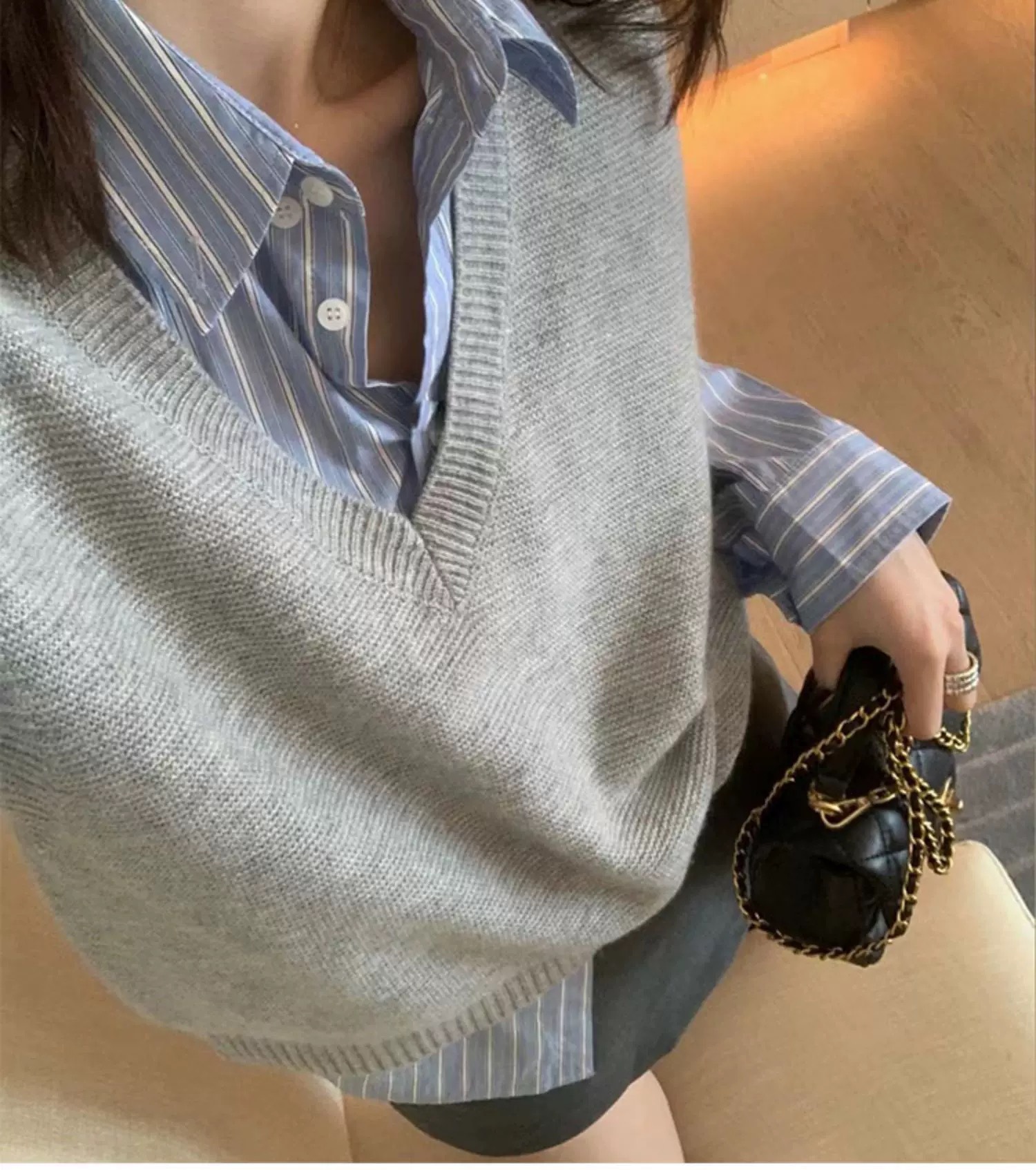 丁摩 春秋季新款气质精纺羊毛V领马甲显瘦女士针织无袖背心坎肩5ZF-20730