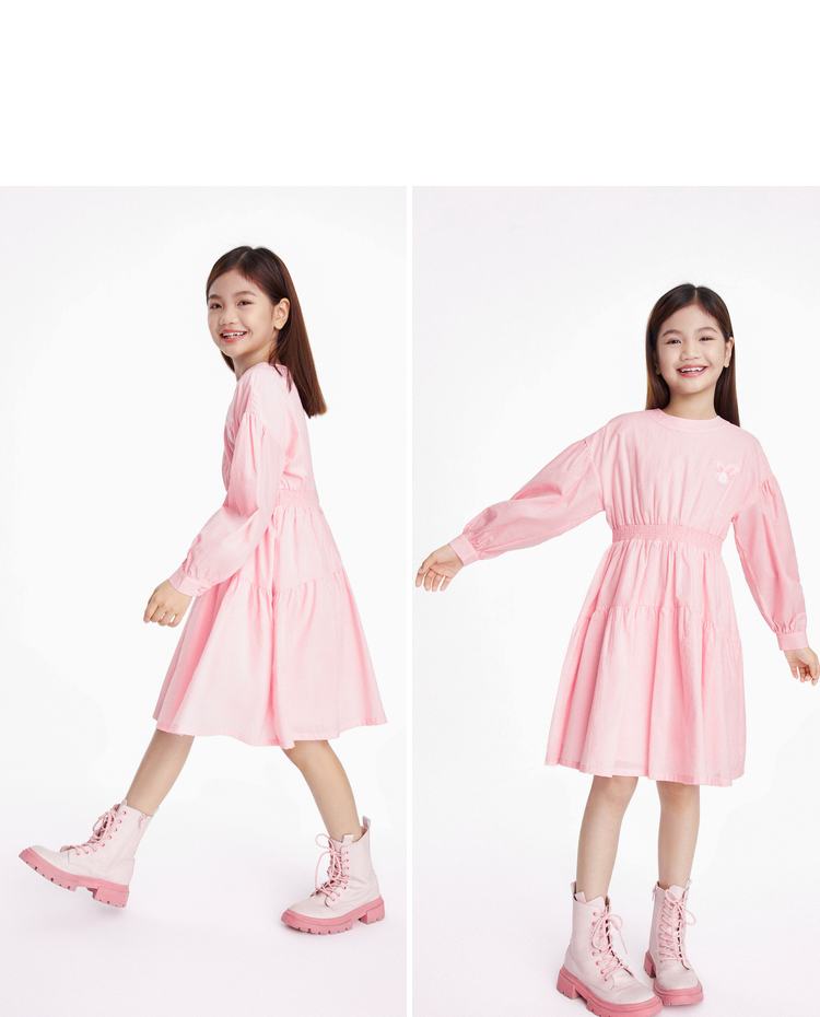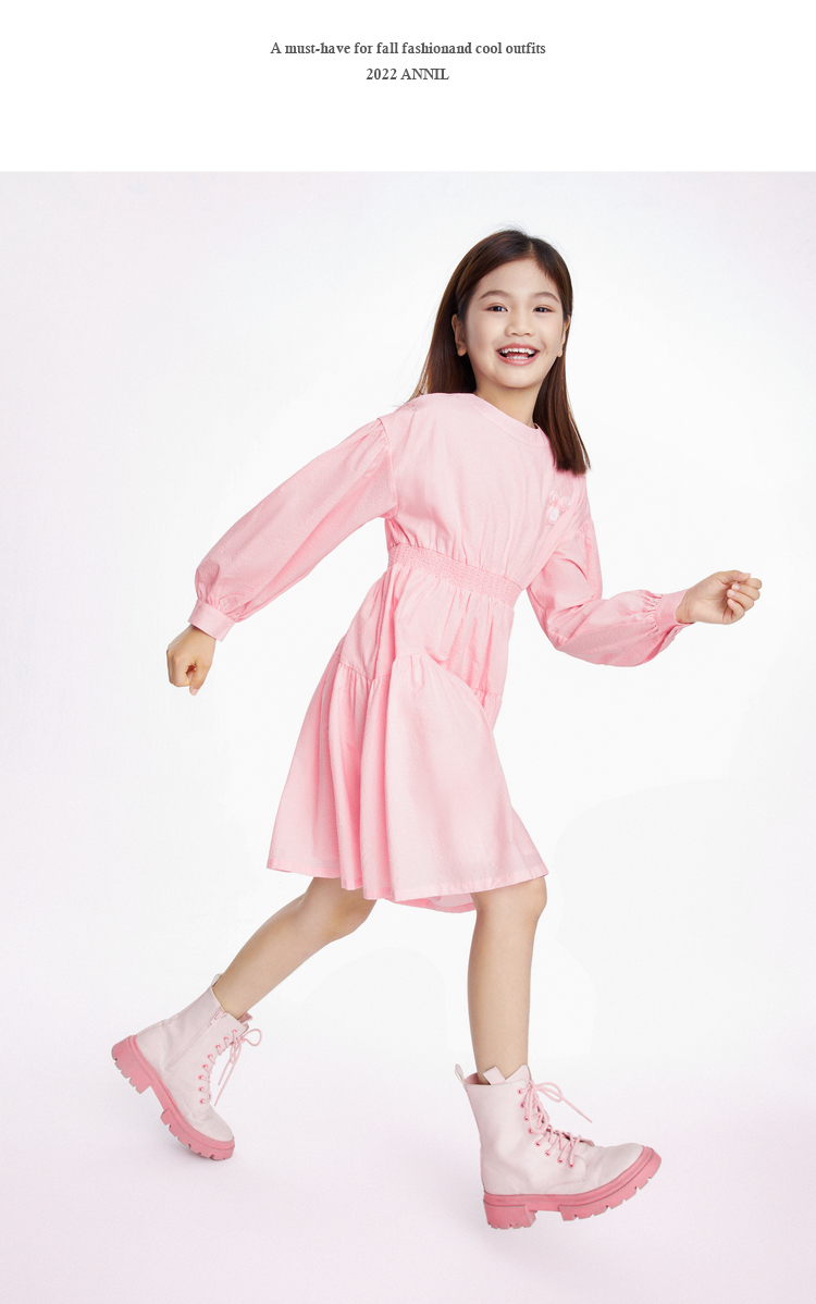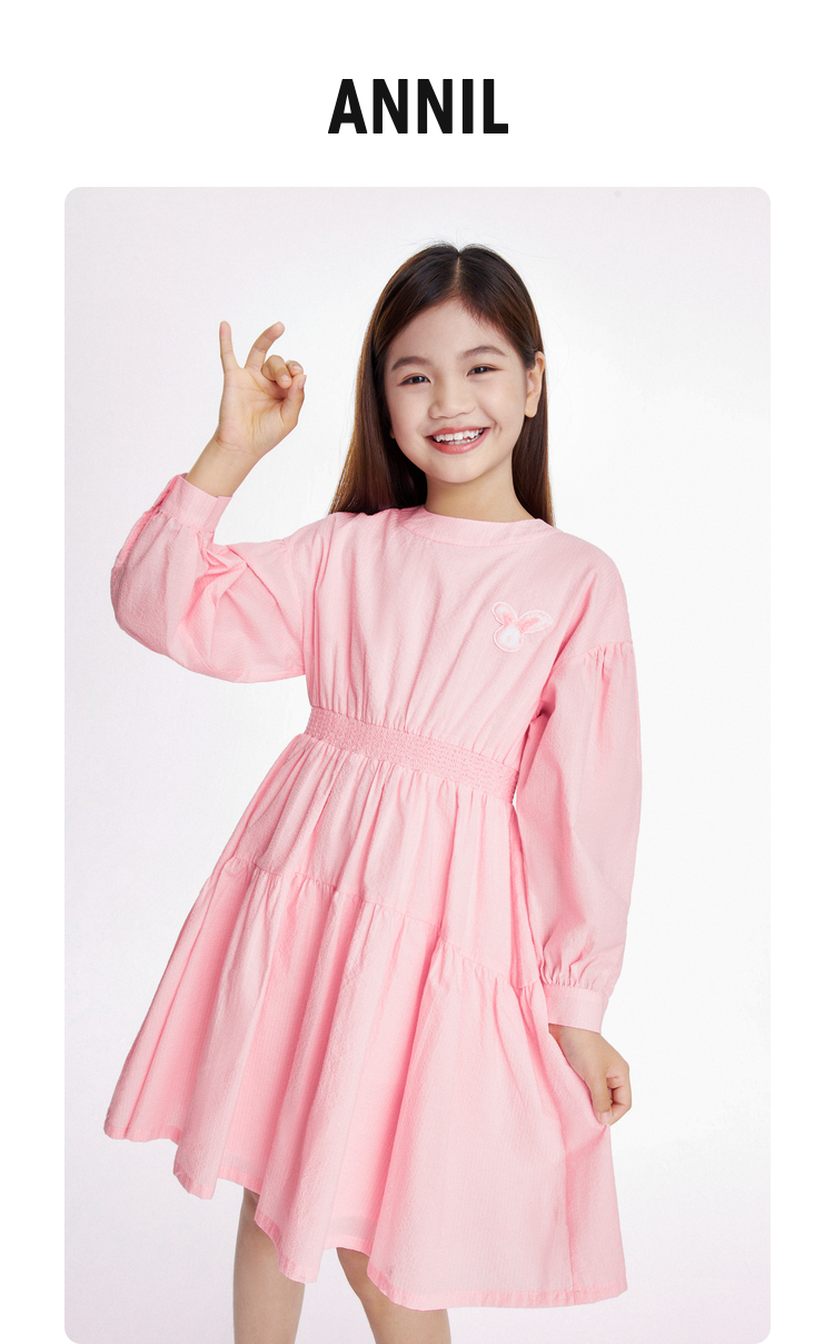 女童连衣裙洋气长袖秋新款女孩时髦纯棉甜美公主A字裙安奈儿童装EG313048