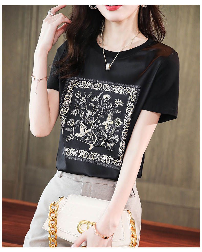舒适百搭,真丝短袖高端洋气桑蚕丝上衣MZC-21031