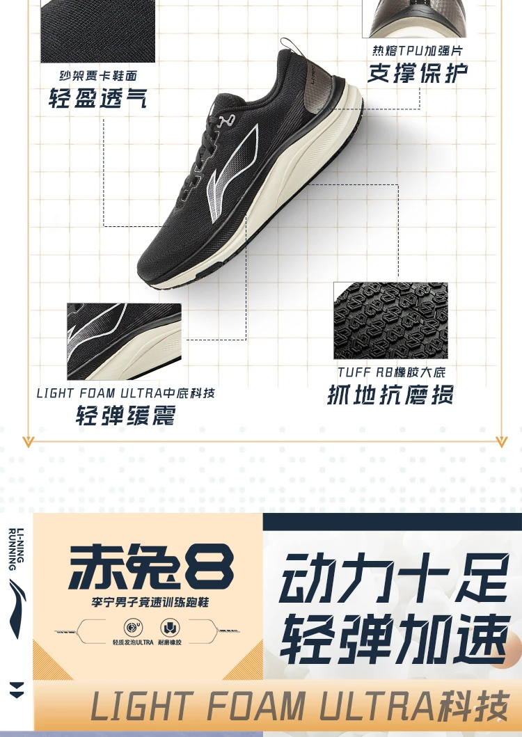 李宁赤兔8男子反光轻量竞速训练跑鞋ARPV013