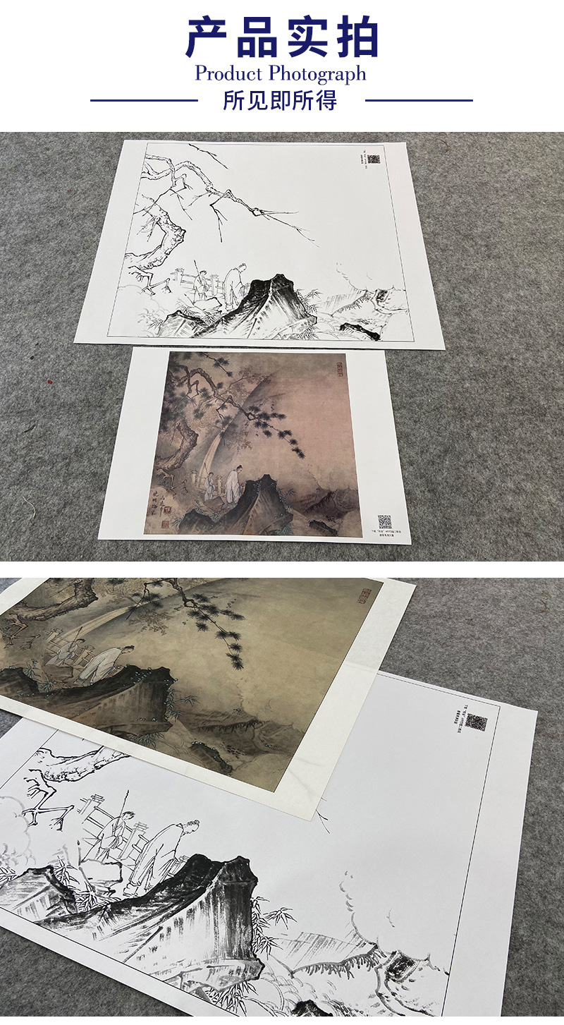 【大彩图】李晓明工笔画白描底稿小品《临马远山水》临摹勾线山水线稿K072