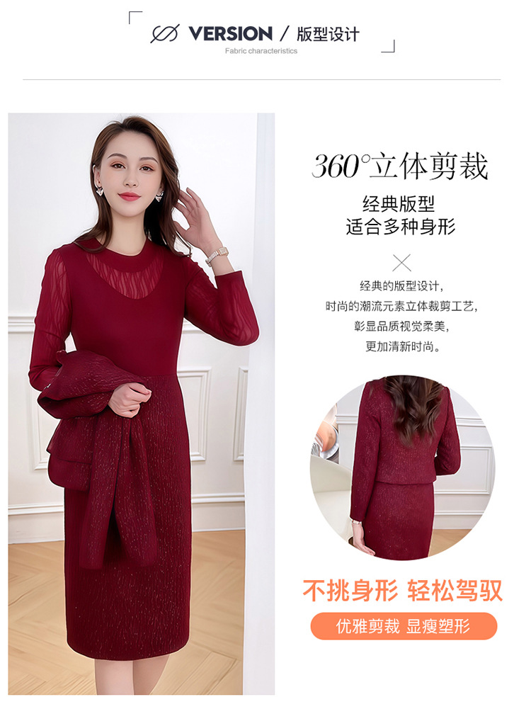 QYM 1125X18-Y小香风外套大码两件套连衣裙 商品图4