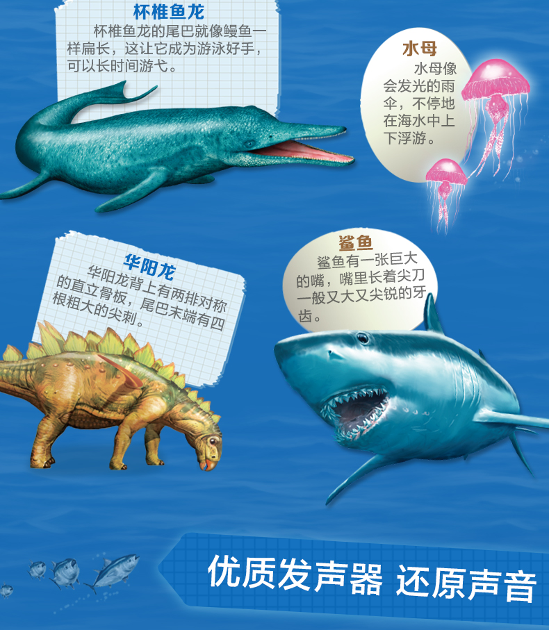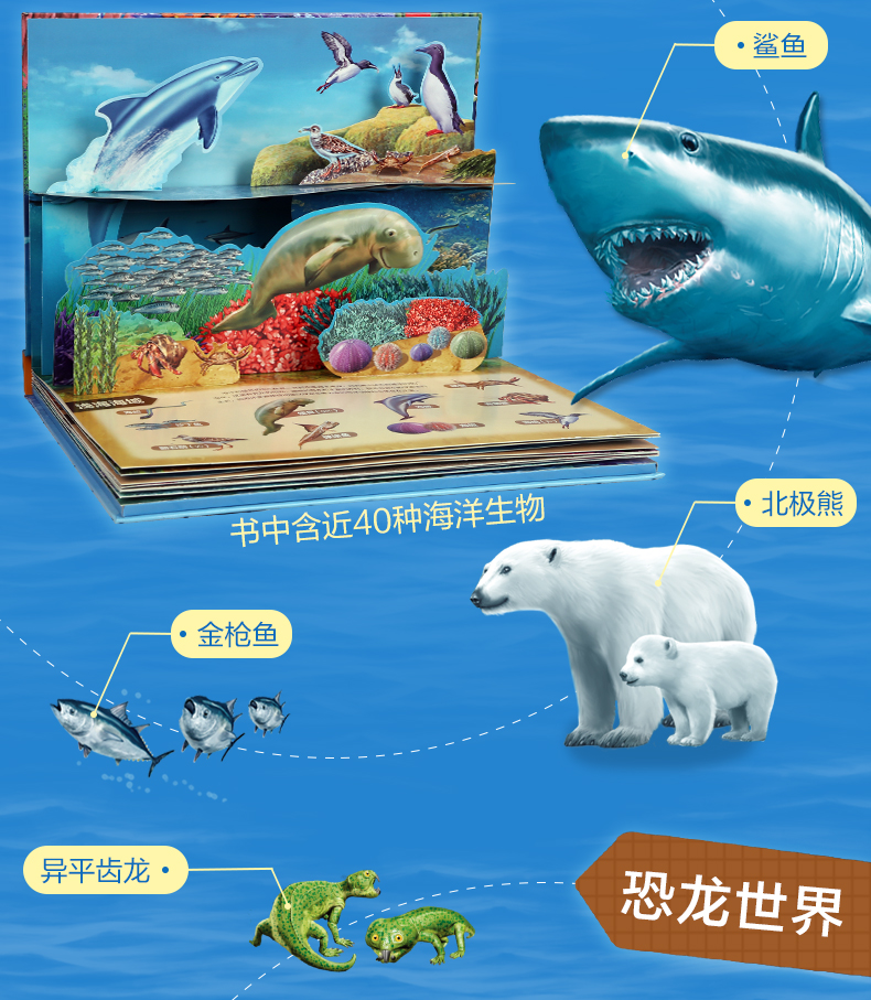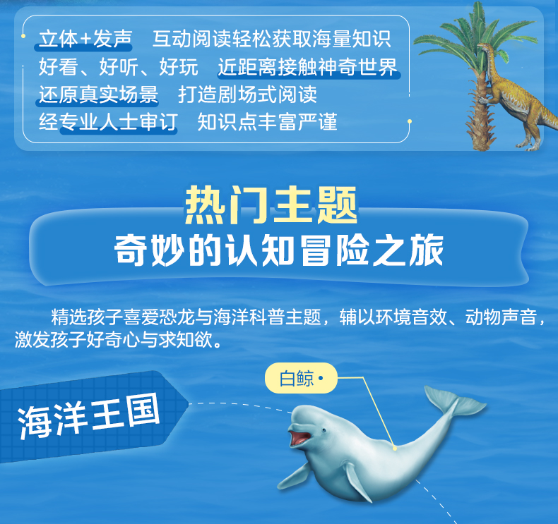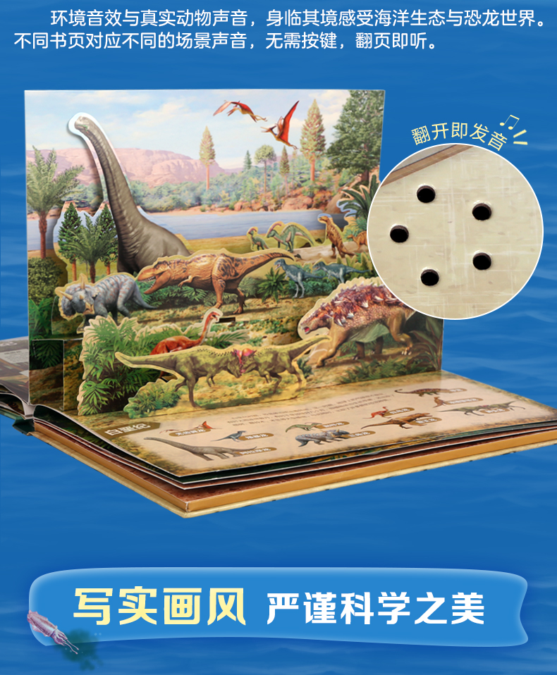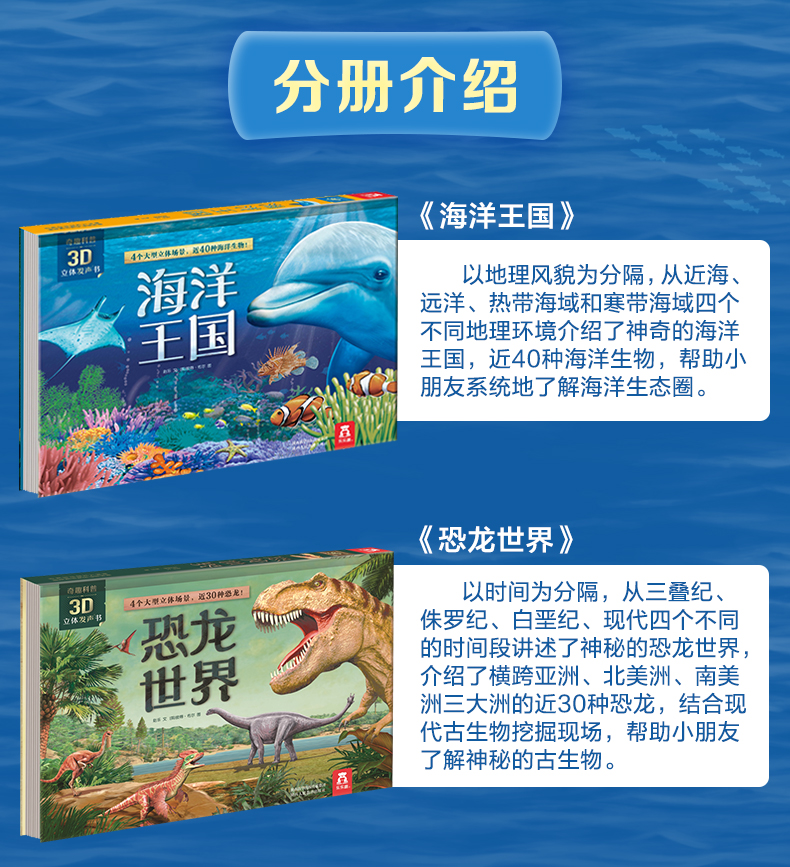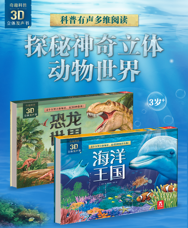 新书预售 奇趣科普3D立体发声书2册套装 海洋王国恐龙世界 3-6岁