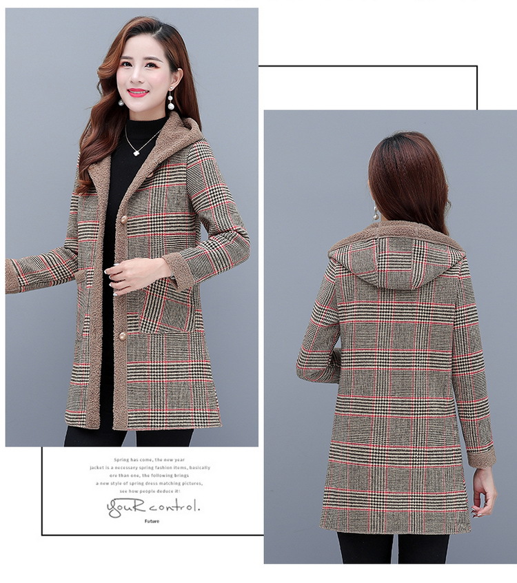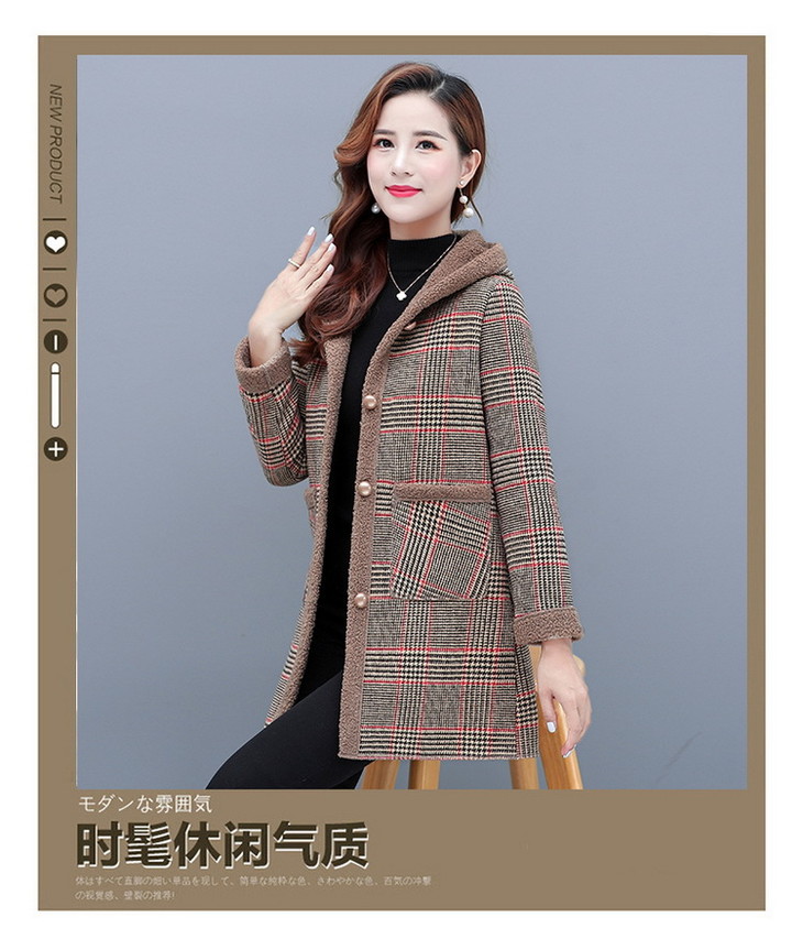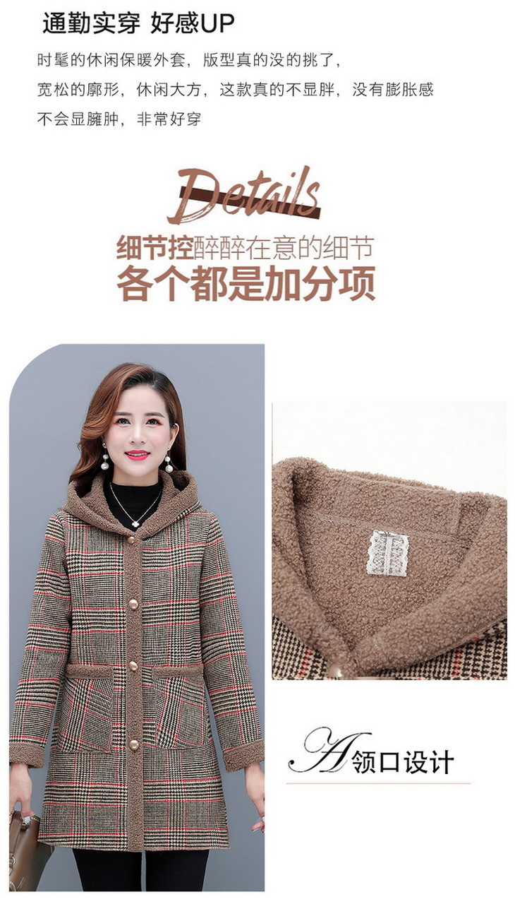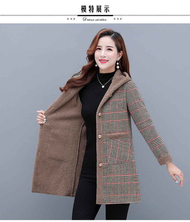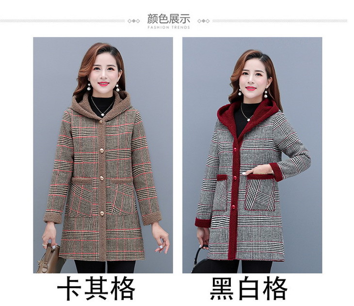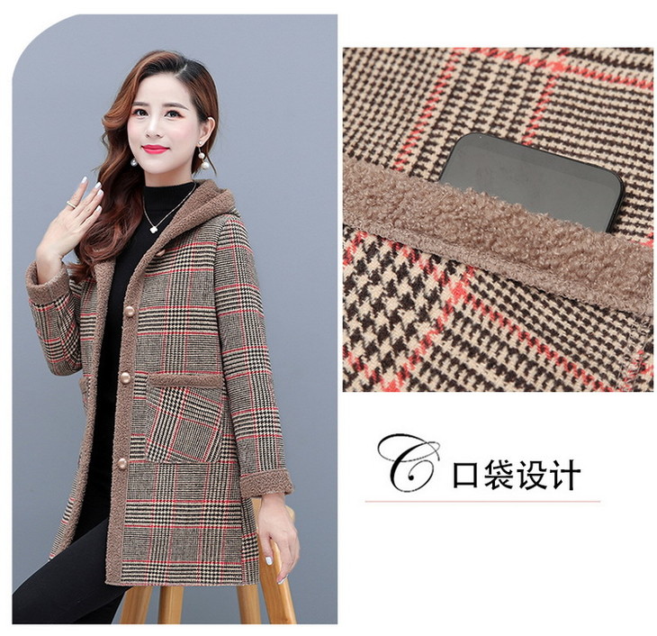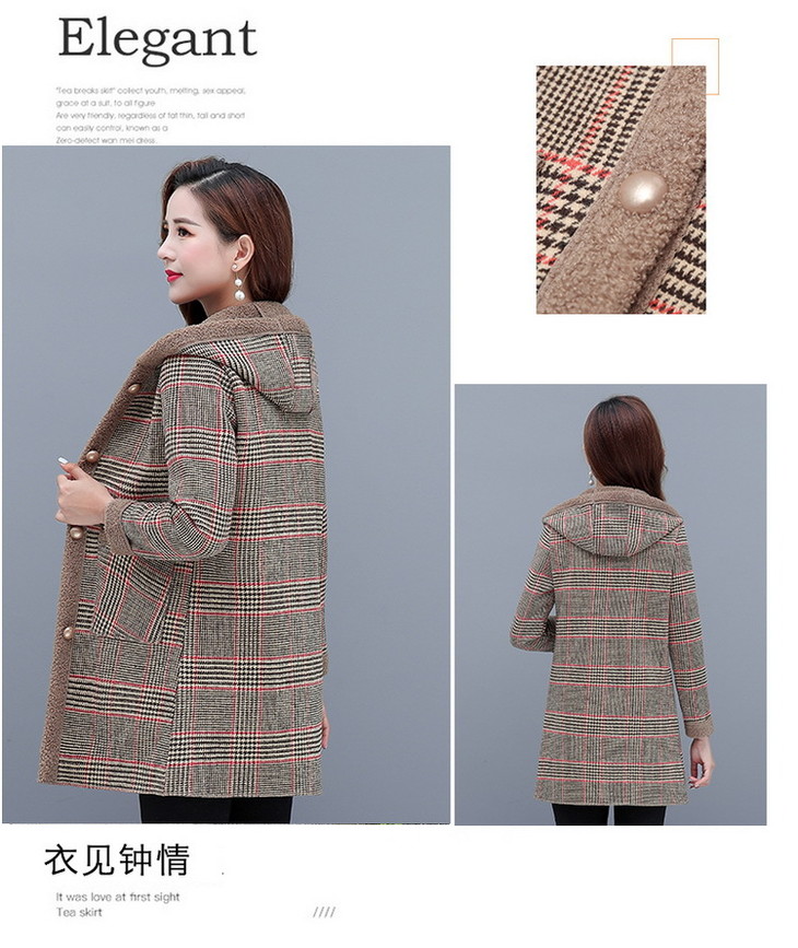 MQ-MZX296秋冬新款中长款韩版连帽款千鸟格大衣一件
