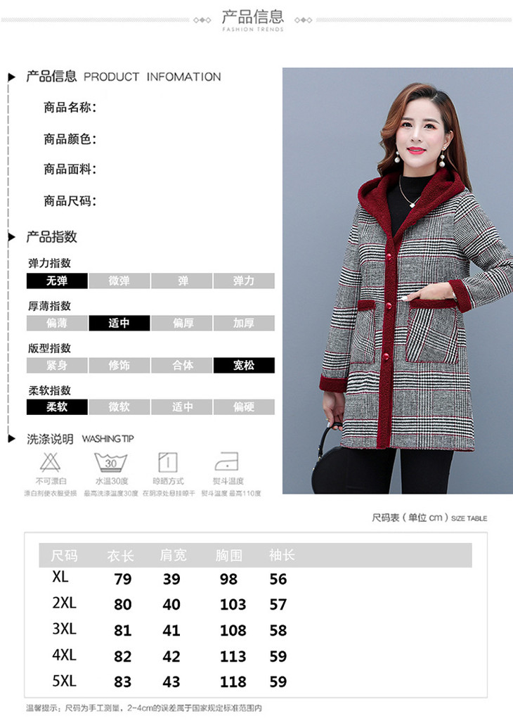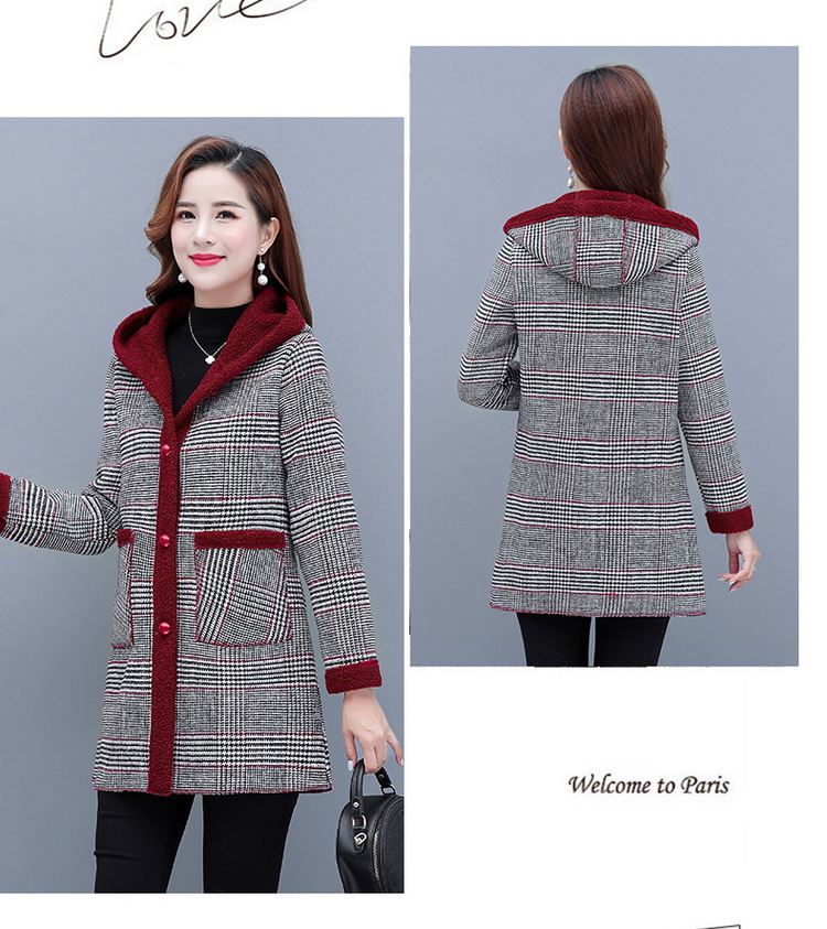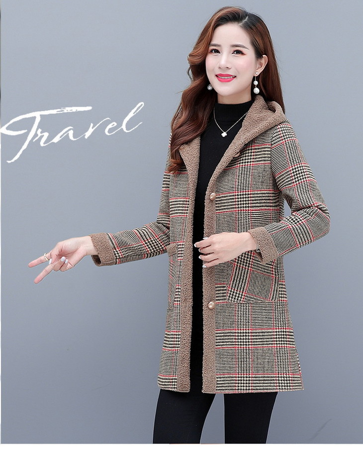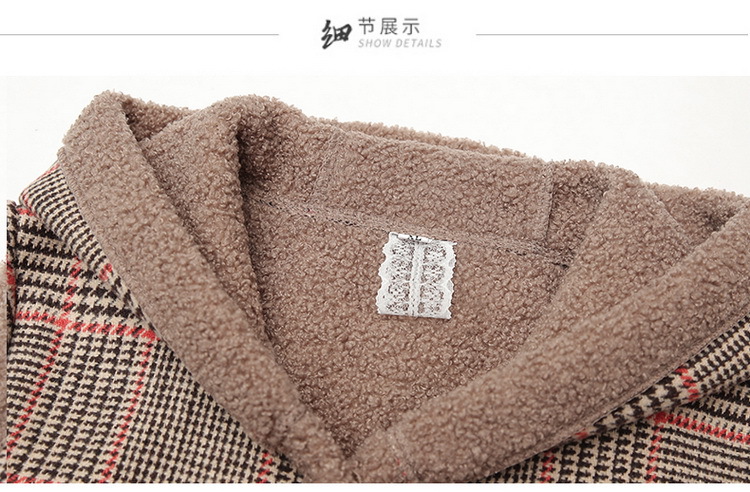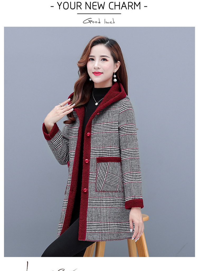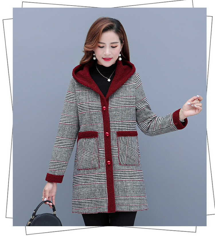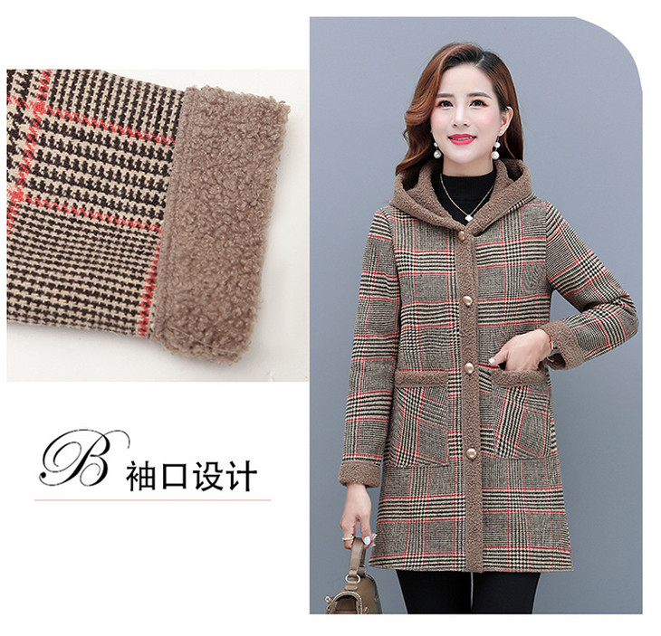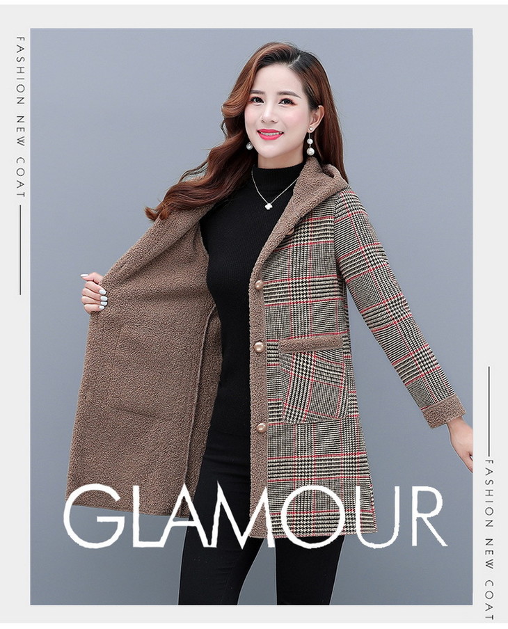 MQ-MZX296秋冬新款中长款韩版连帽款千鸟格大衣一件