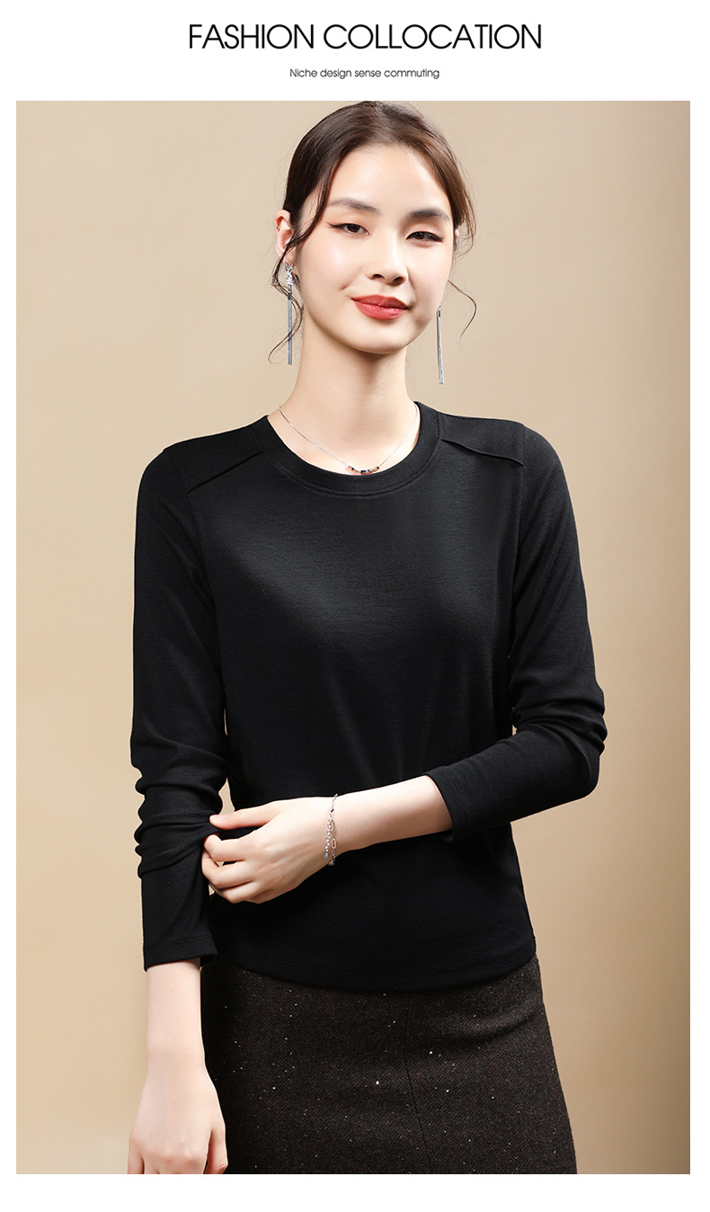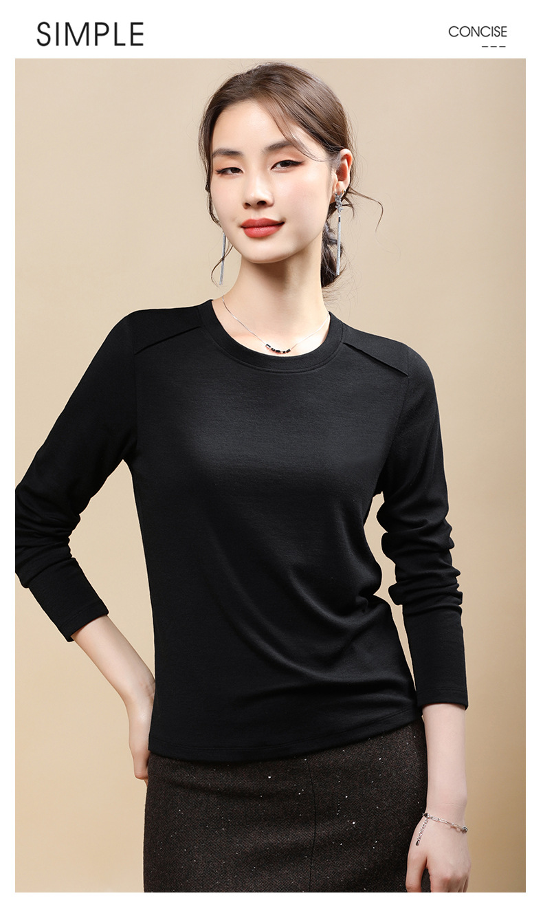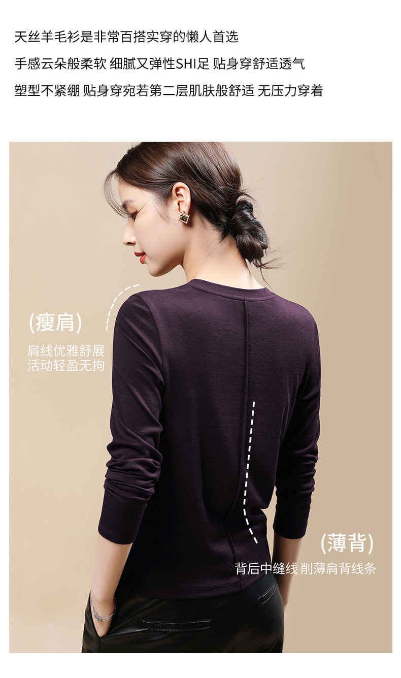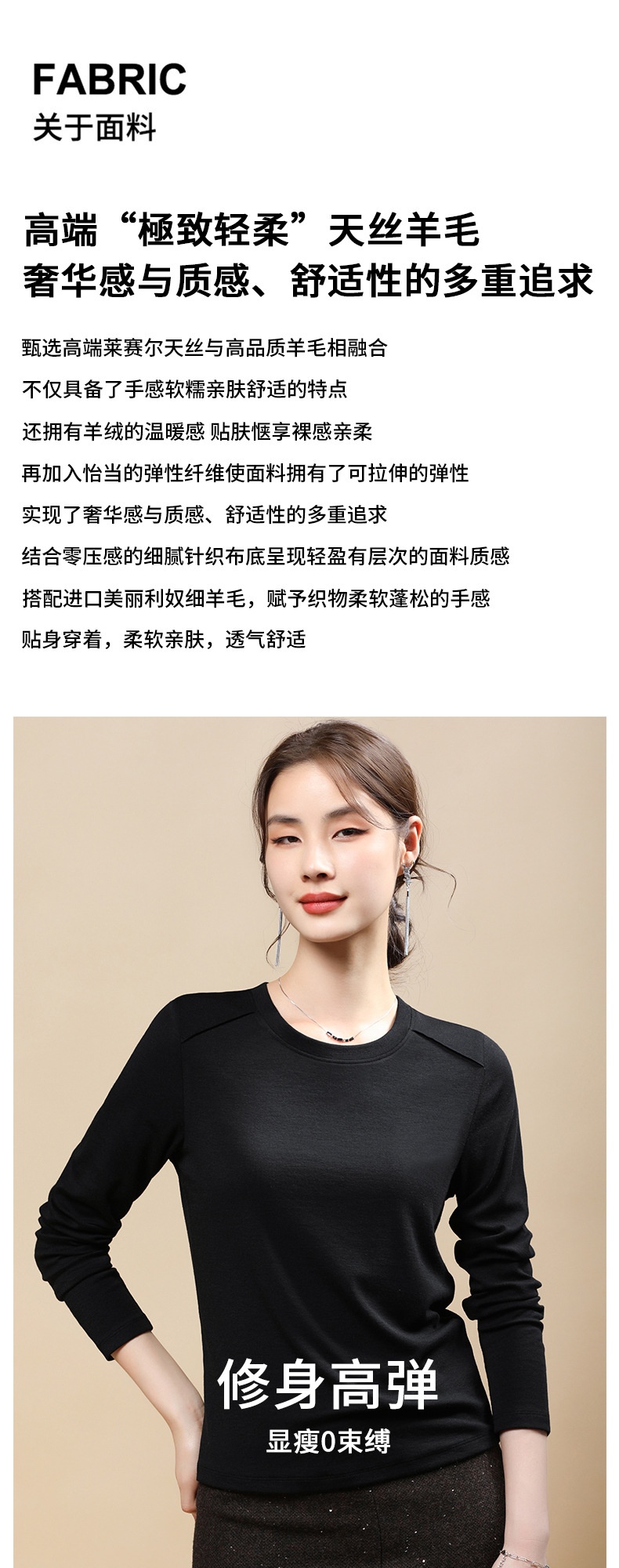 「自j」全新升级【铂金会员128/天猫169/差价41】(02239)洛诗琳新款莱赛尔天丝羊毛长袖T恤2025秋季正肩显瘦打底上衣