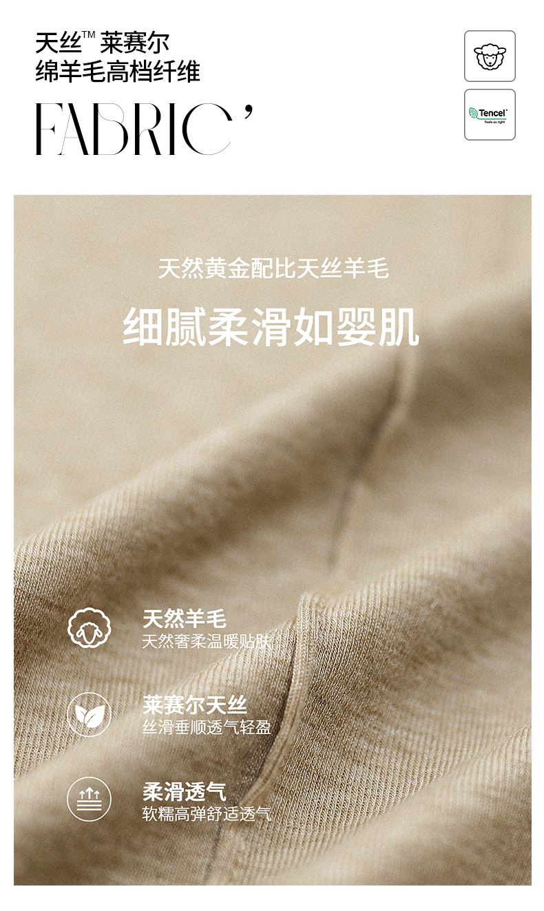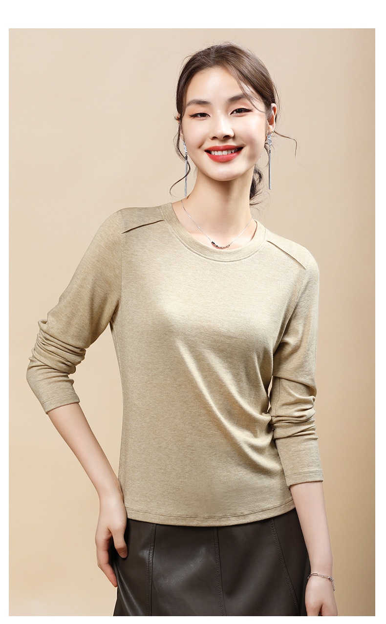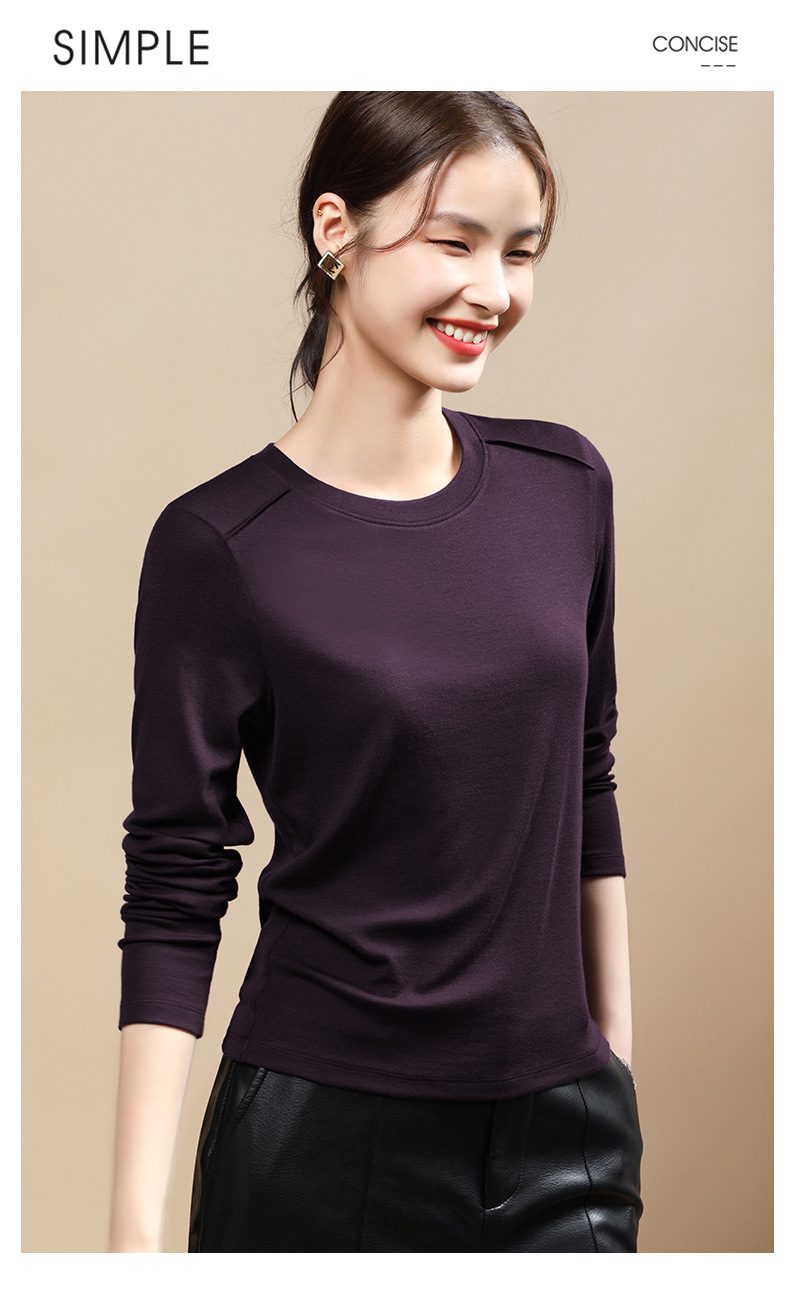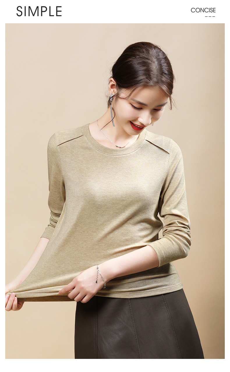 「自j」全新升级【铂金会员128/天猫169/差价41】(02239)洛诗琳新款莱赛尔天丝羊毛长袖T恤2025秋季正肩显瘦打底上衣