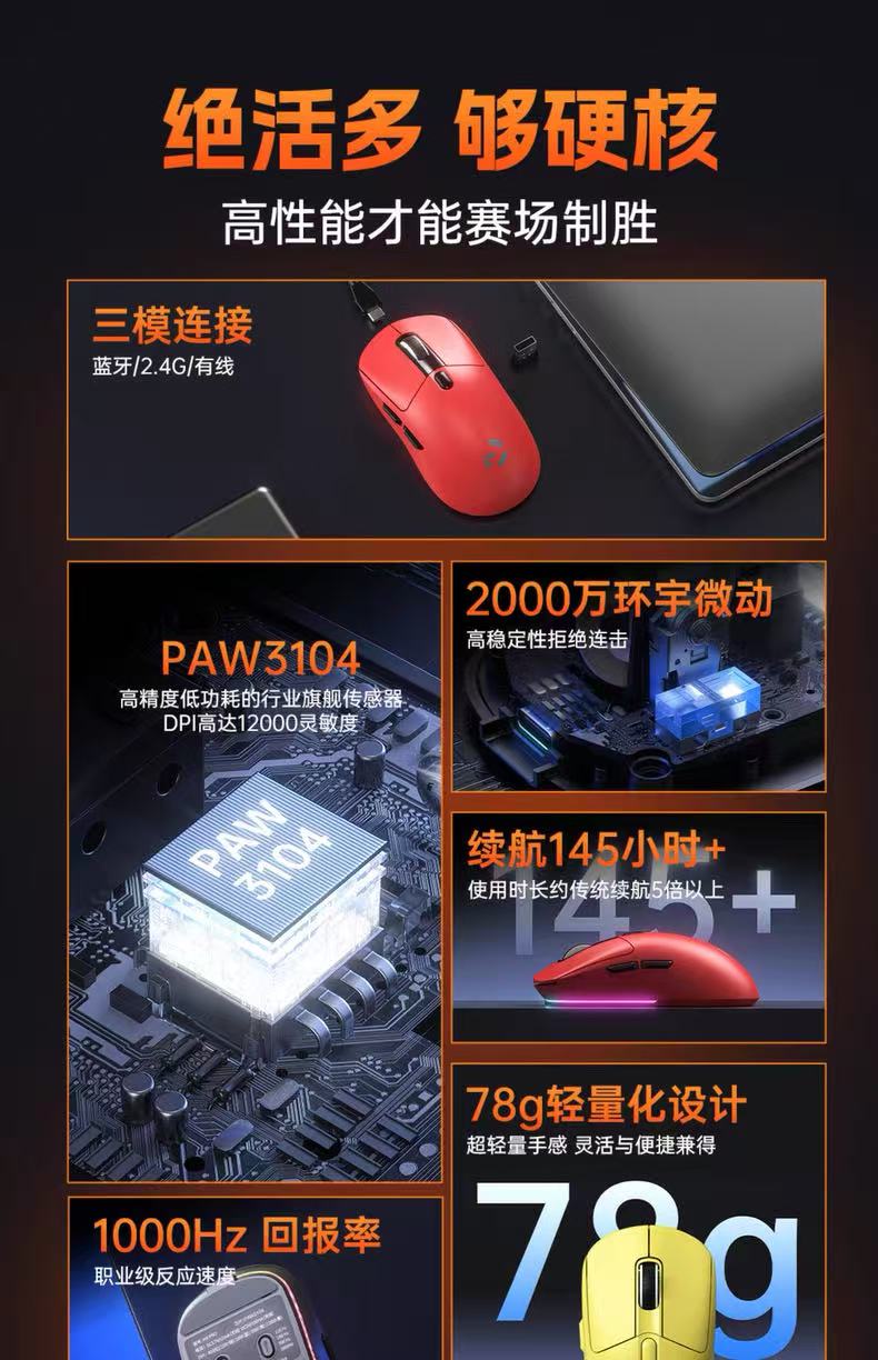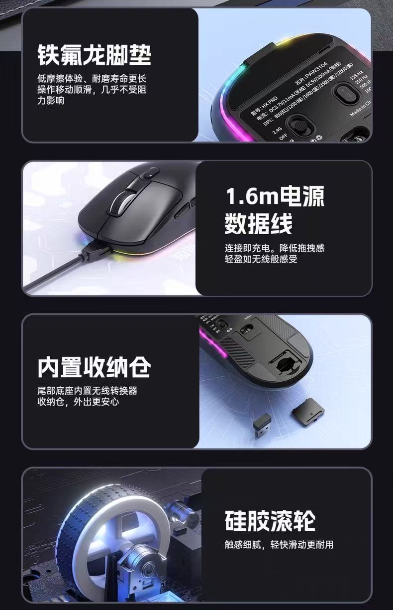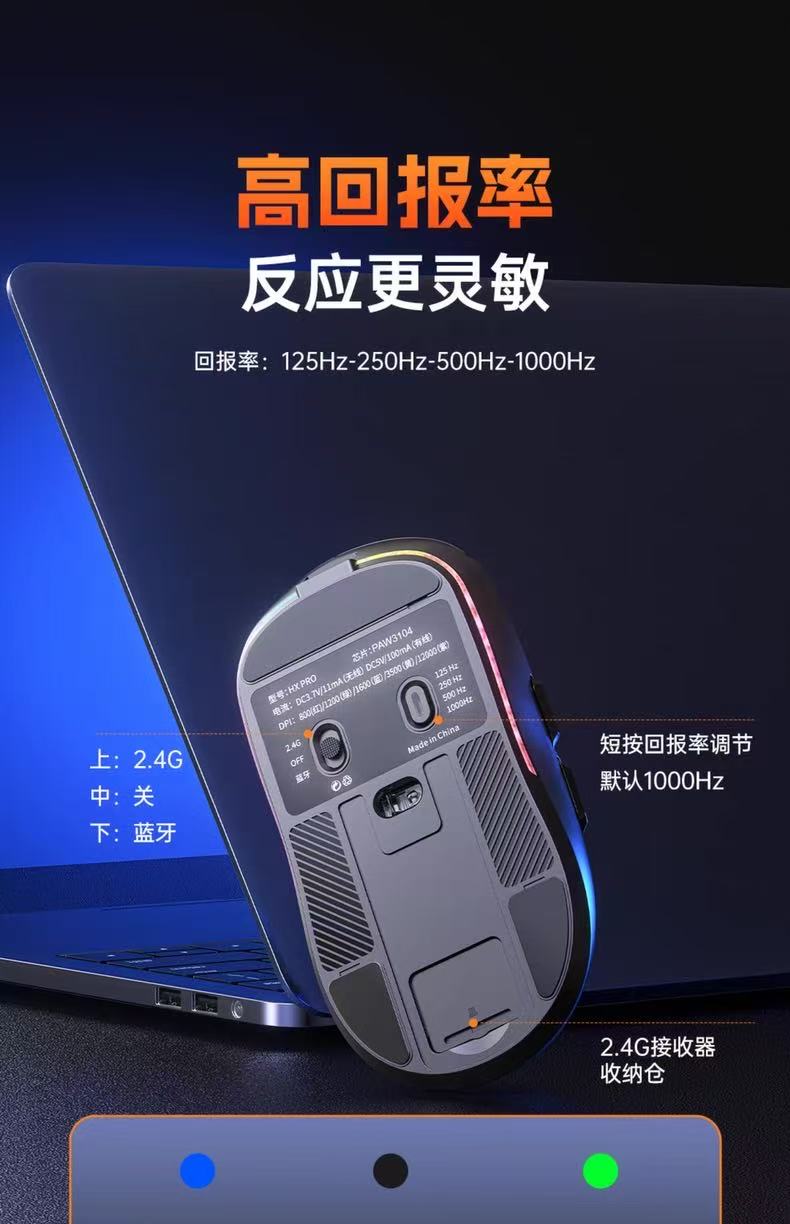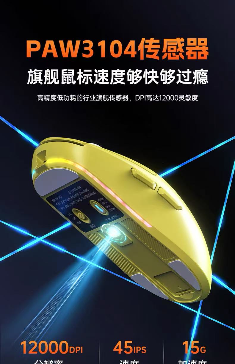 宏慕三模鼠标 原相PAW3104芯片有线蓝牙2.4G连接办公电竞游戏鼠标笔记本台式电脑网吧通用