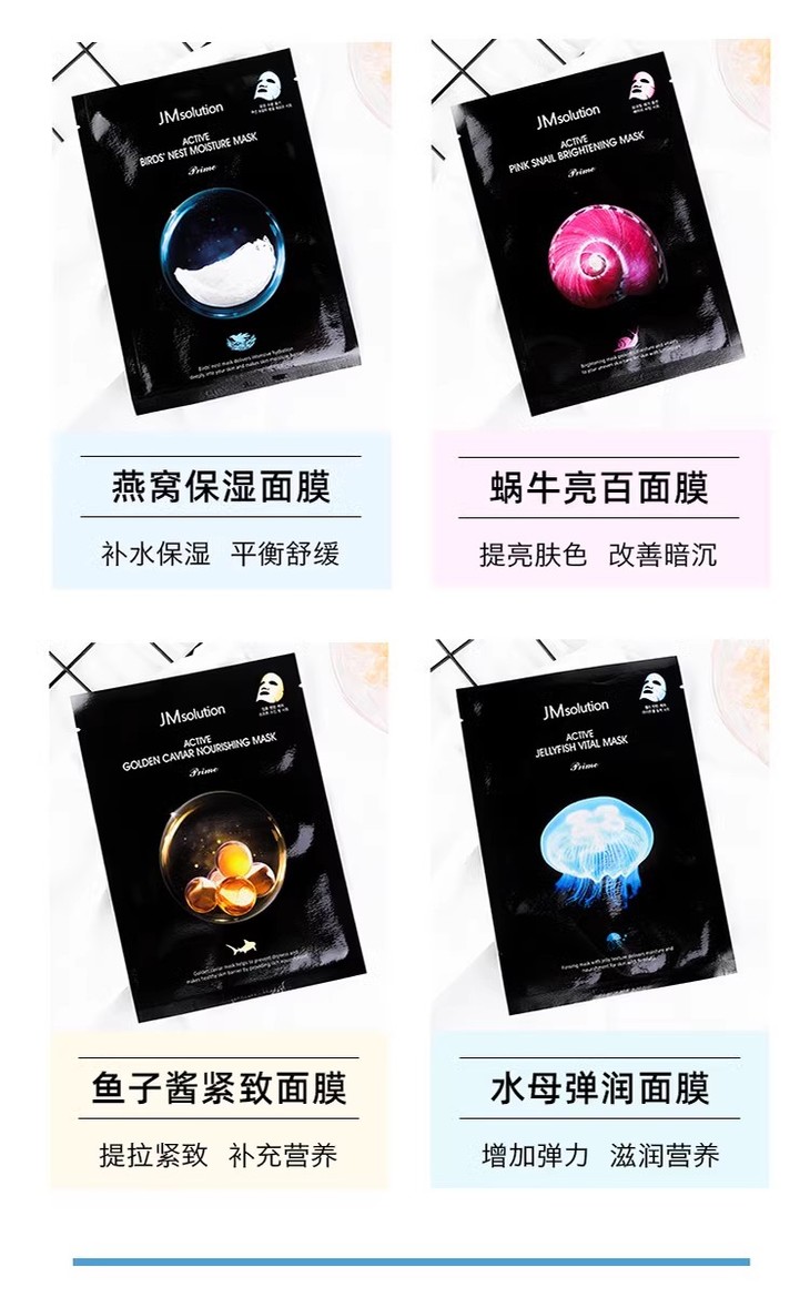 韩国JM爆款面膜四件组合装【燕窝+蜗牛+水母+鱼子酱】30ml*10*4盒【香港直邮】