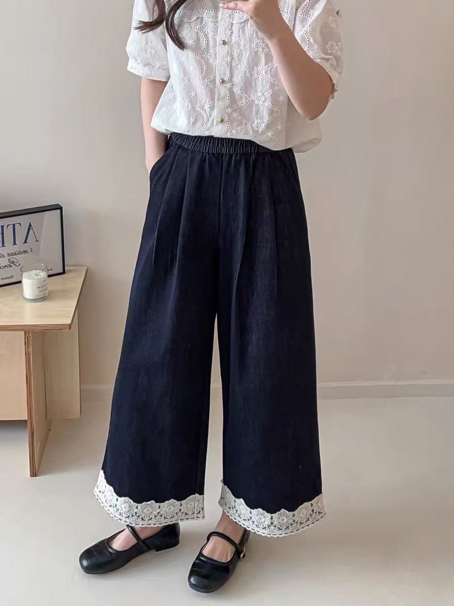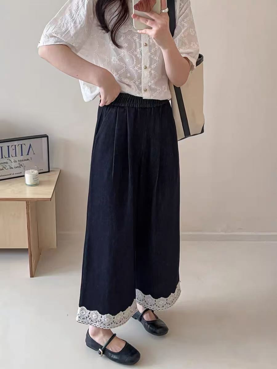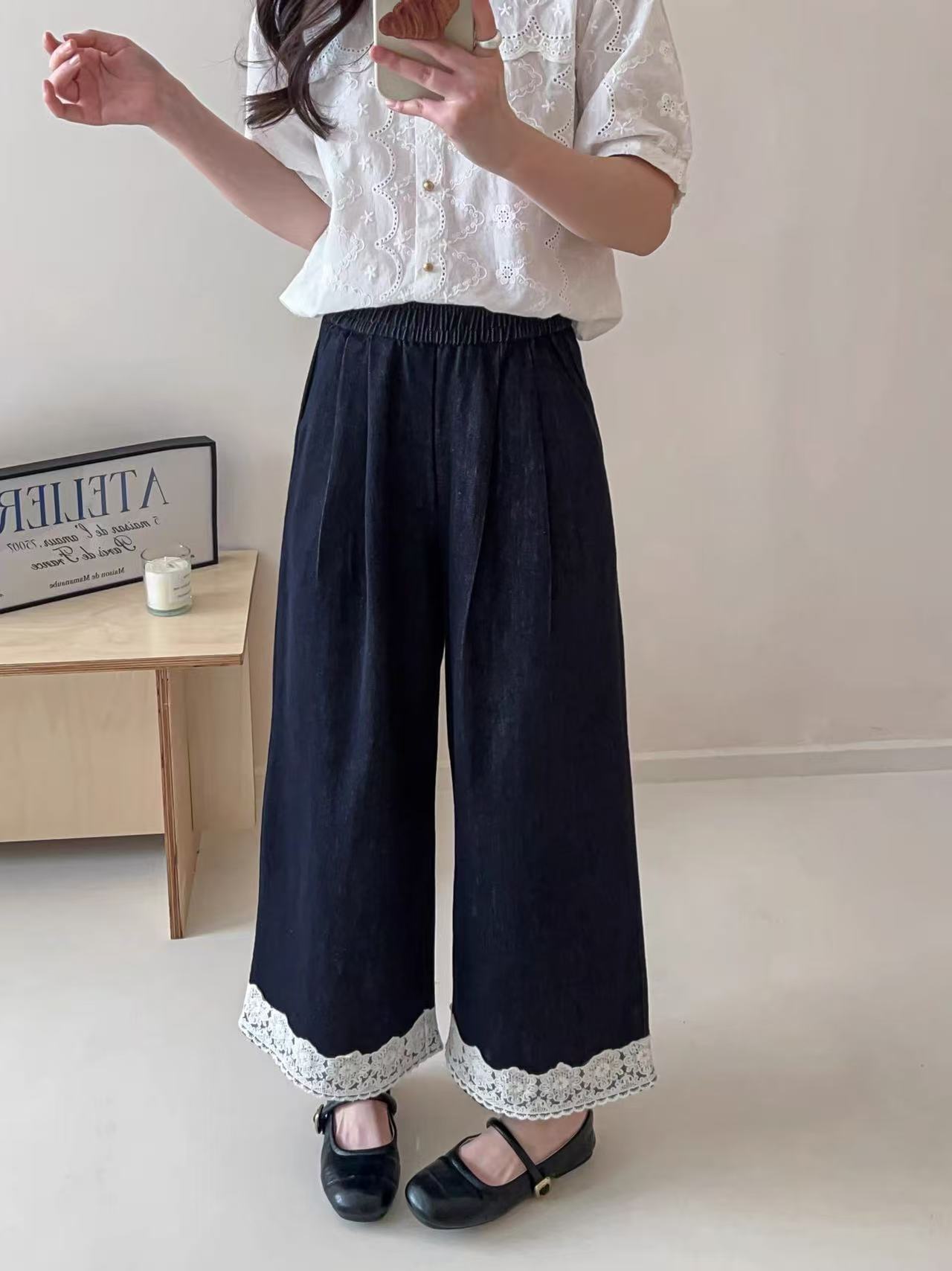 冰点价!仅限11.11!退货勿拍【爆款牛仔】2025秋季新品~韩系爆款蕾丝拼接牛仔裤-喜出