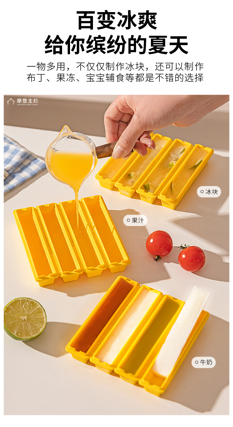 摩登主妇长条冰块模具家用食品级冰箱制冰盒威士忌冰格冻冰块神器