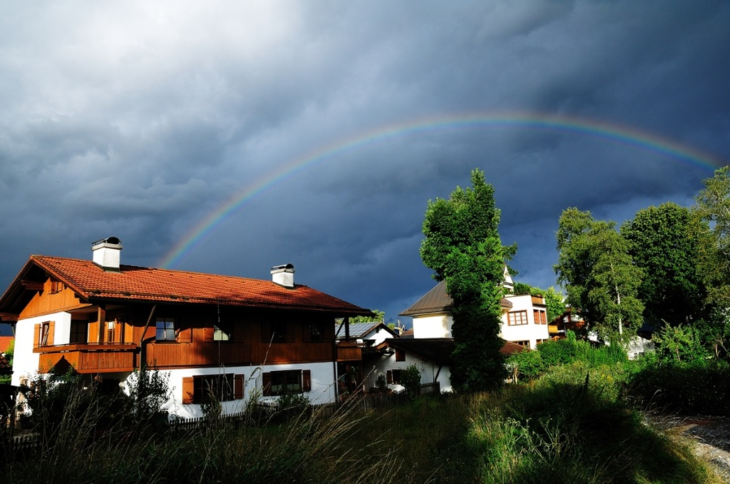 远处的山峰能看到阳光,近处的富森小镇却还是在阴影之下,富森的小镇的这些漂亮的房子,真是好看,想象一下自己要是在这里能拥有一套那该多好啊。