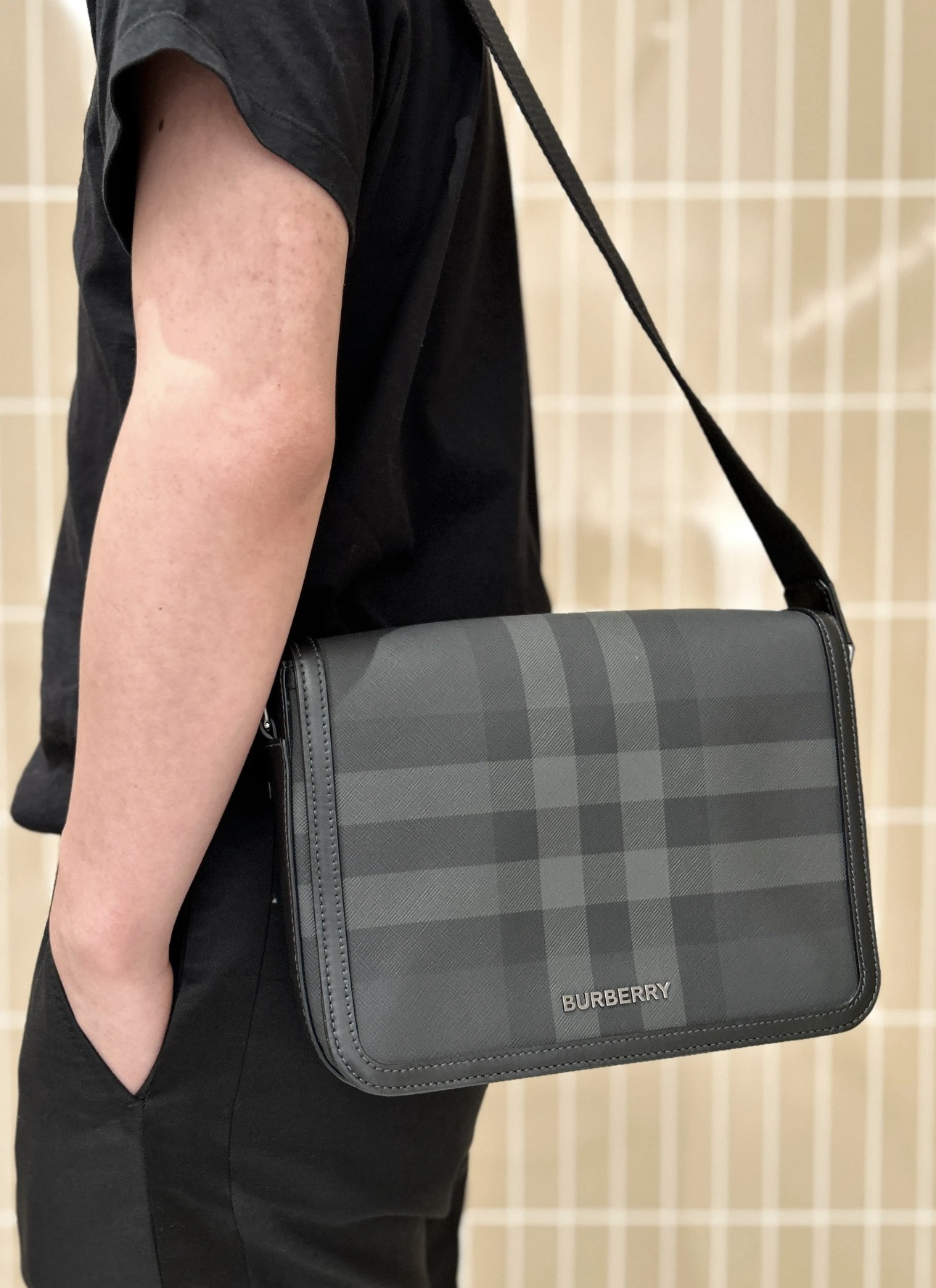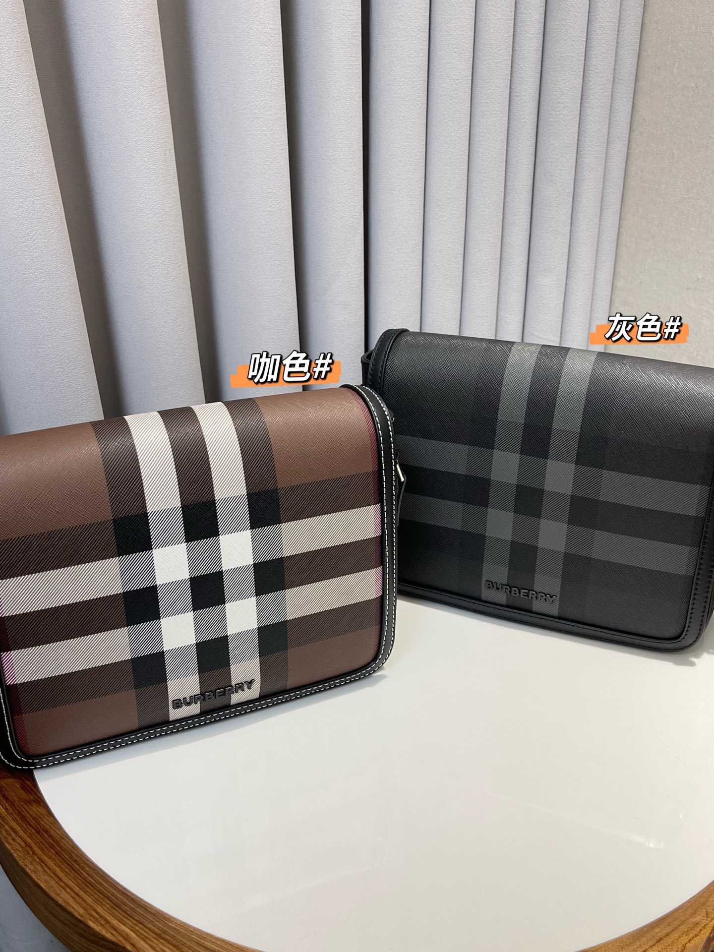 顺丰包邮 已入库 极致性价比 奥莱版本 Bur男士格纹牛皮斜纹单肩包~官网售价8300➕ 同步两色 无吊牌 留洗标 推荐自留 送人也不影响!