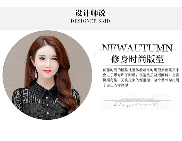 QYM J21163-Y蕾丝花边领连衣裙拼结时尚提花裙A字裙 商品图2