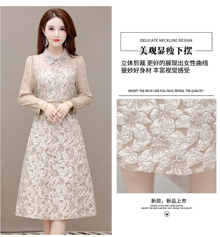 QYM J21163-Y蕾丝花边领连衣裙拼结时尚提花裙A字裙 商品图3