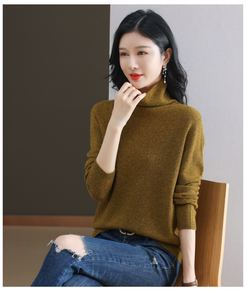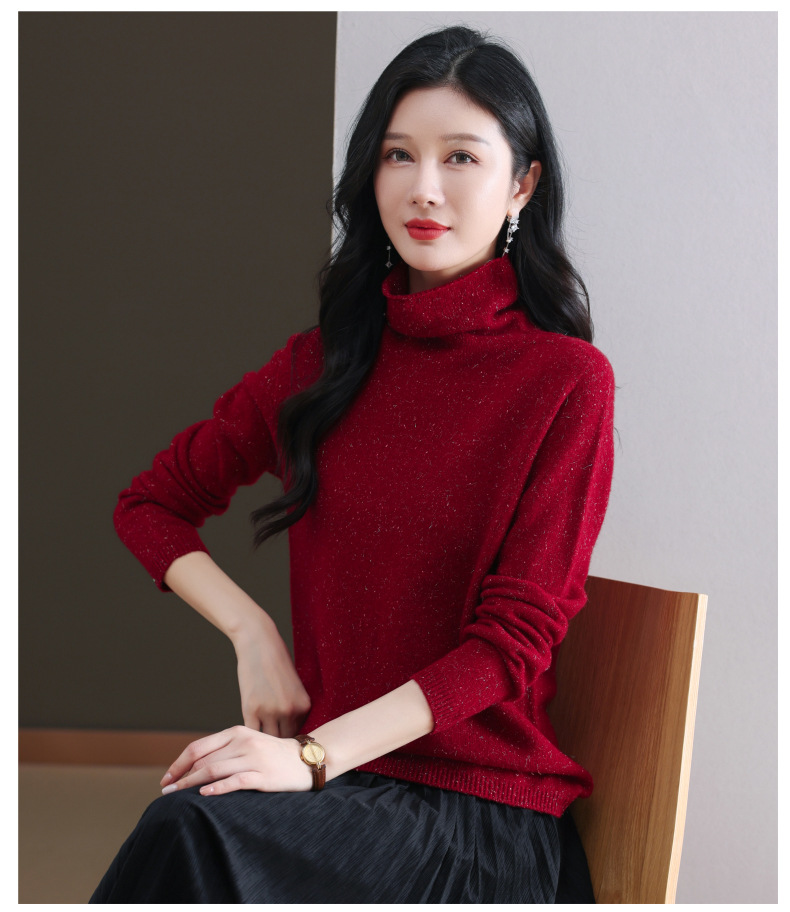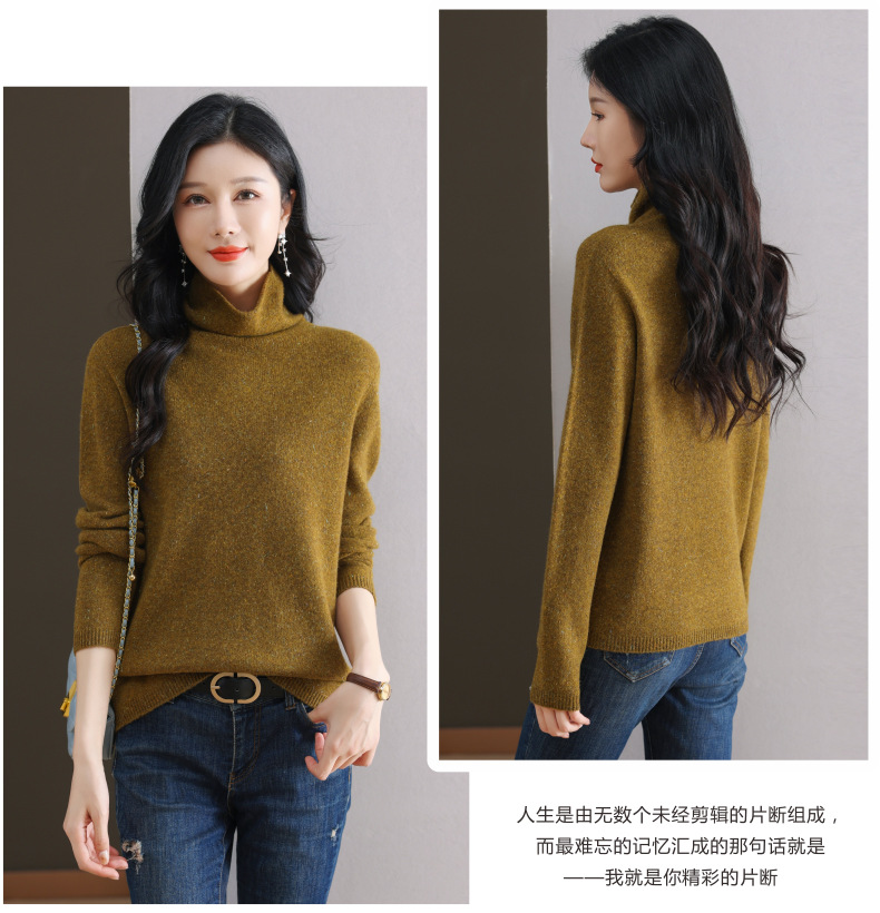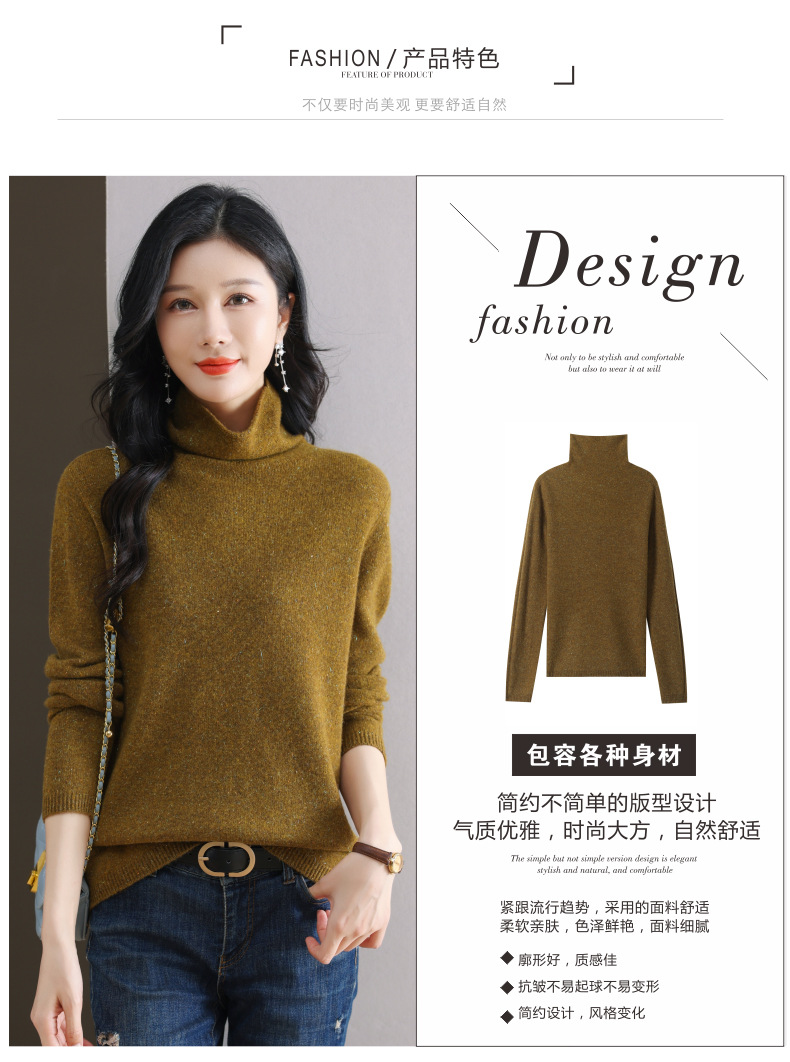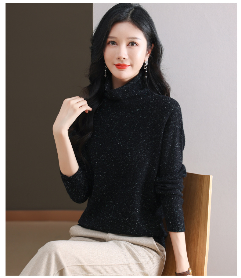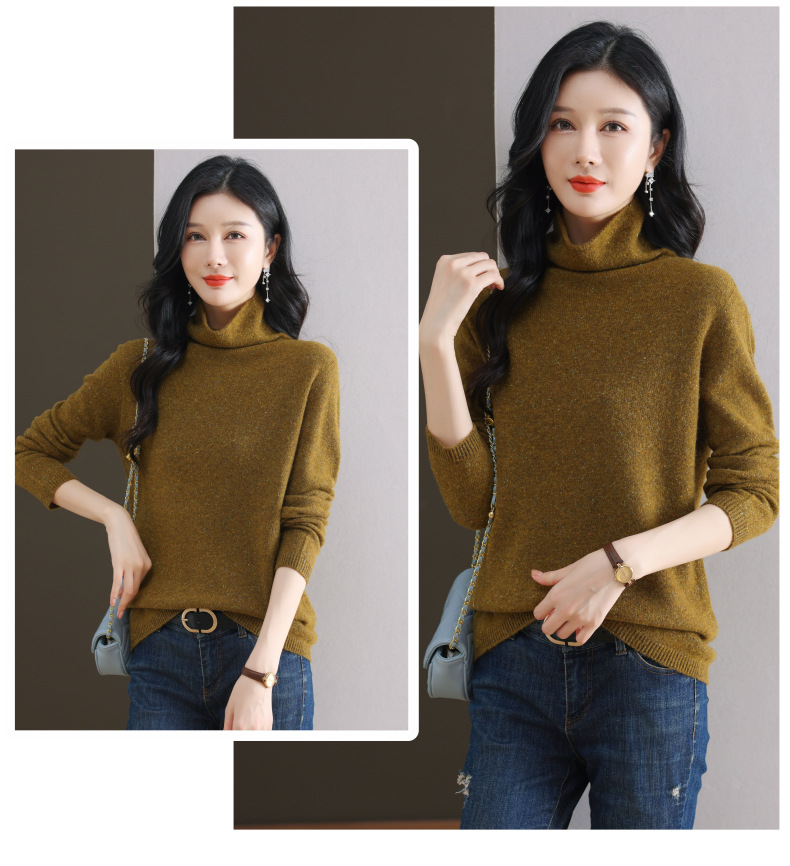 CC 3032软糯慵懒风宽松毛衣堆堆领亮丝羊毛衫针织衫