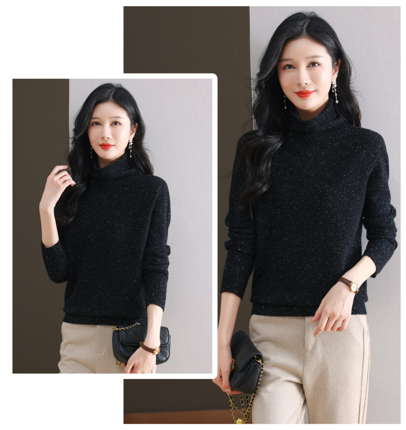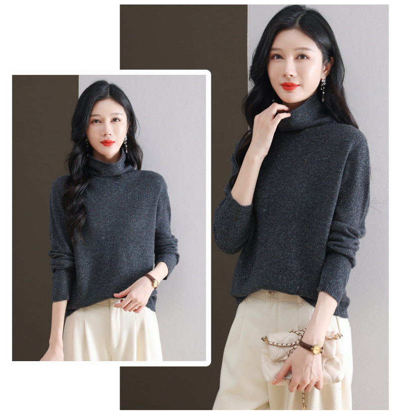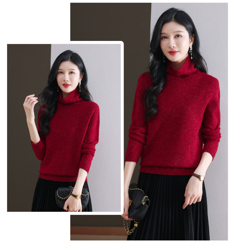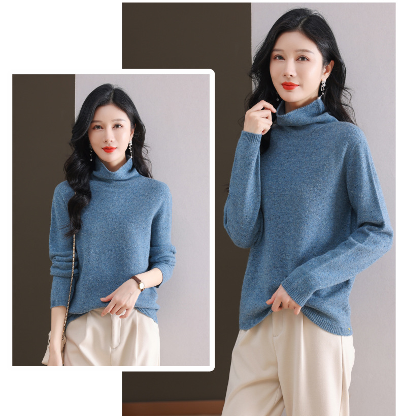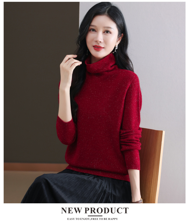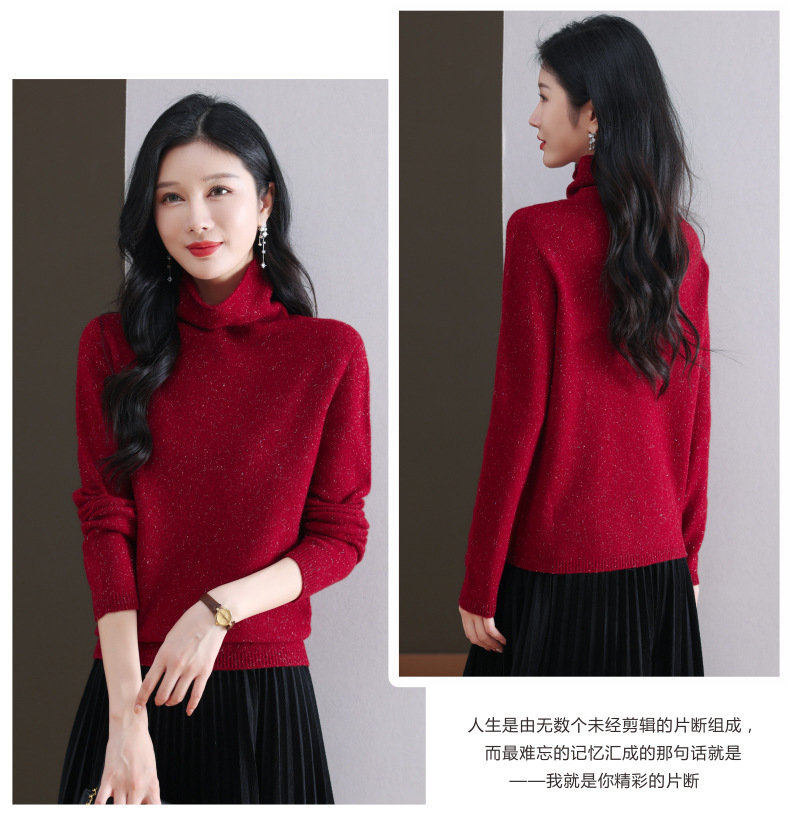 CC 3032软糯慵懒风宽松毛衣堆堆领亮丝羊毛衫针织衫