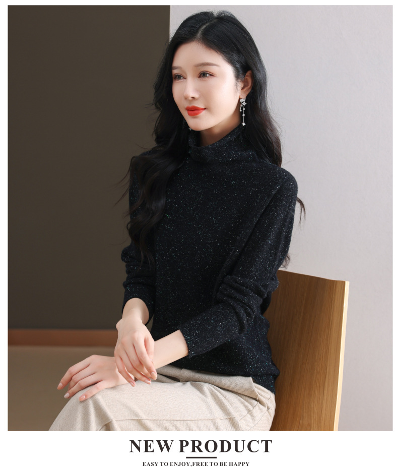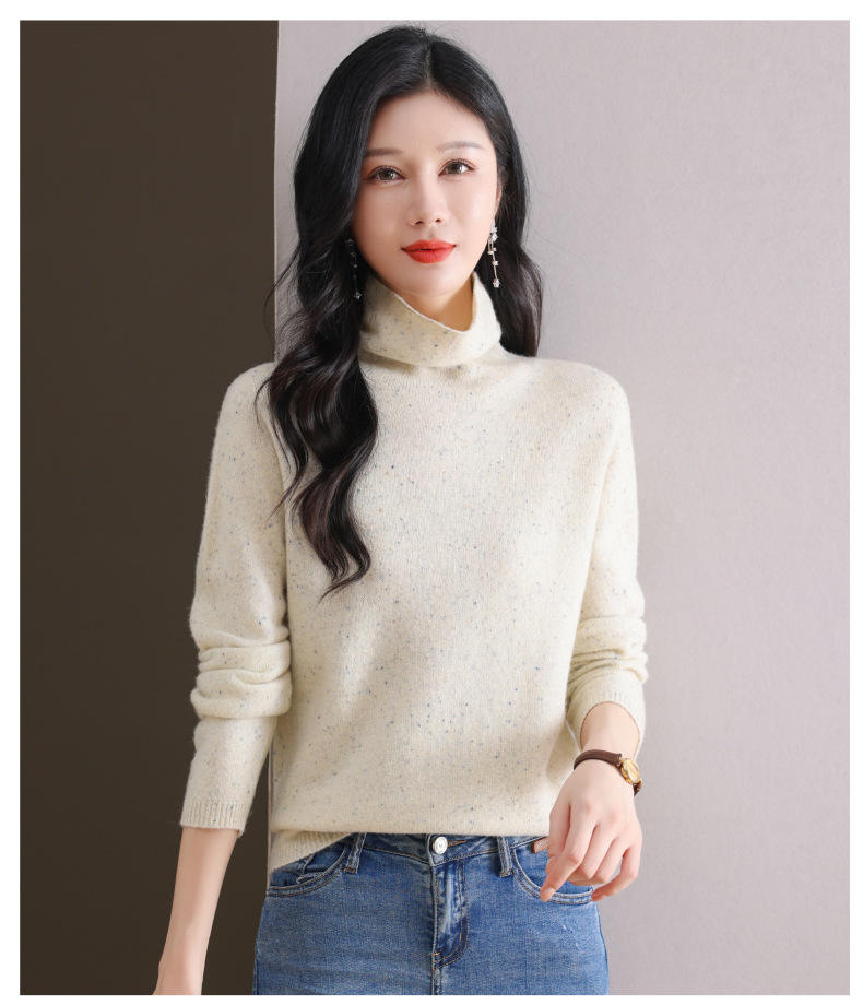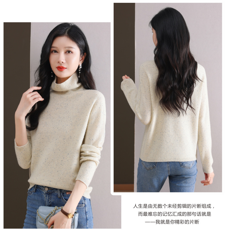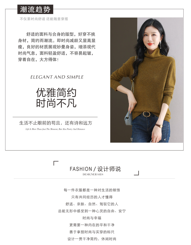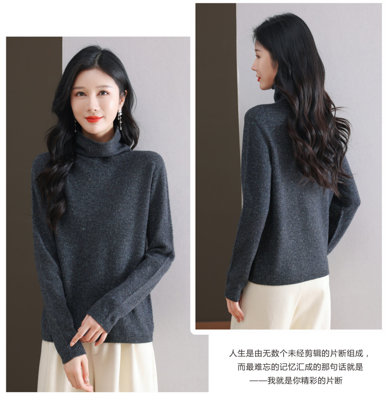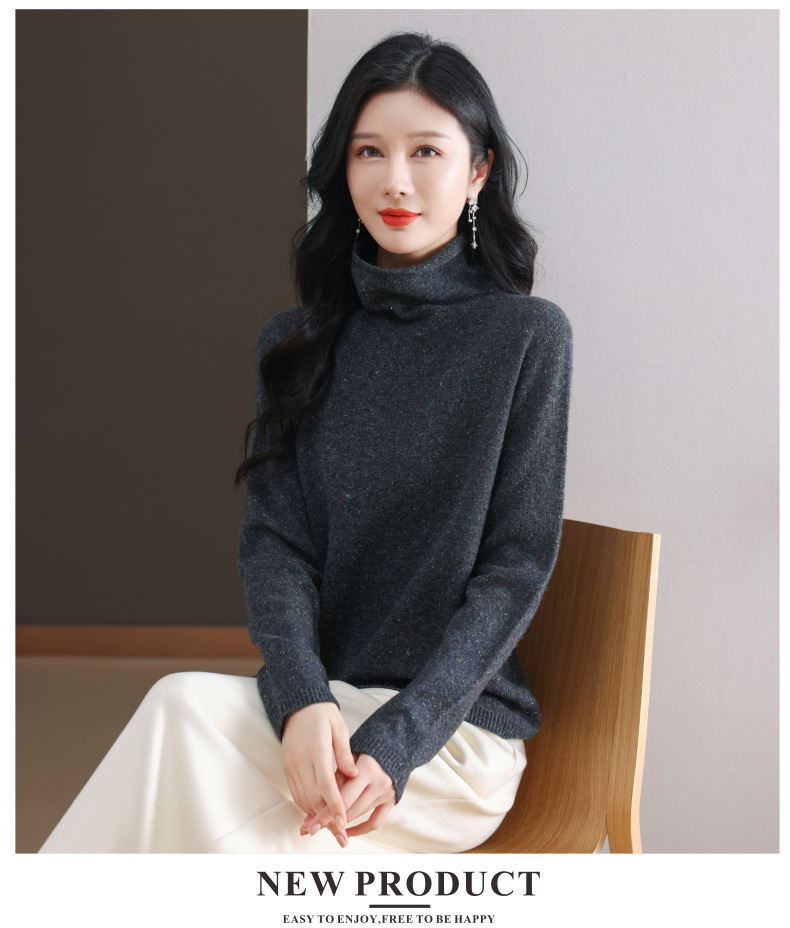 CC 3032软糯慵懒风宽松毛衣堆堆领亮丝羊毛衫针织衫