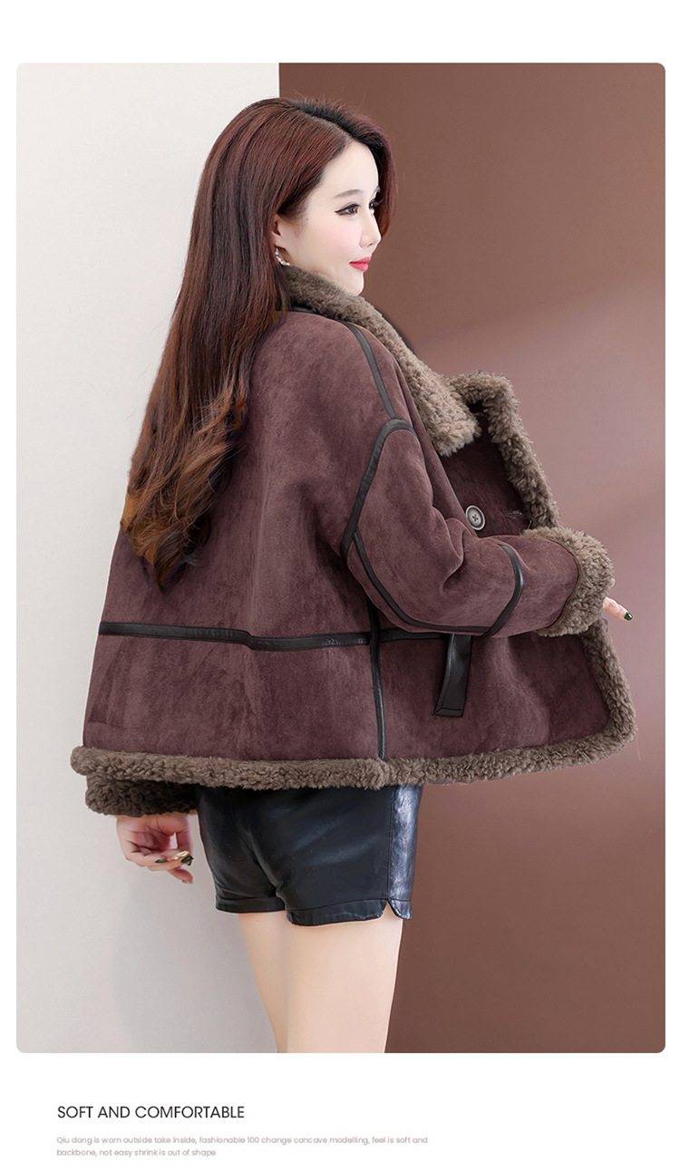 QYM 25XB525-Y时尚皮毛一体外套厚款保暖休闲短款气质优雅上衣 商品图2