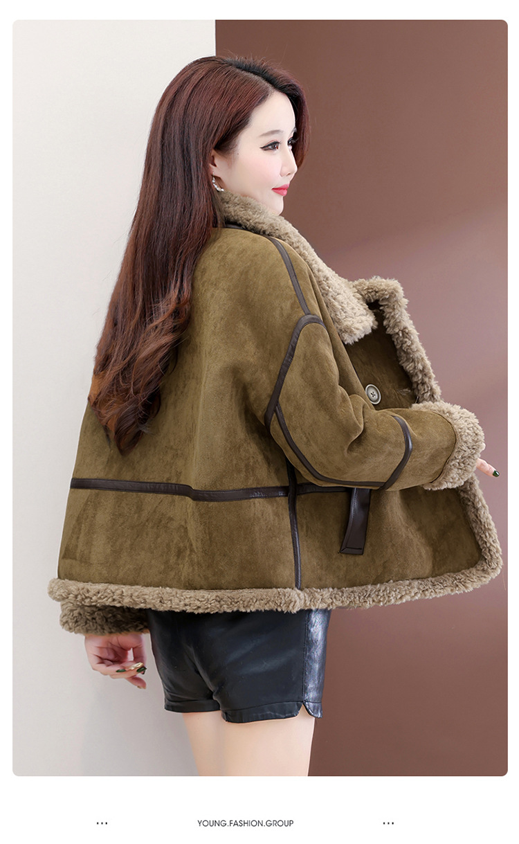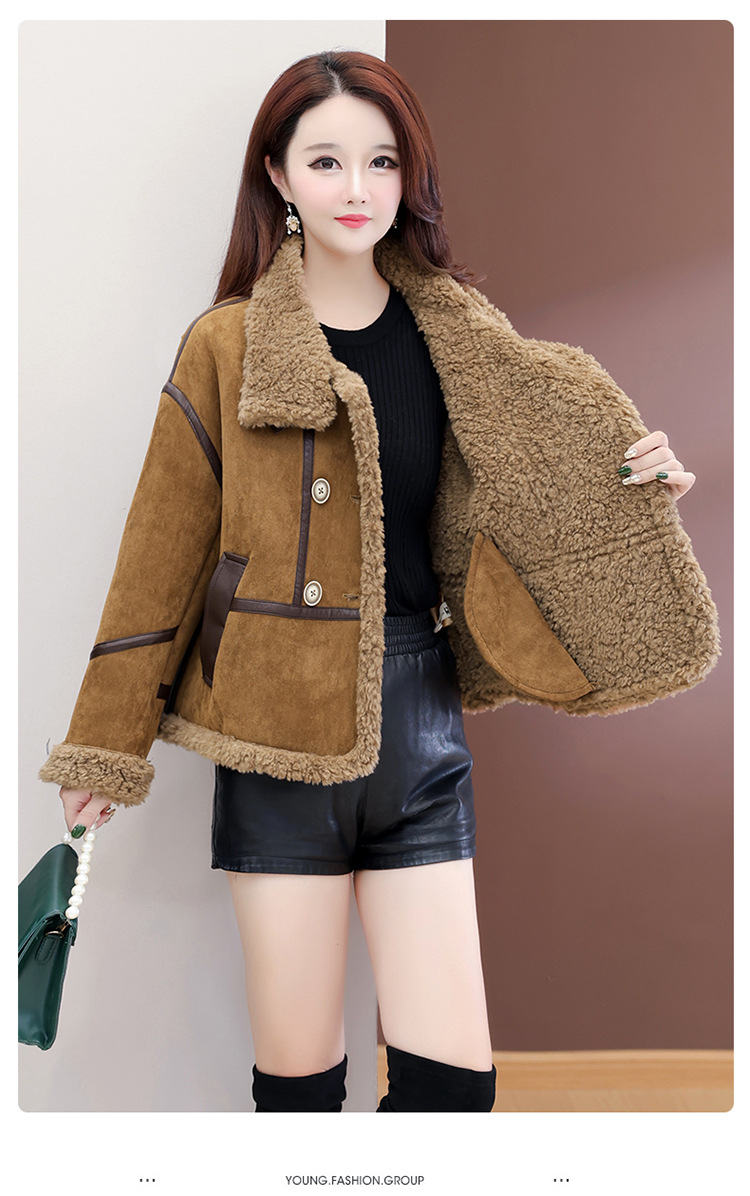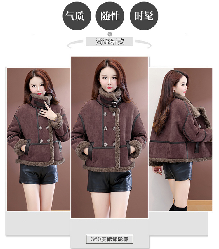 QYM 25XB525-Y时尚皮毛一体外套厚款保暖休闲短款气质优雅上衣 商品图3