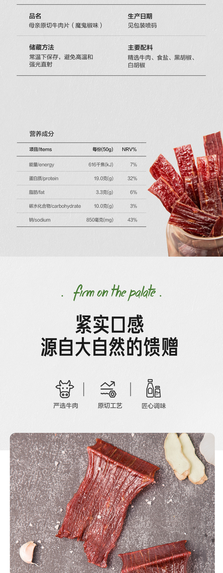 【吃好早餐】母亲原切牛肉片50g 原味/孜然味/黑胡椒味/魔鬼椒味 牛肉干肉脯