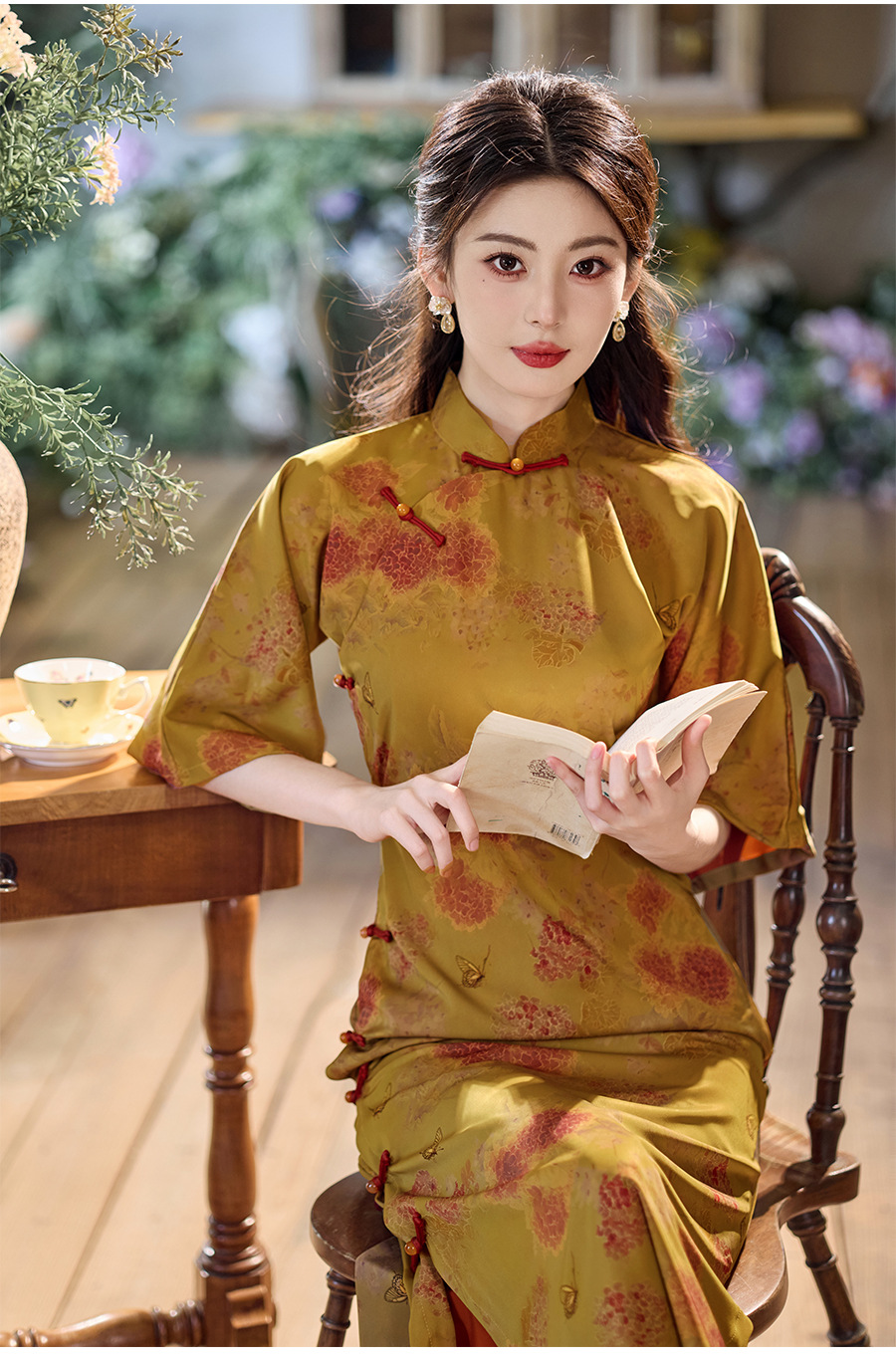LSB4049 新中式旗袍古法倒大袖国风秋款连衣裙老钱风高级气质复古 商品图3