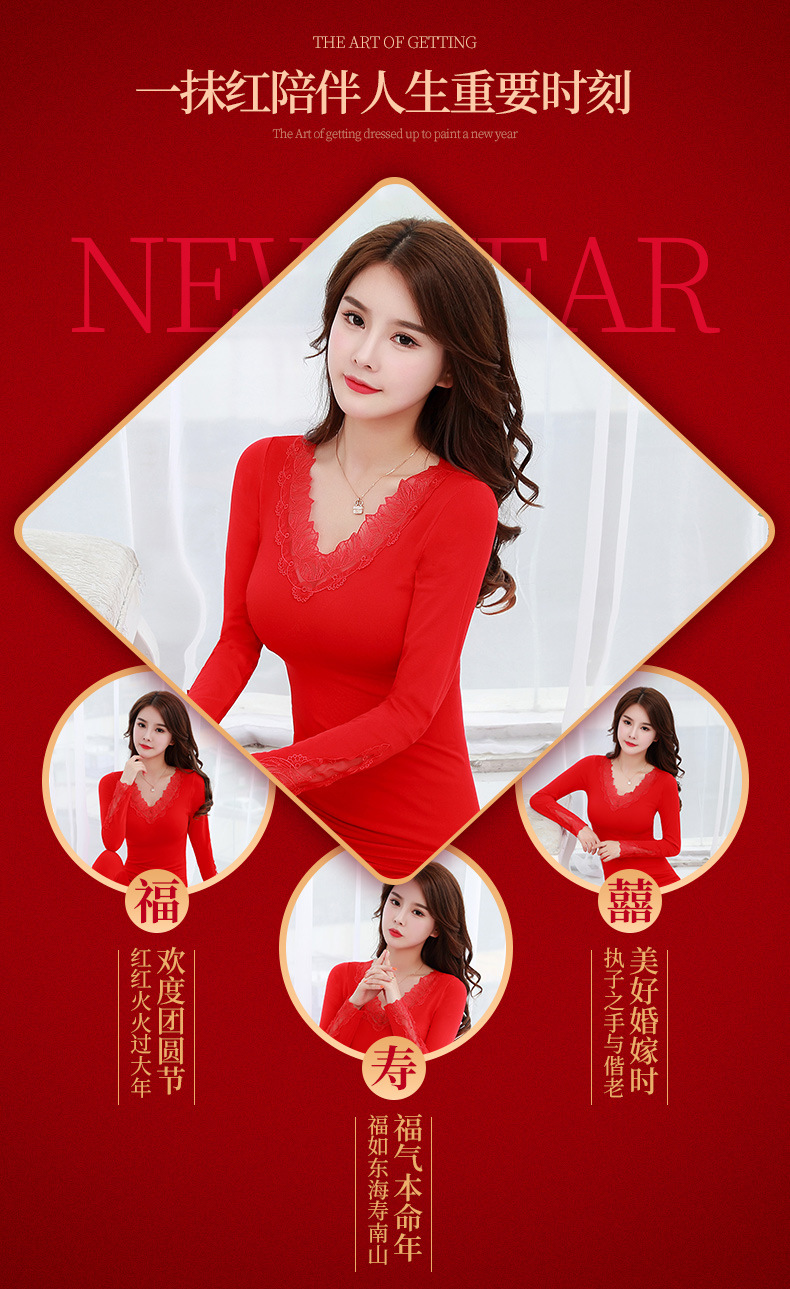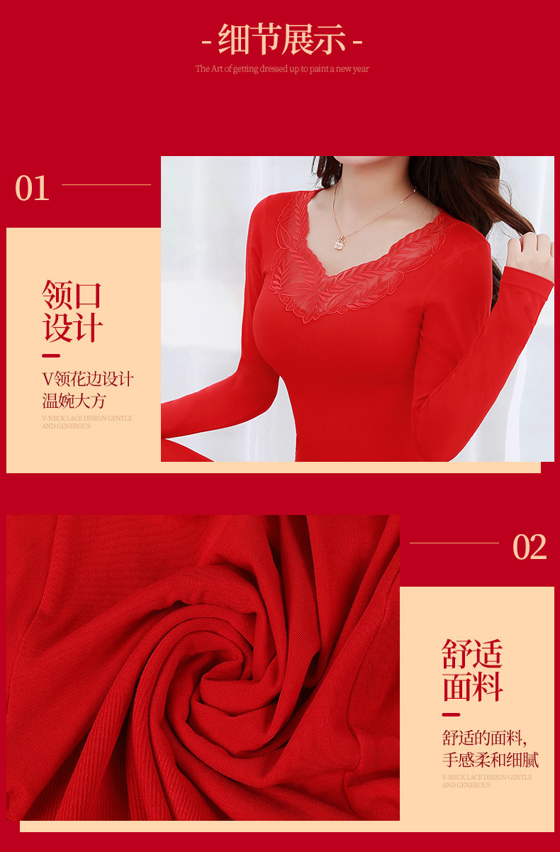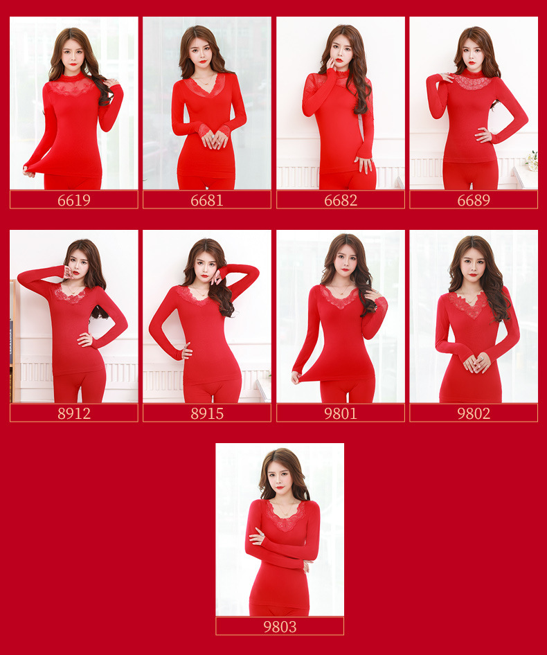 zz9905红色本命年内衣套装女士蛇年秋衣秋裤保暖棉毛衫新娘结婚