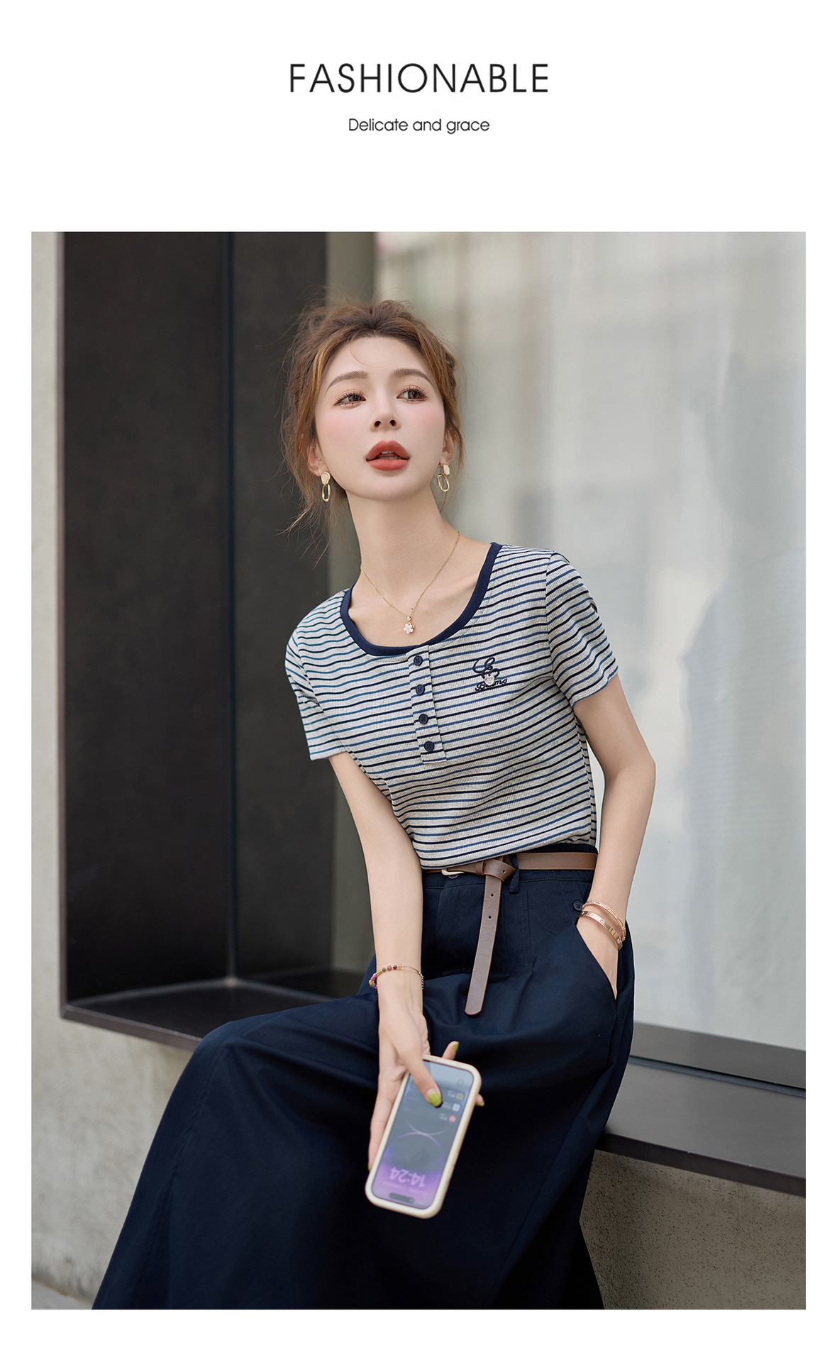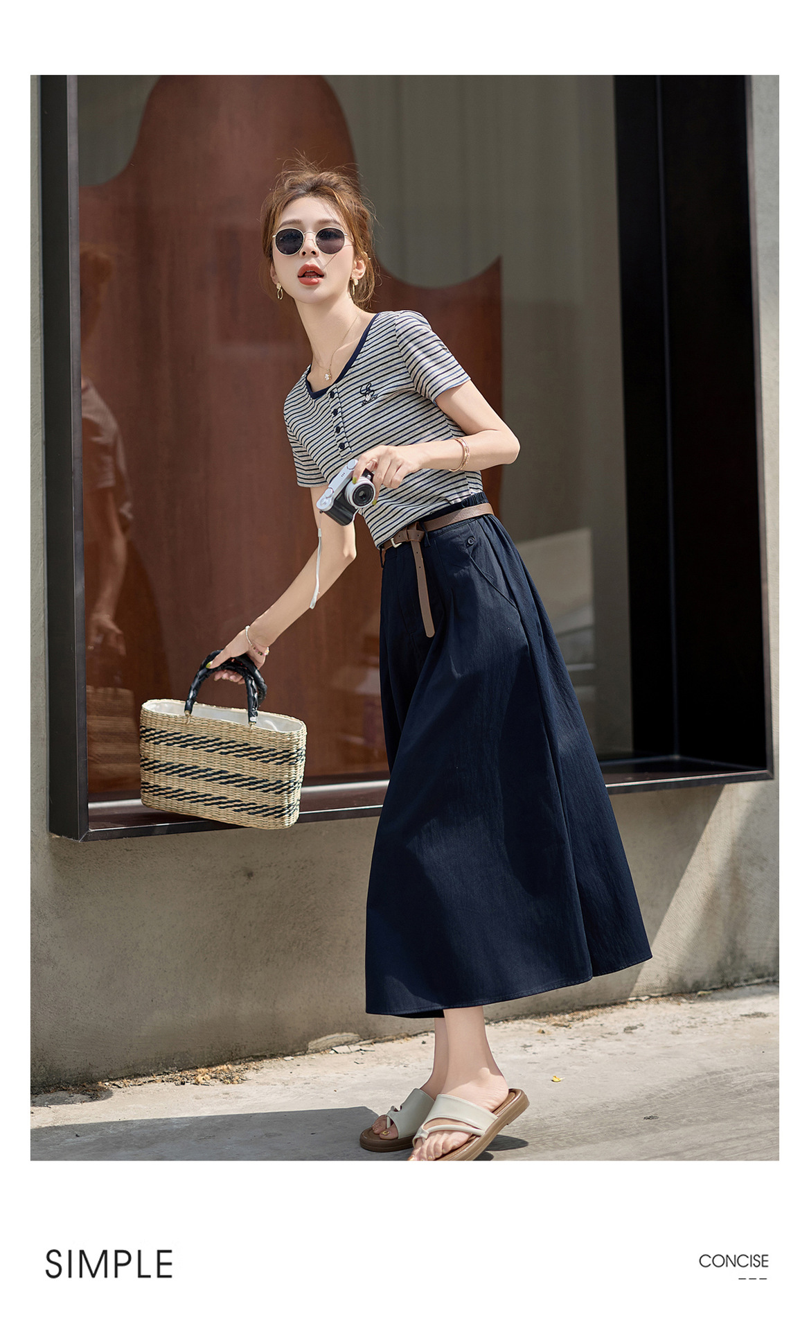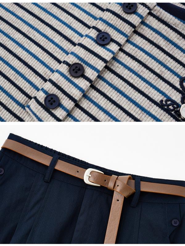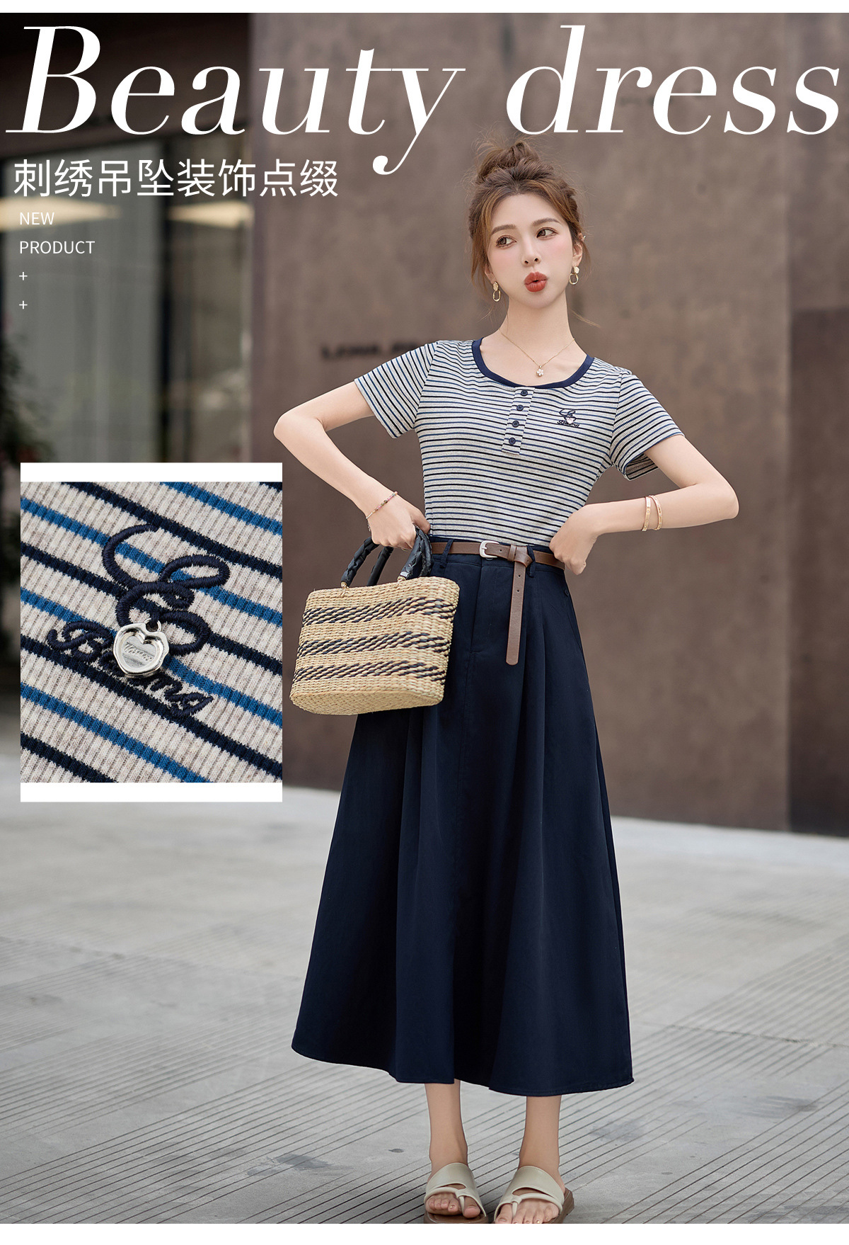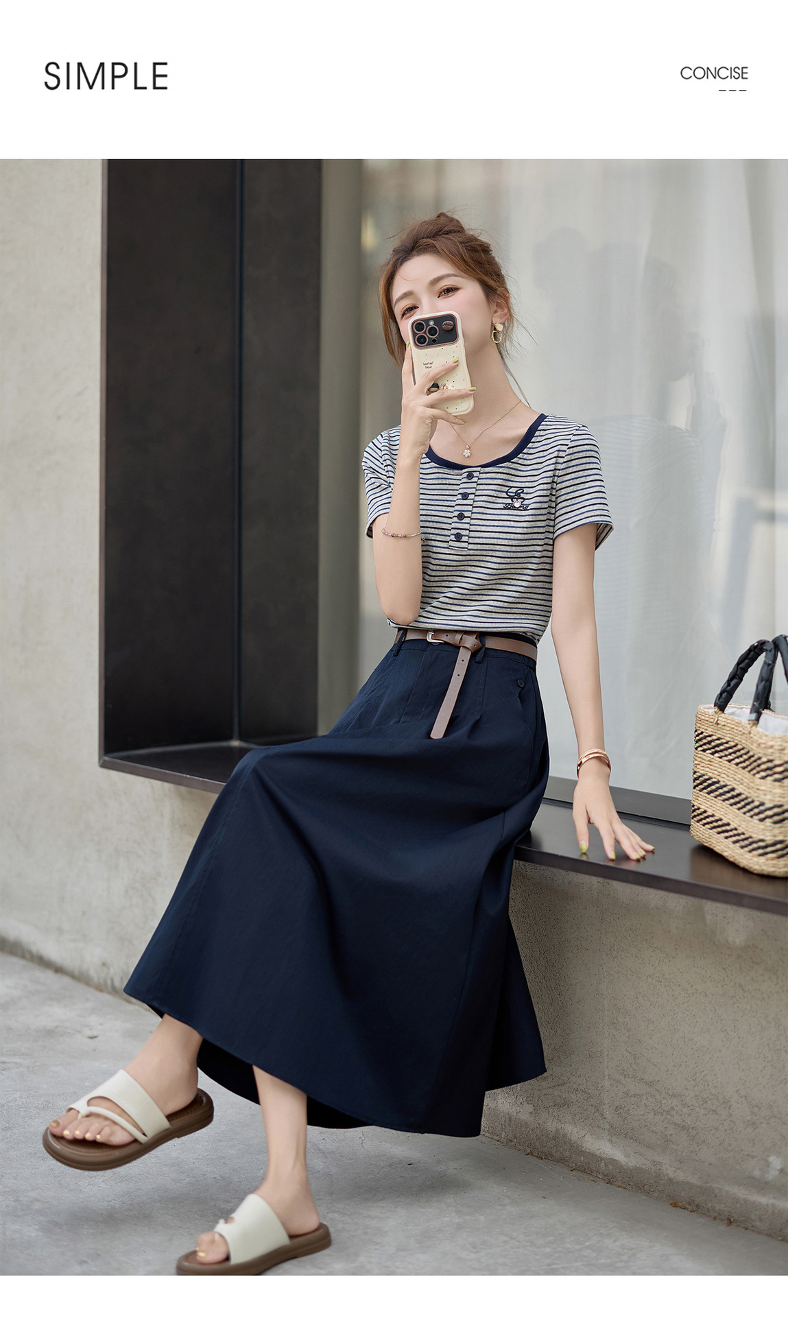 FY2587时尚休闲套装女2025夏季新款超火一整套条纹T恤休闲半身裙两件套