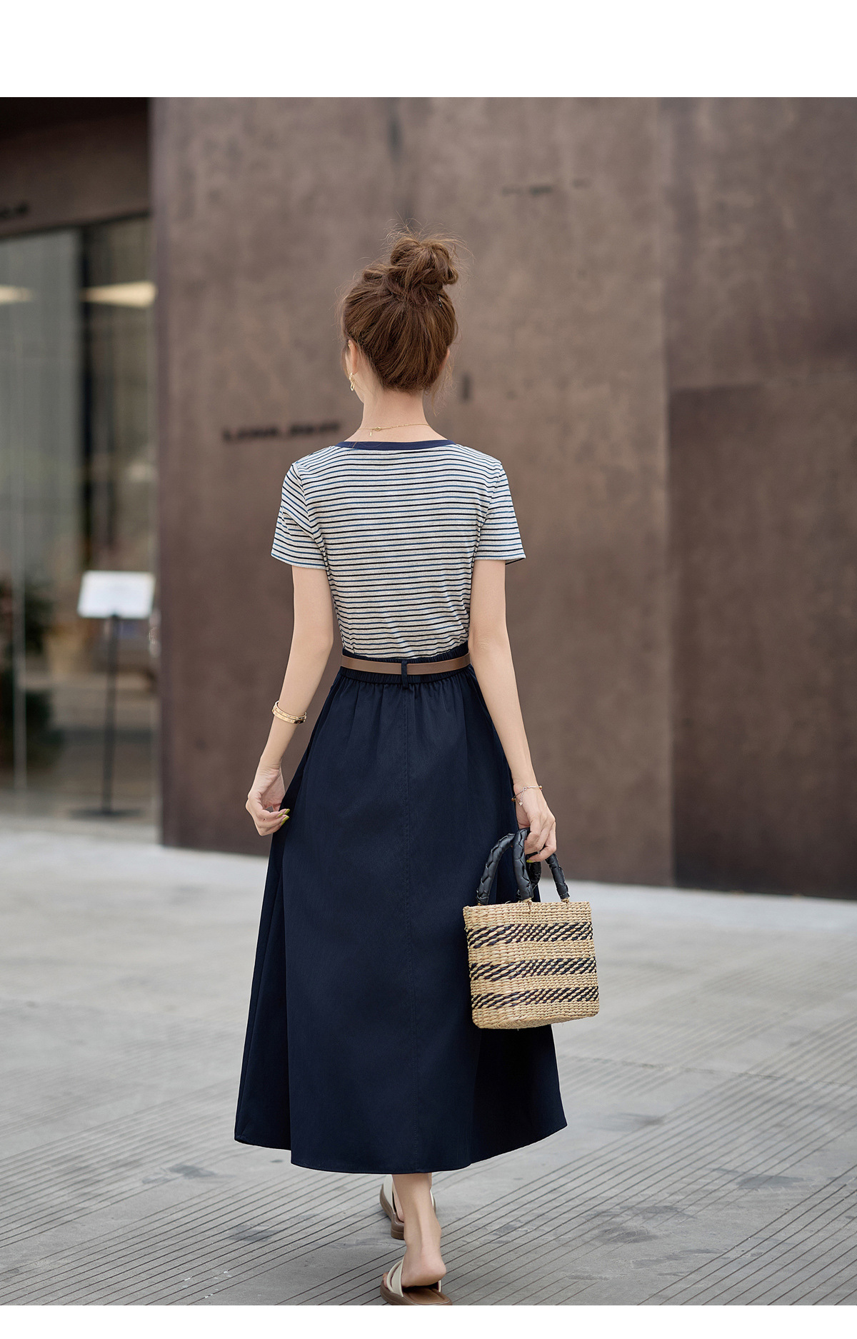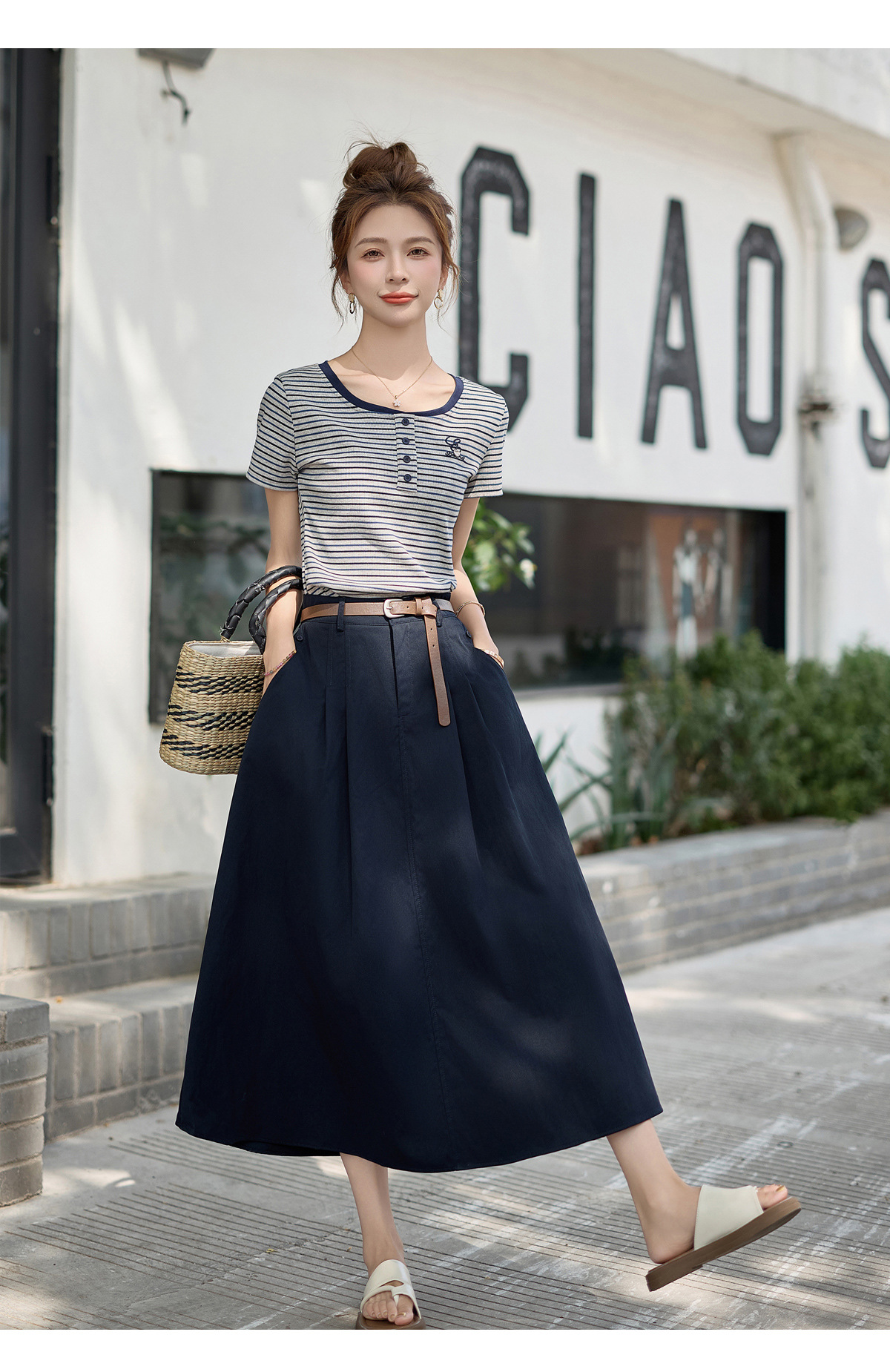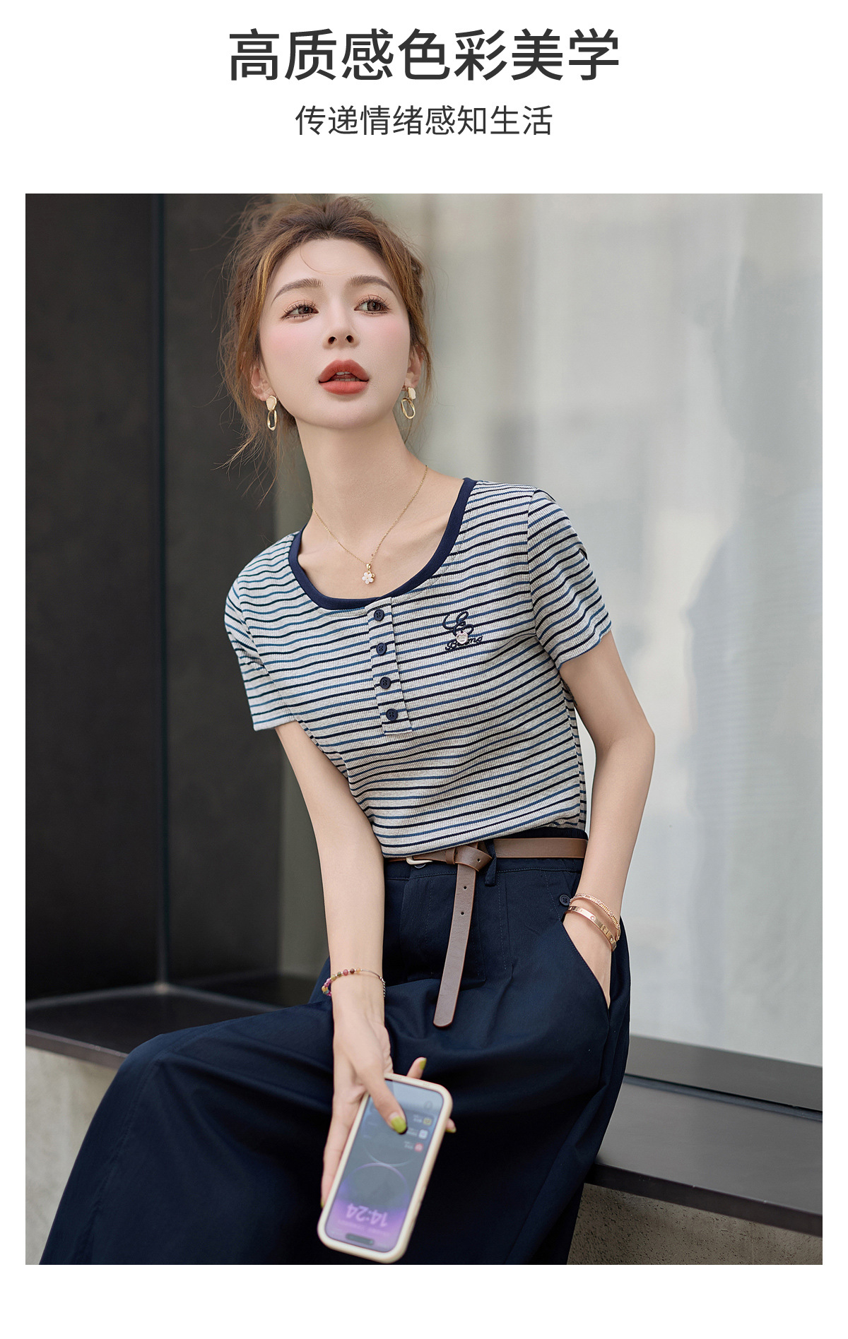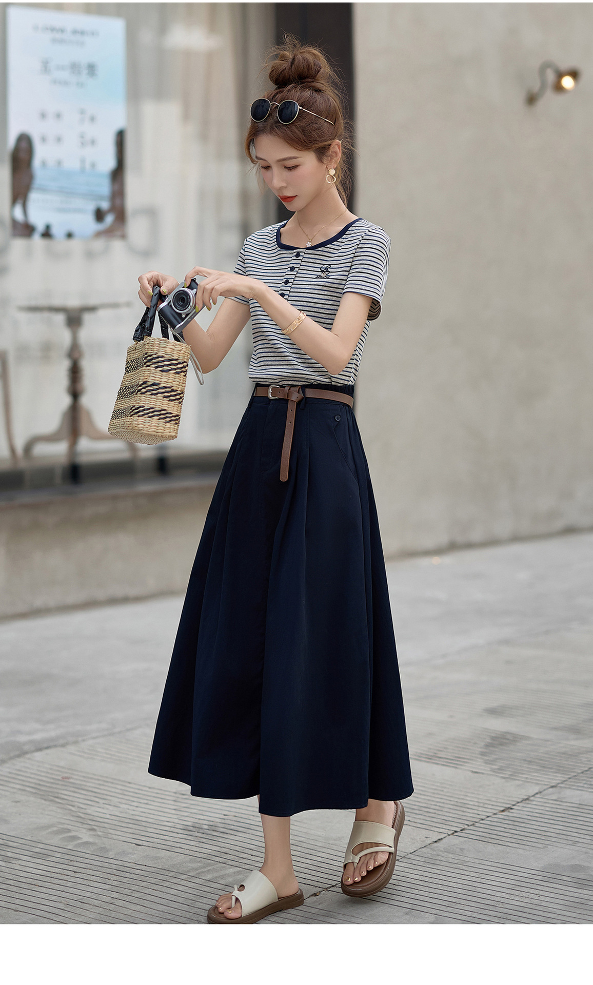 FY2587时尚休闲套装女2025夏季新款超火一整套条纹T恤休闲半身裙两件套