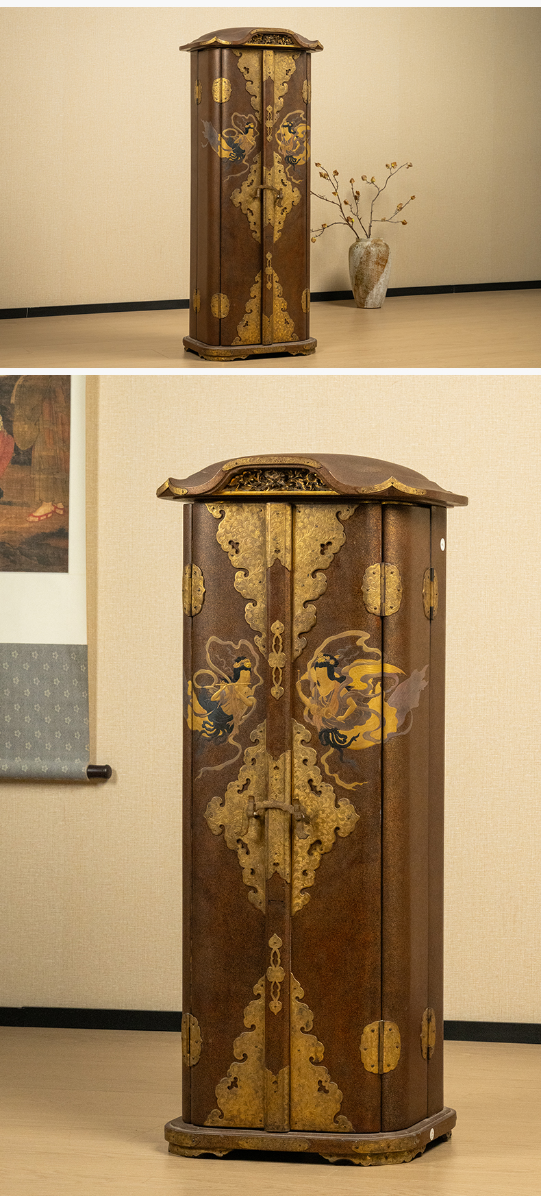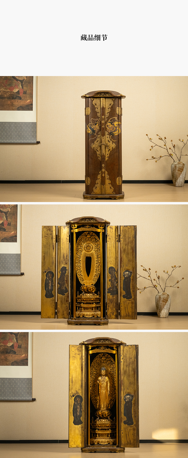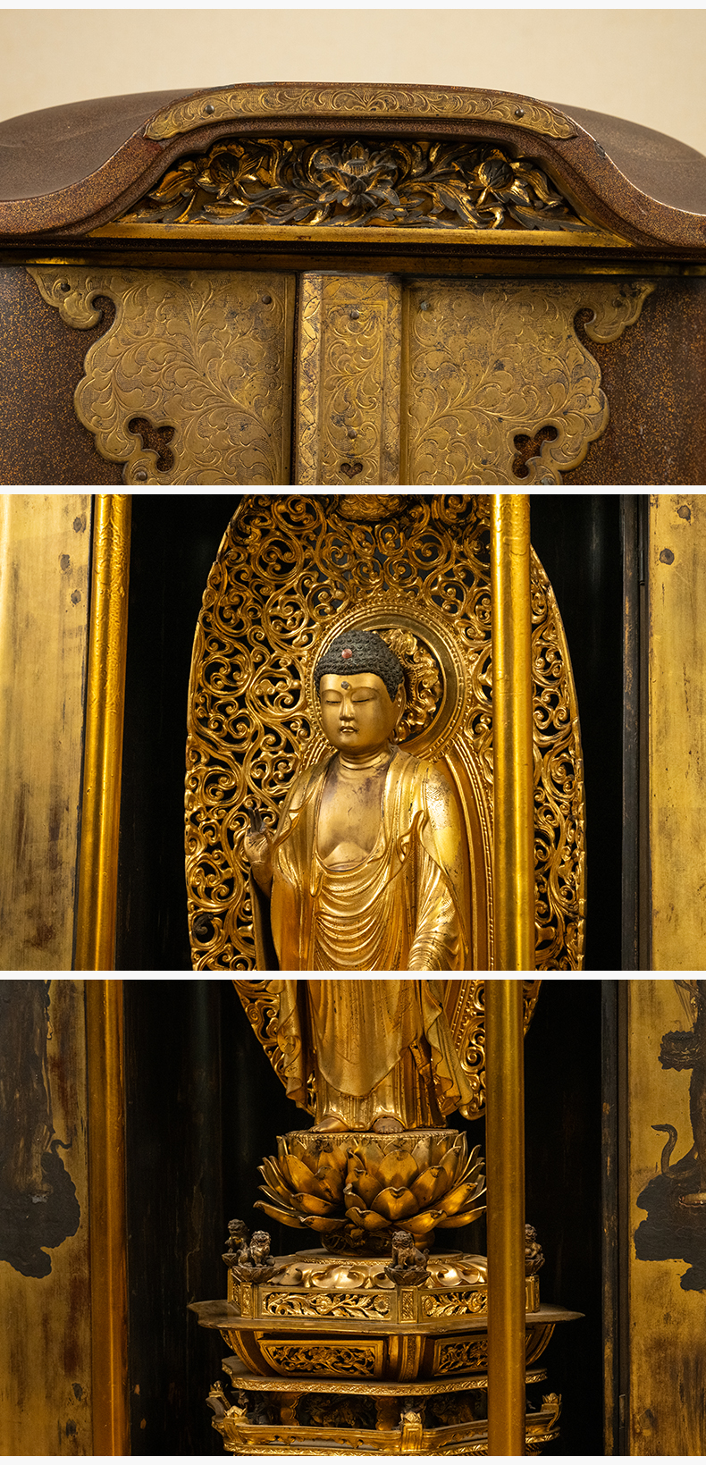 清 木雕金漆释迦摩尼背光佛造像及金漆彩绘飞天佛龛