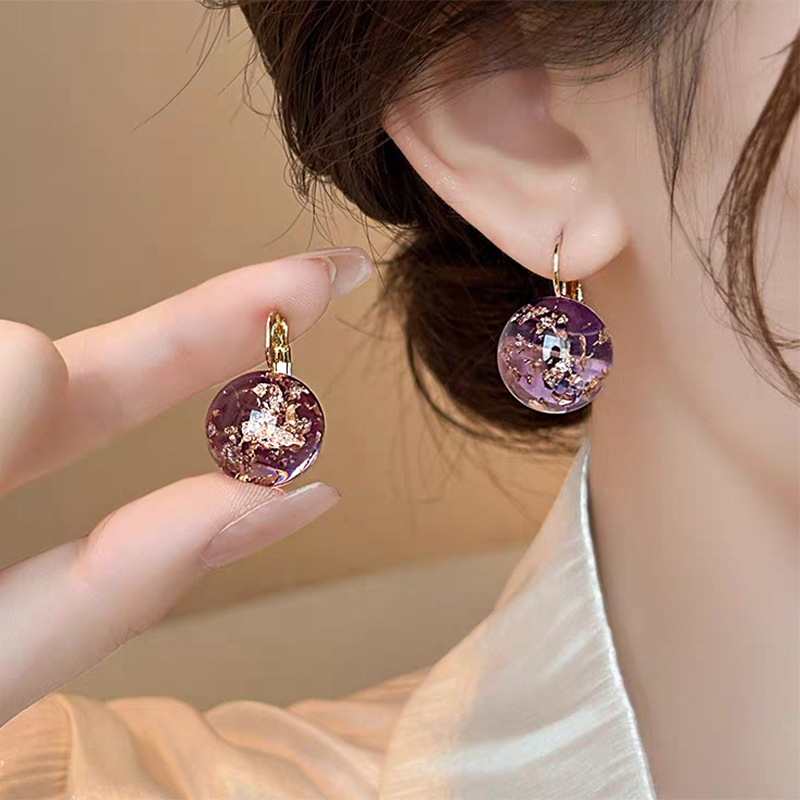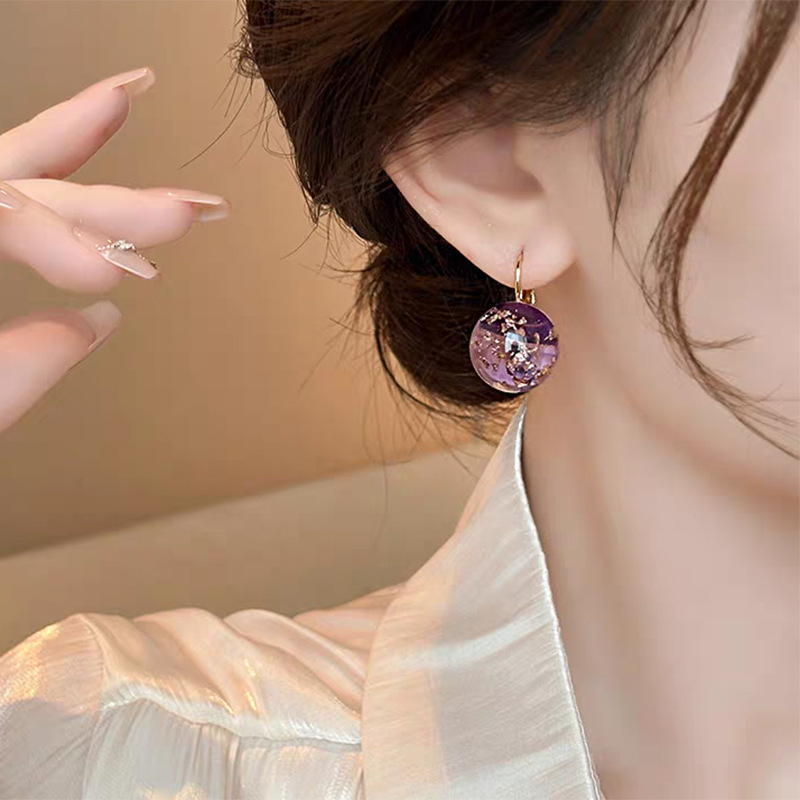 JU-D-0031 2024年新款紫色气质法式耳扣高级感简约耳环小众耳坠精致百搭耳饰