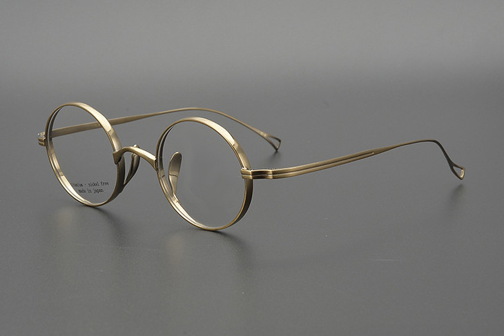 「民国大师内敛古铜小圆框眼镜框」 全钛厚边可配高度数眼镜 简约超轻男