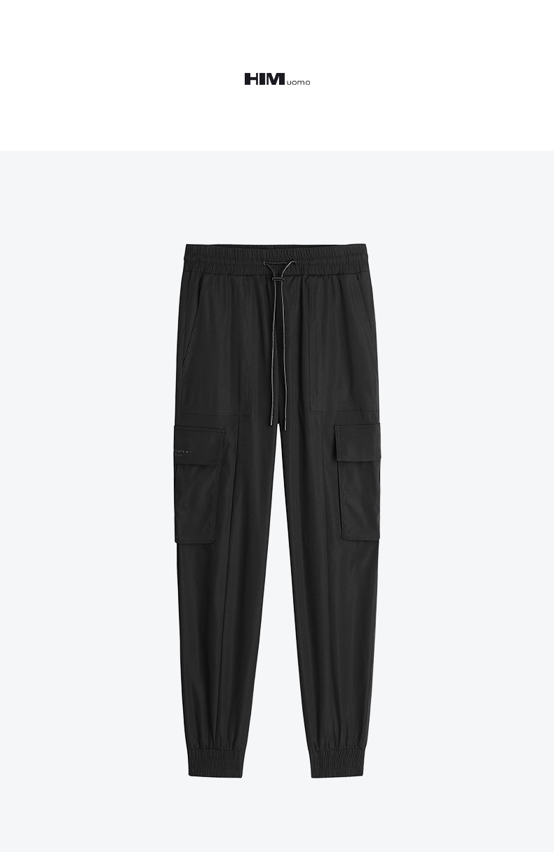 HIM漢崇 束脚裤男秋商场同款潮流工装黑色舒适透气运动休闲裤