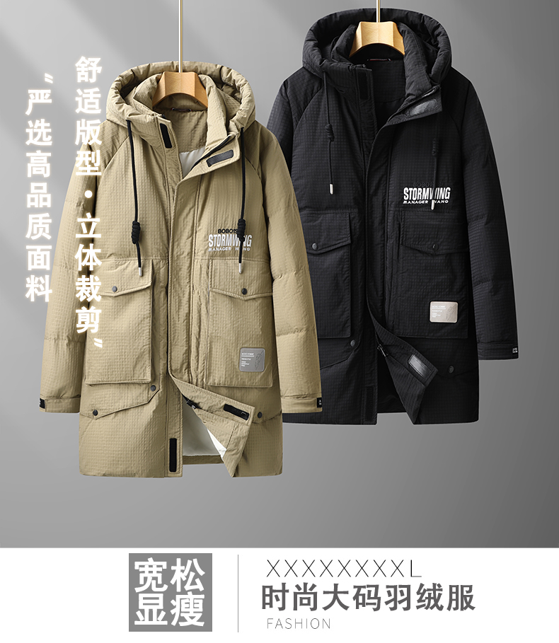 【特大码】【新款DPX】大依优型大码中长款潮款连帽羽绒服鸭绒外套休闲胖子大码男休闲宽松加肥加大上衣