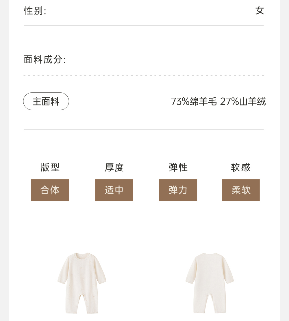 【高定系列】英氏儿童连体衣羊毛羊绒女童秋季爬服新款连身衣