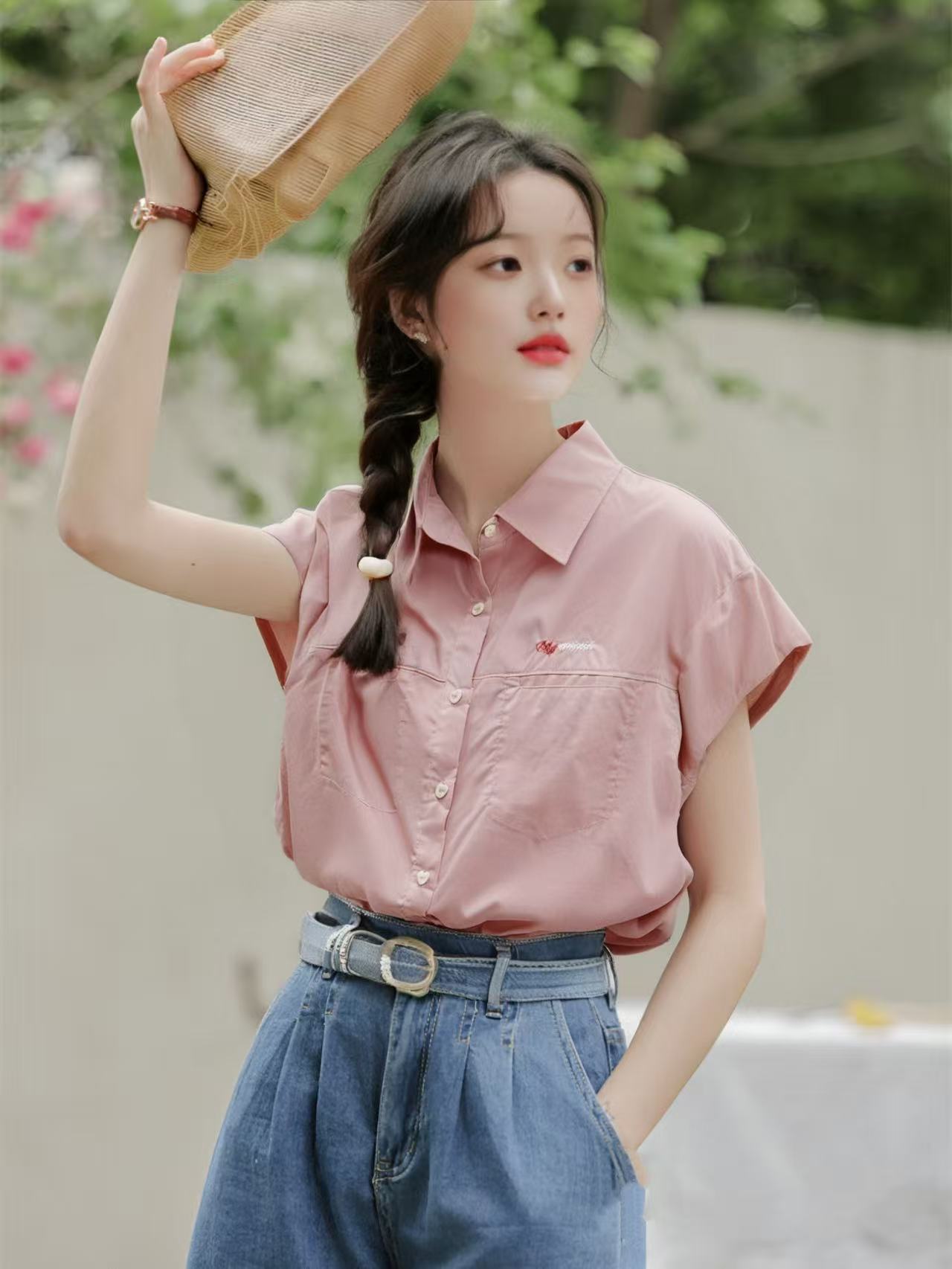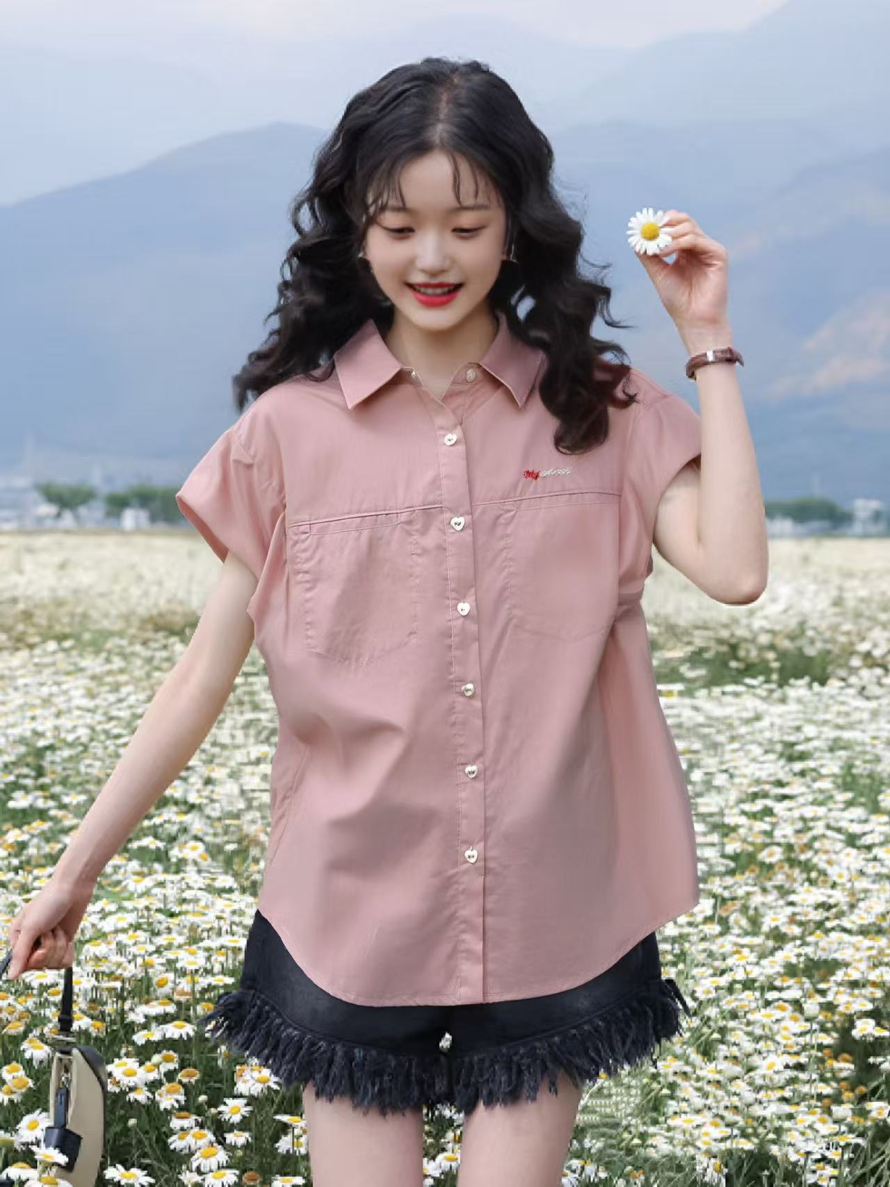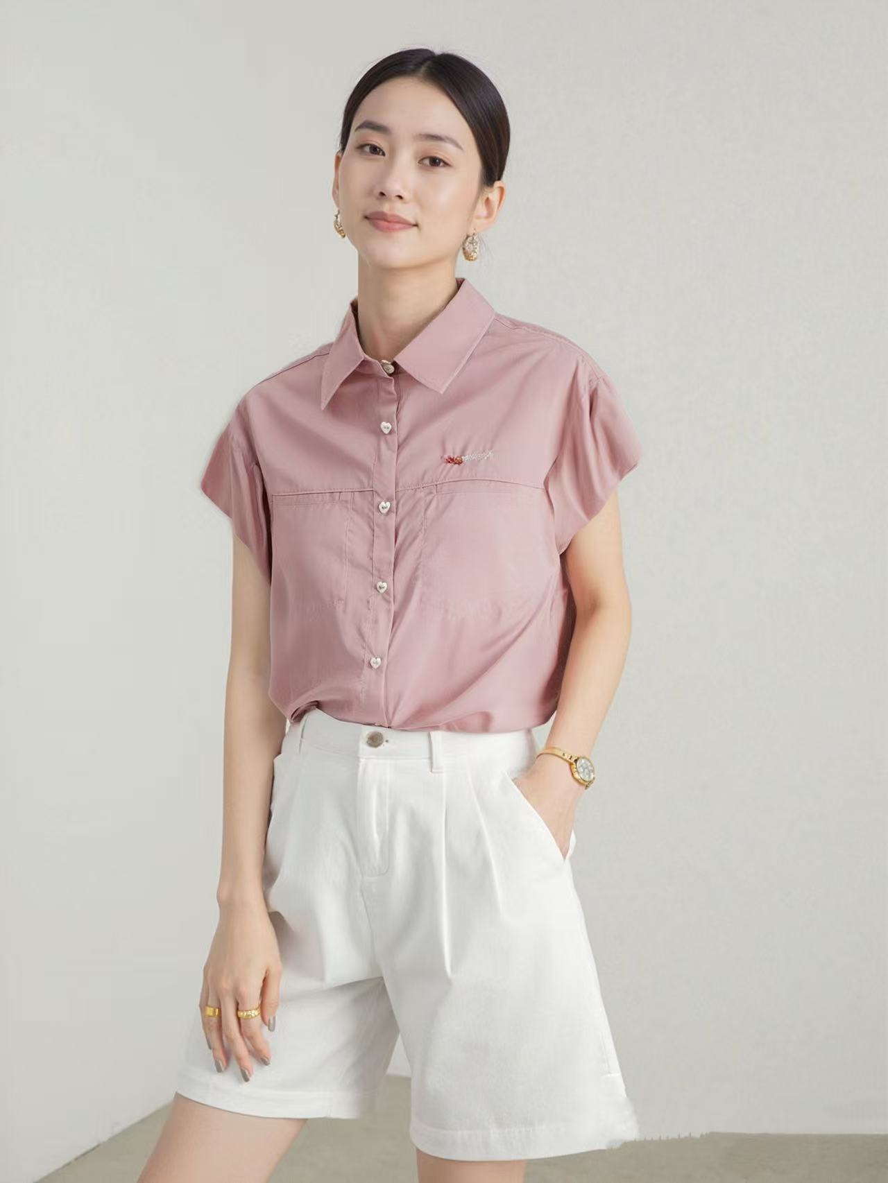 【时装系列】ME TOWN'S D5110宽松100%棉翻领短袖衬衫-喜出