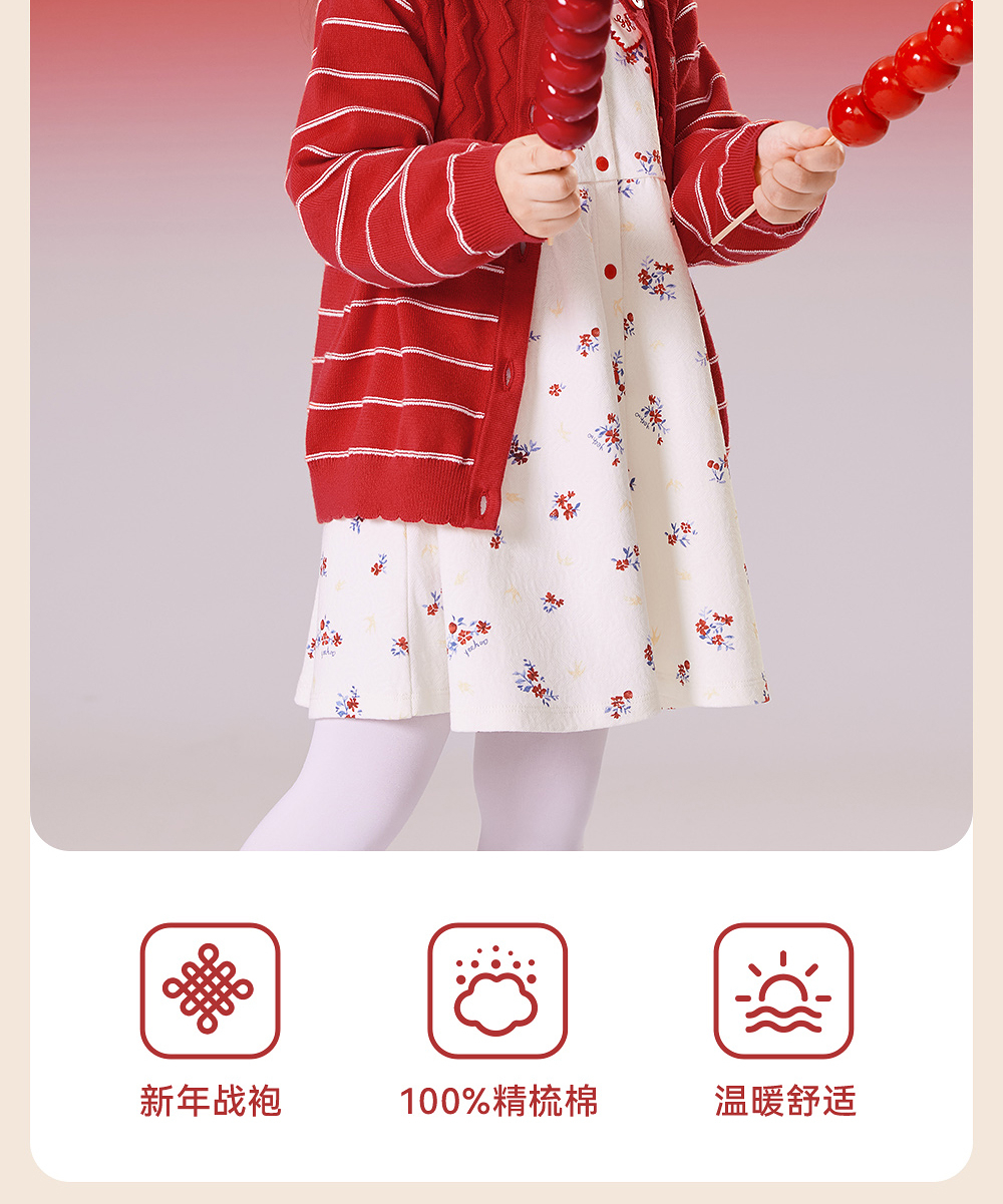 【商场同款】英氏儿童毛衣春秋长袖女童针织外套2025新款新年毛衣